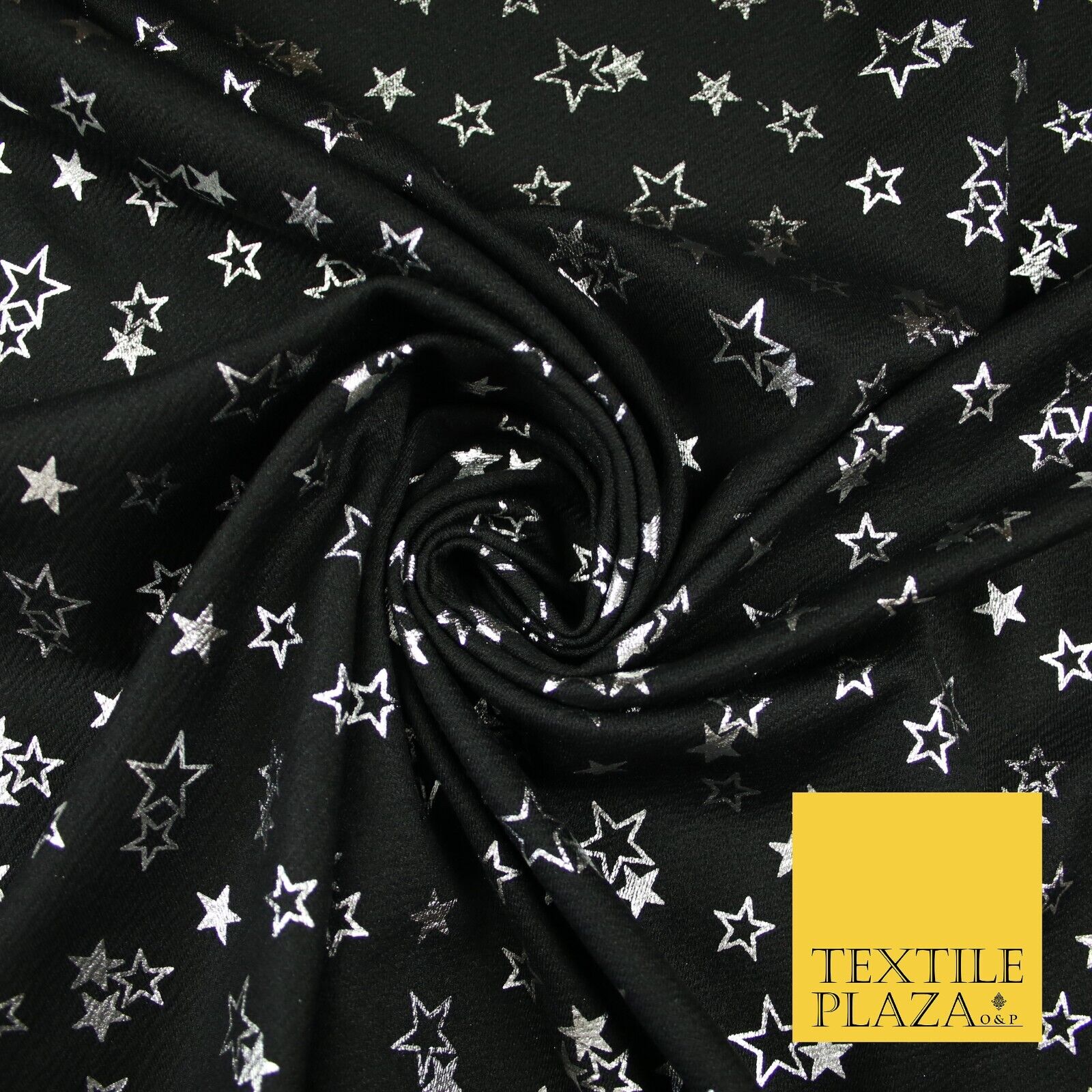 Black with Metallic Star Clusters Print Soft Touch Stretch Jersey Fabric 56"6662