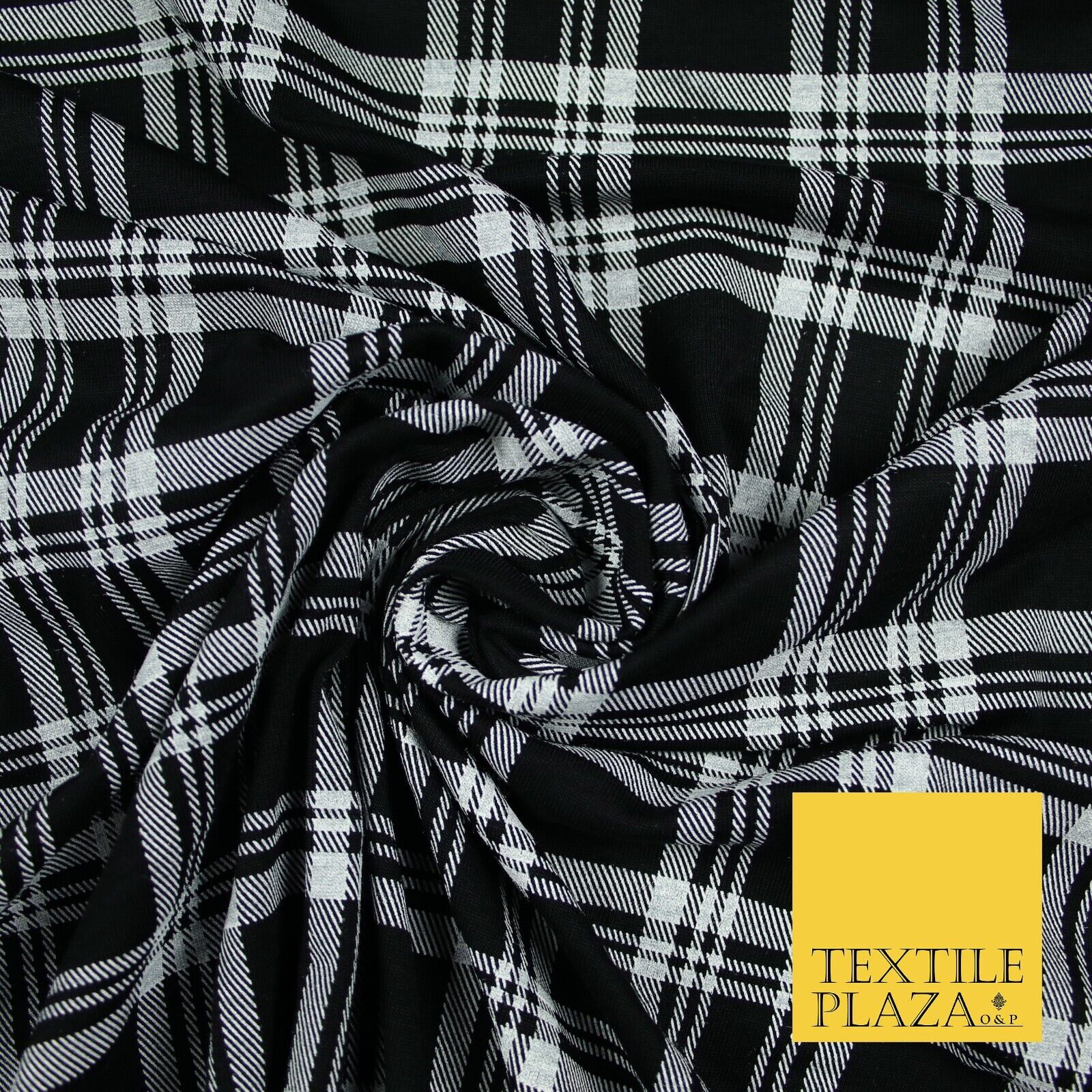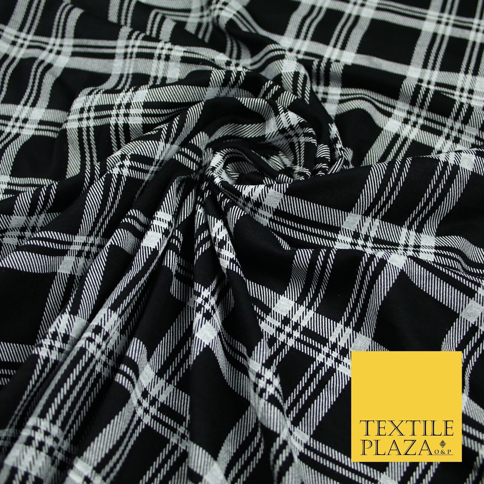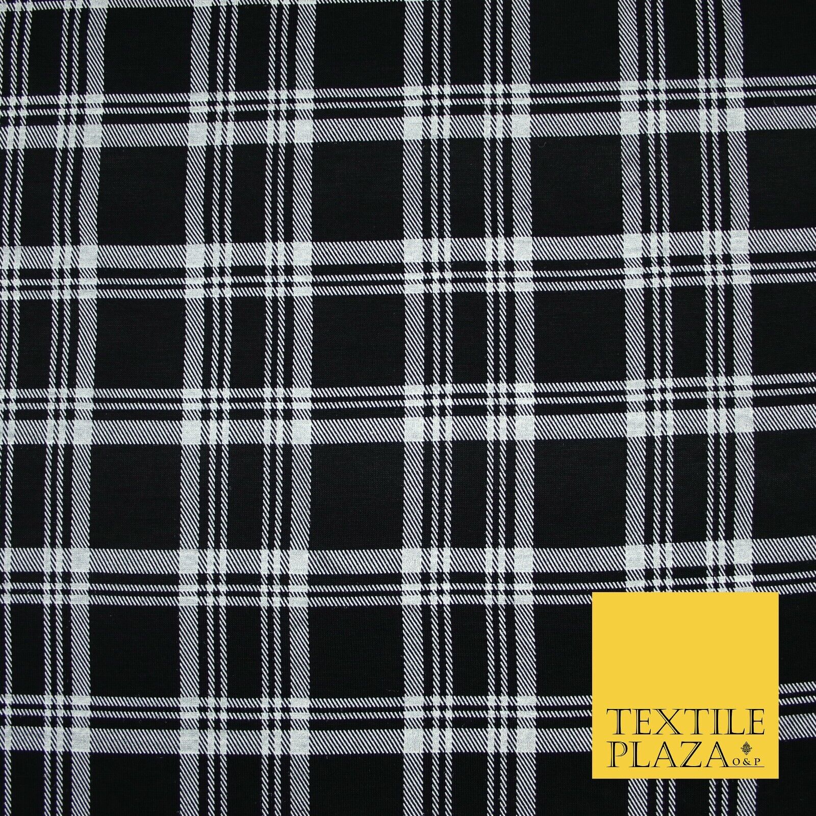 Black with White Check Print Soft Touch Stretch Jersey Fabric 56" 6600