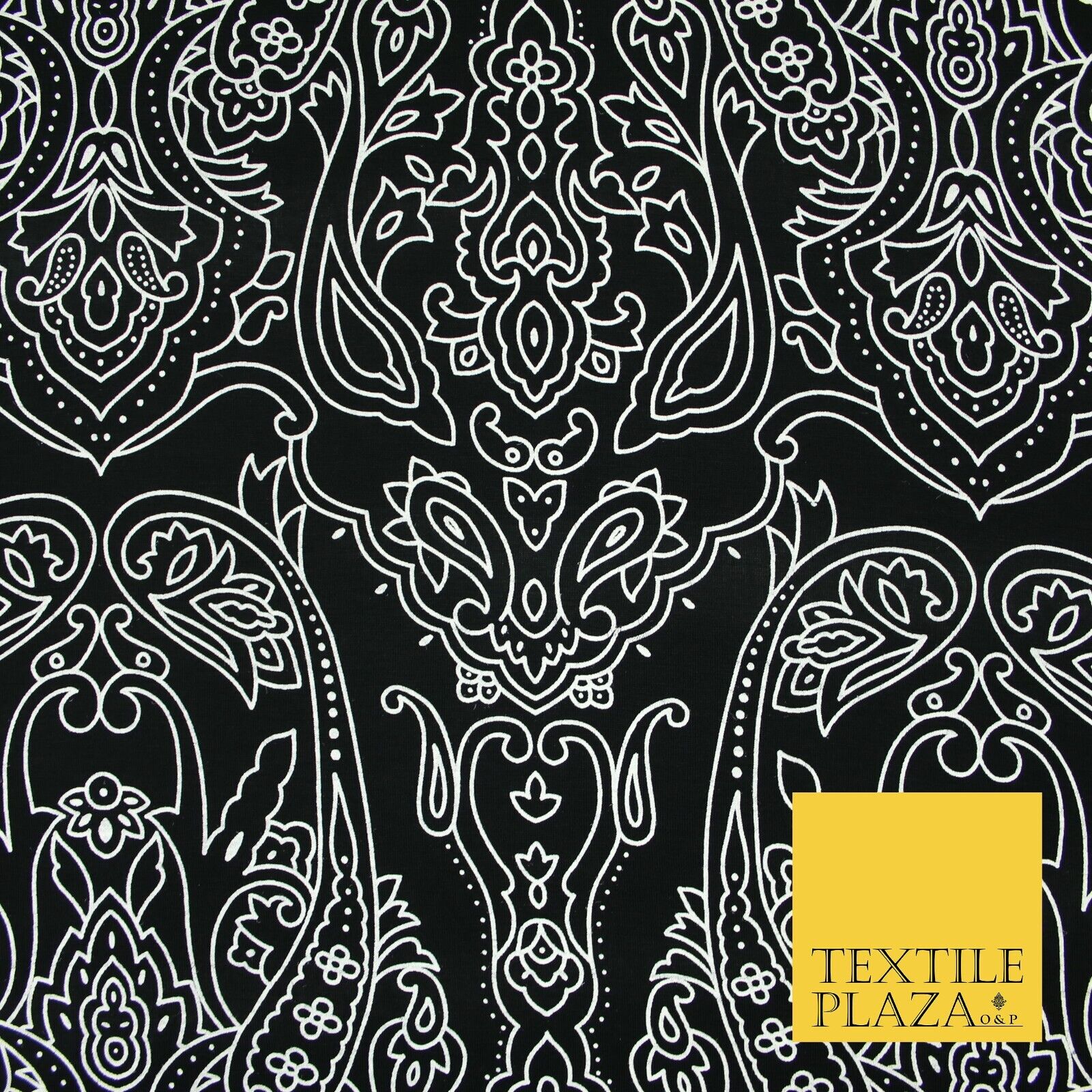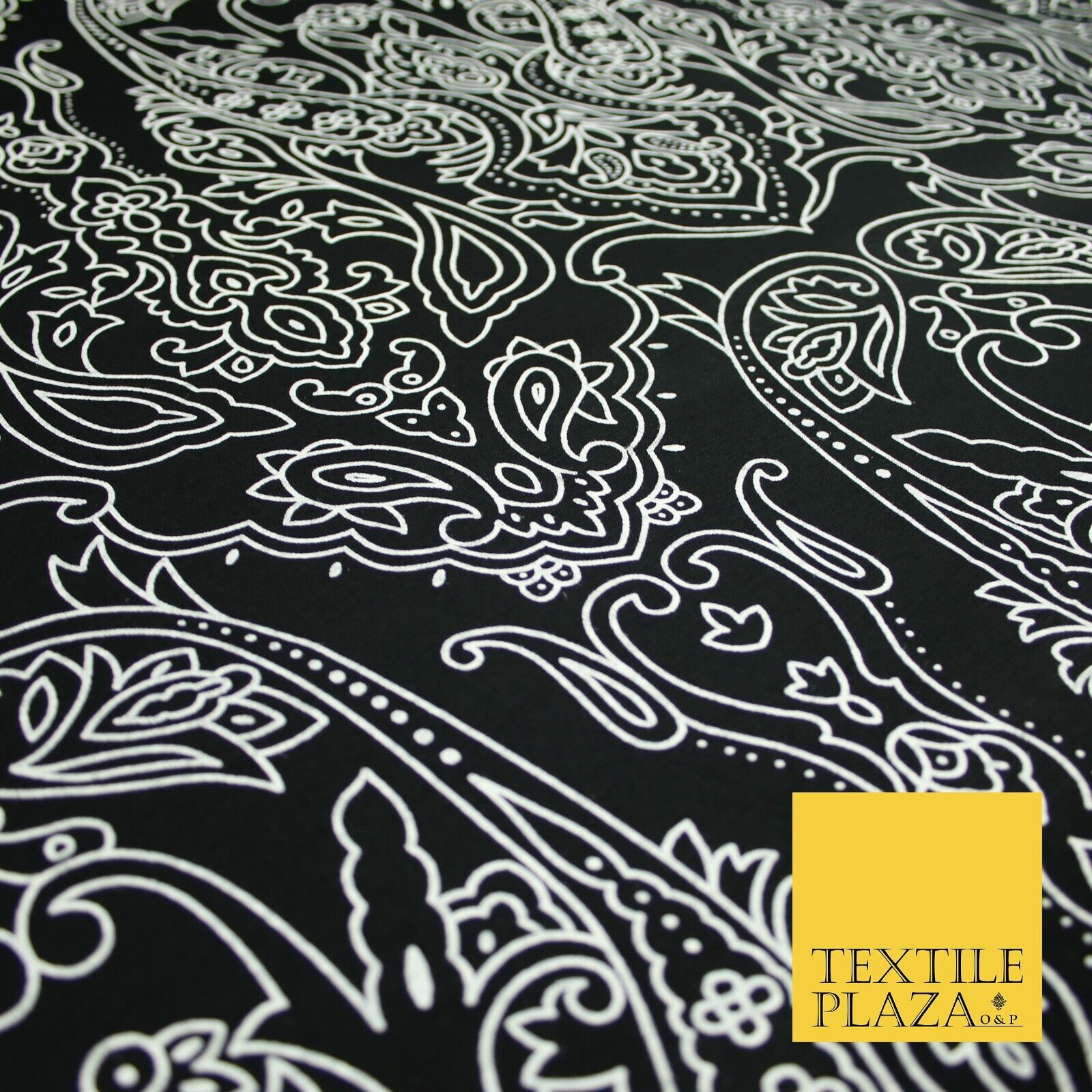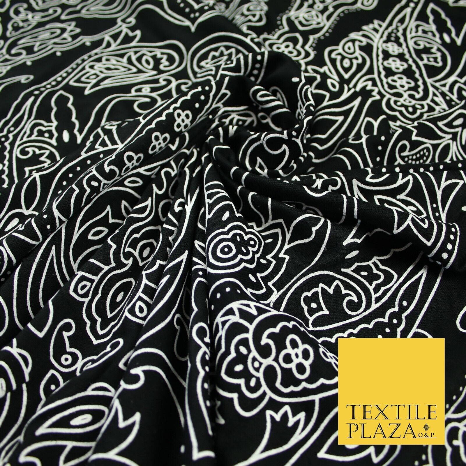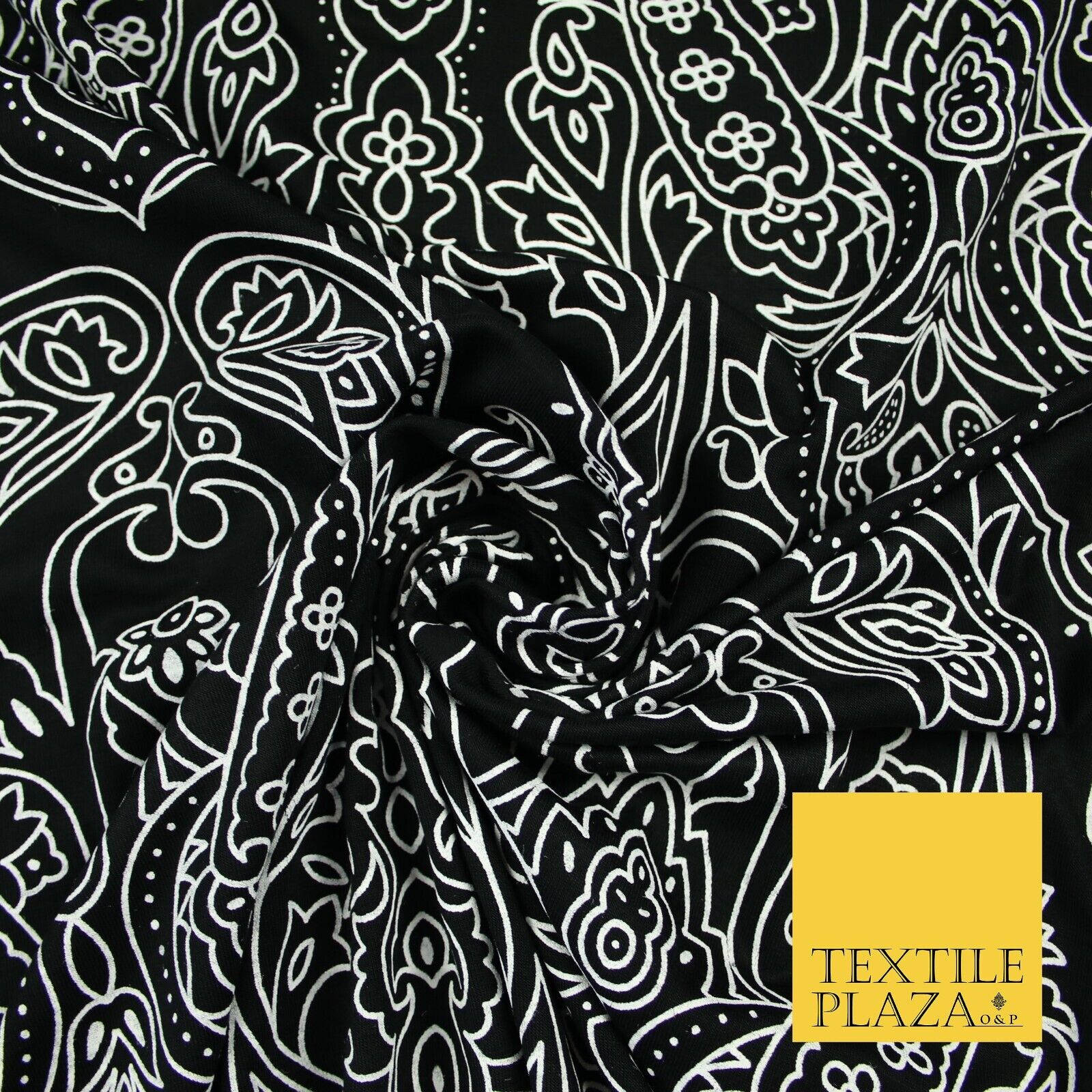 Black with White Intricate Paisley Print Soft Stretch Jersey Fabric 56"6665