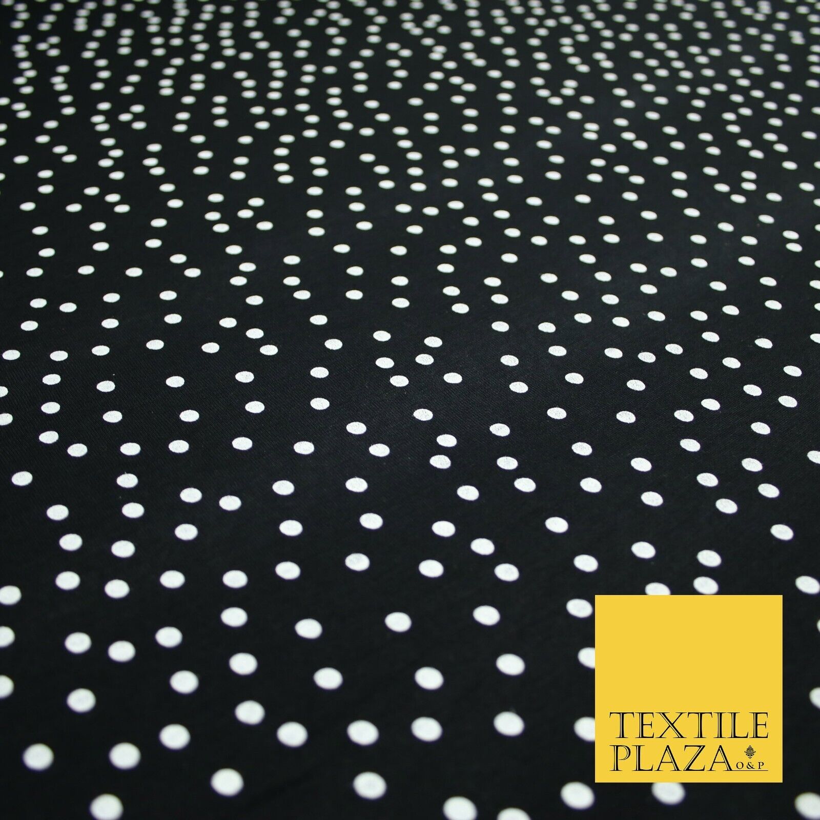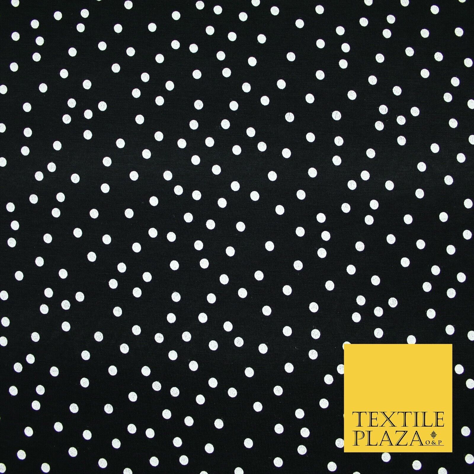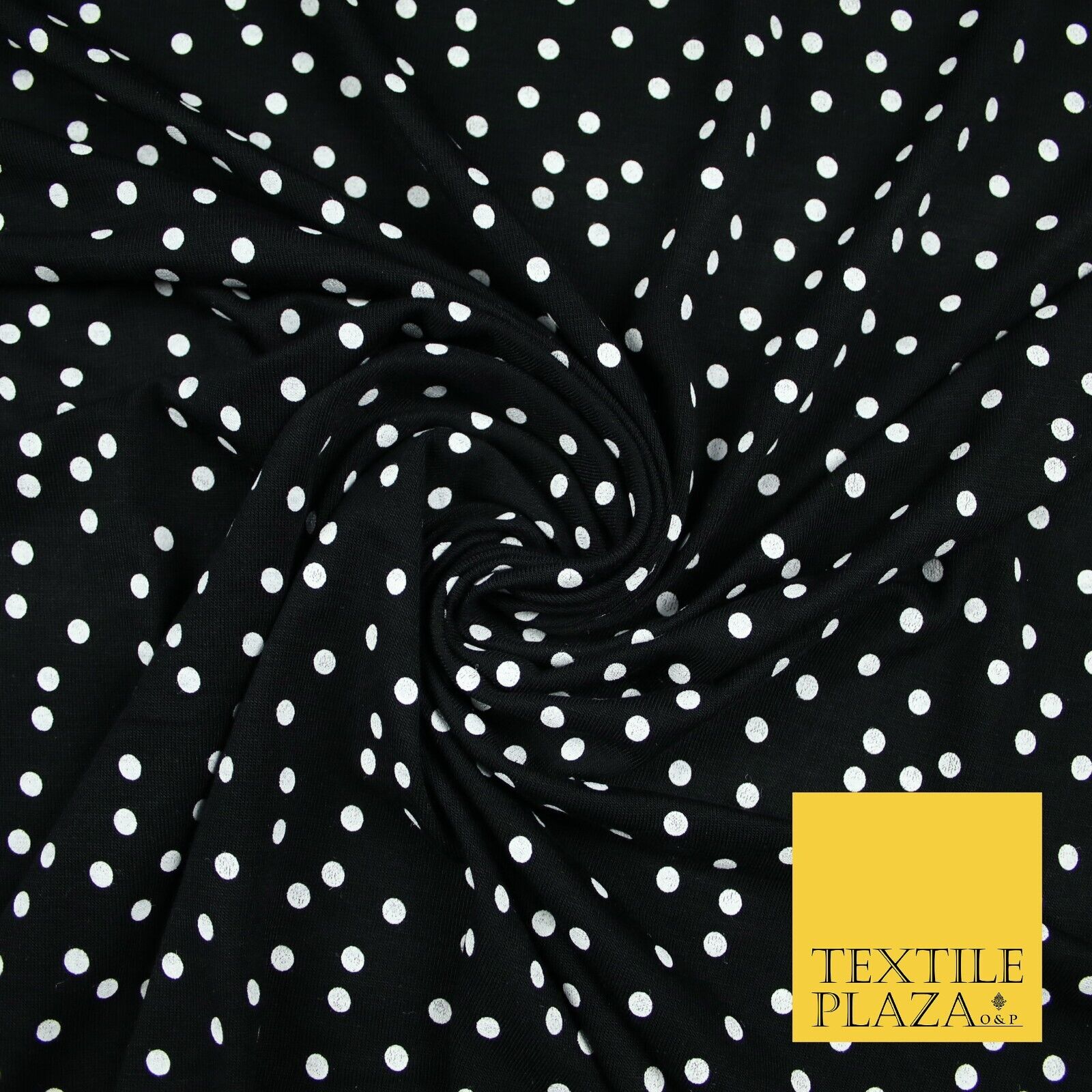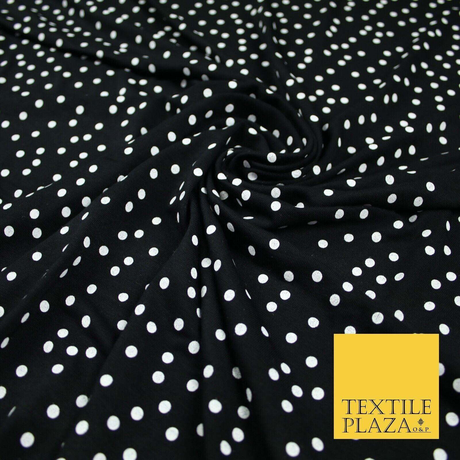 Black with White Polka Dot Print Soft Touch Stretch Jersey Fabric 56" 6633