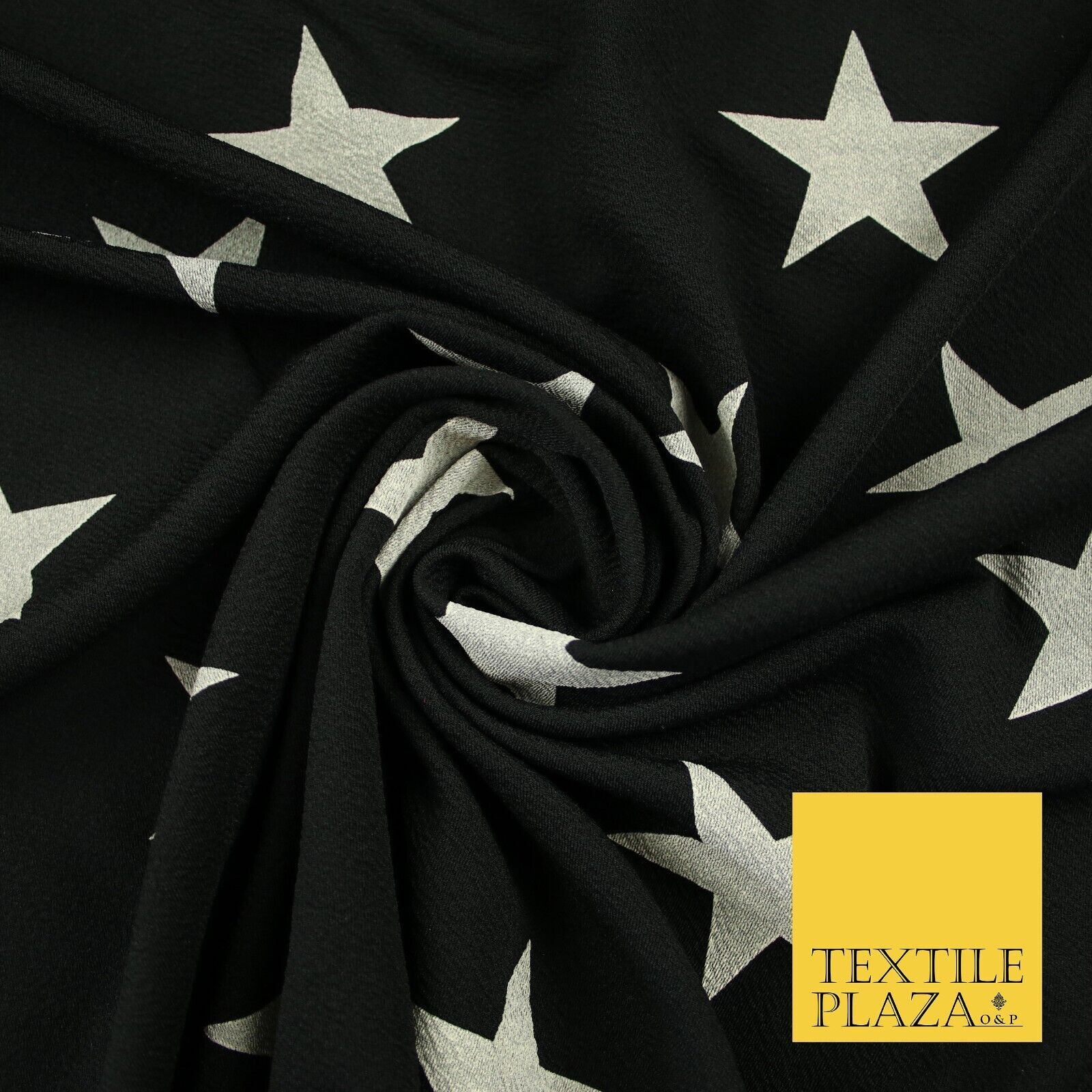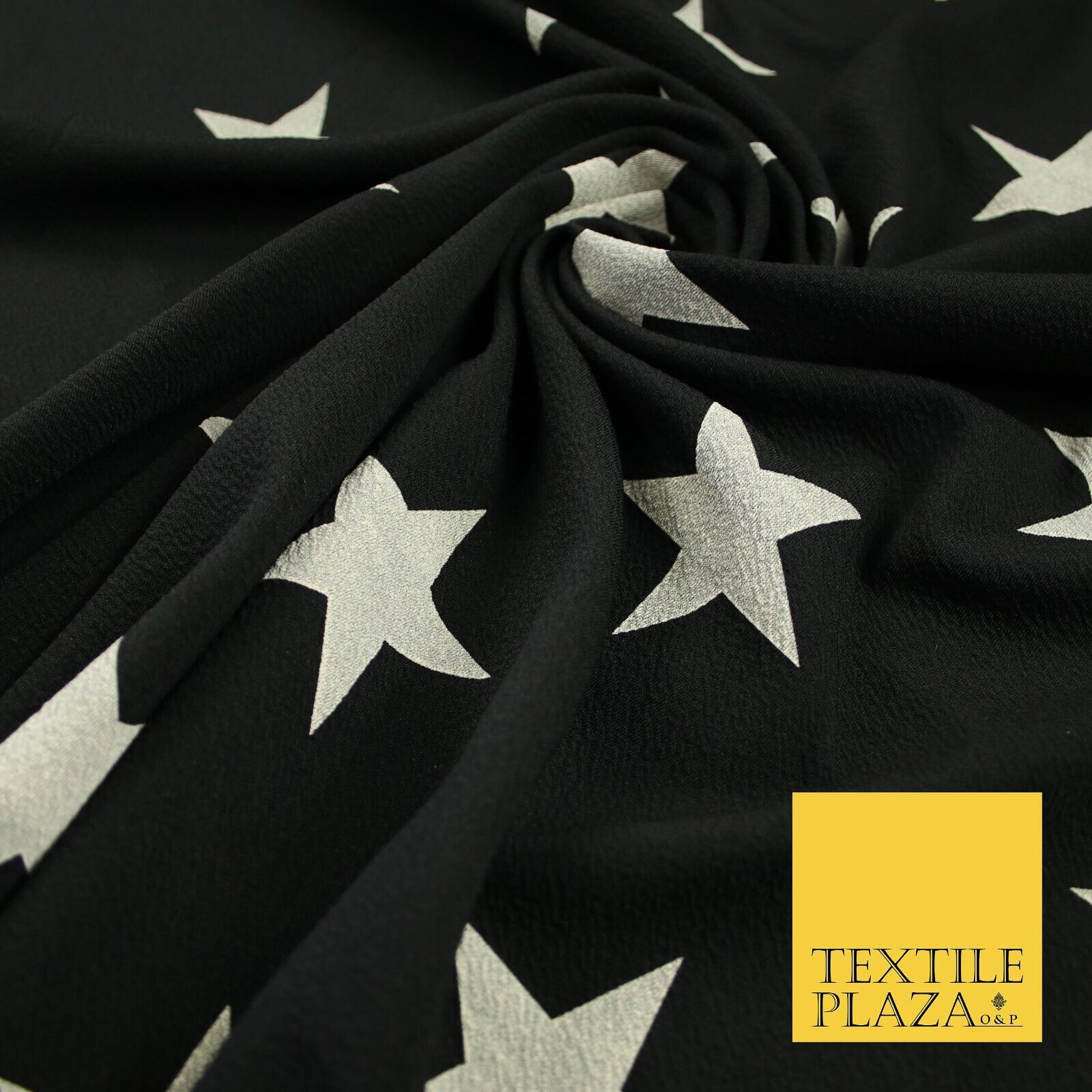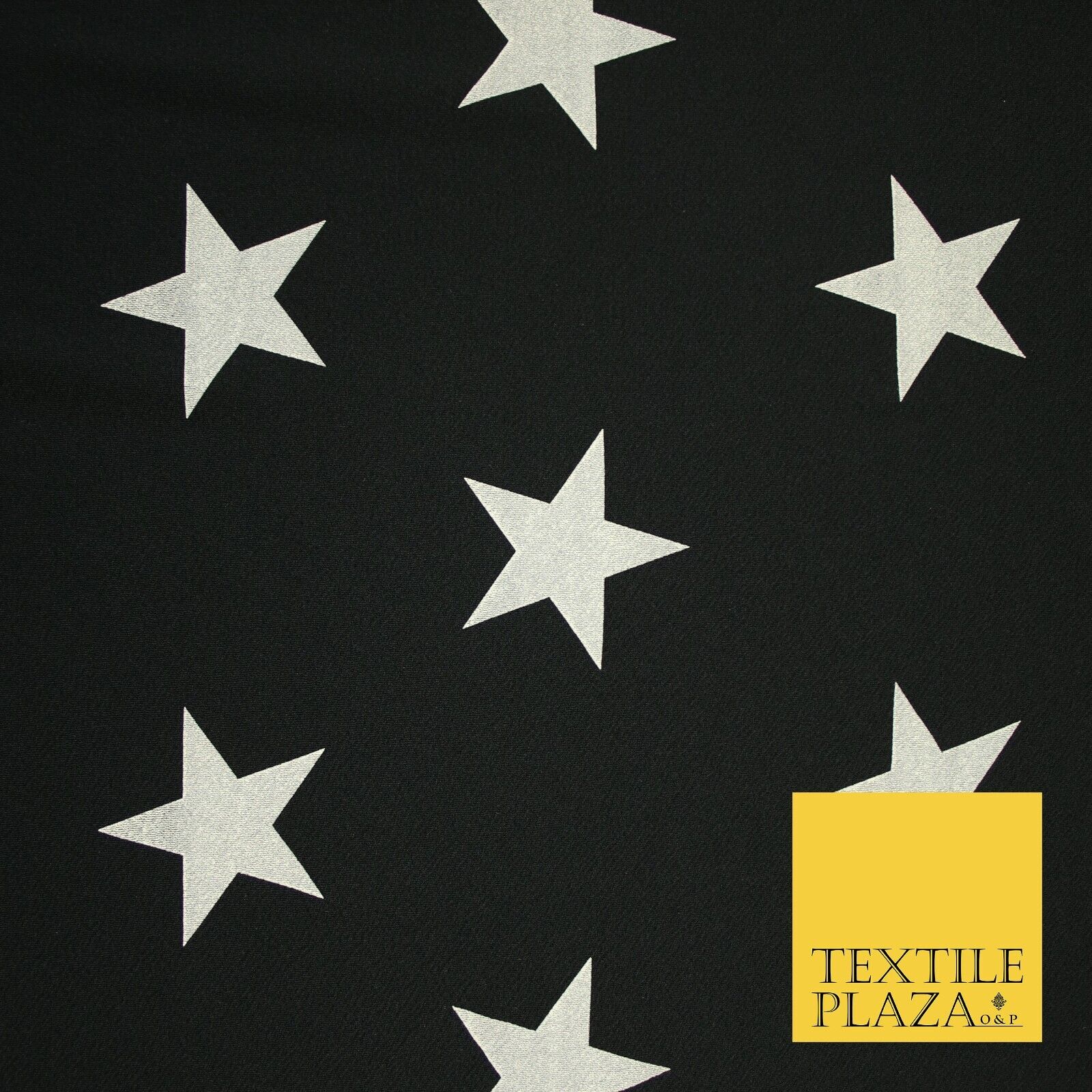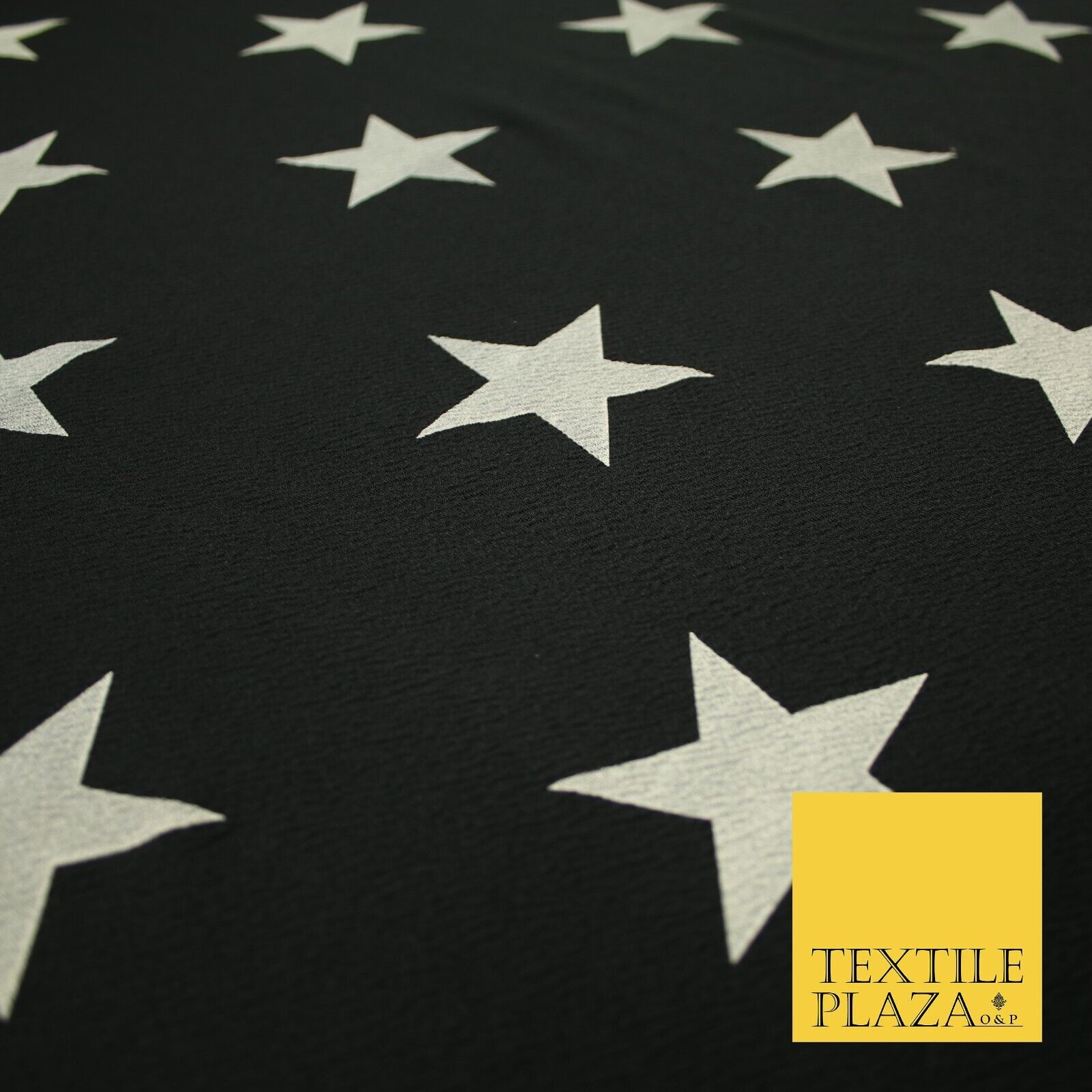 Black with White Stars Print Soft Touch Stretch Jersey Fabric 56"6663