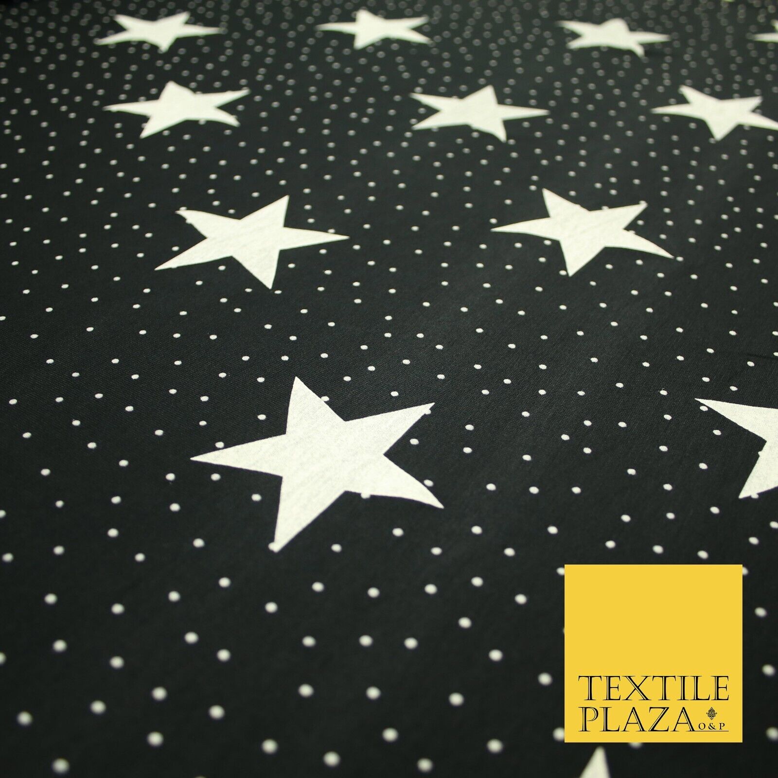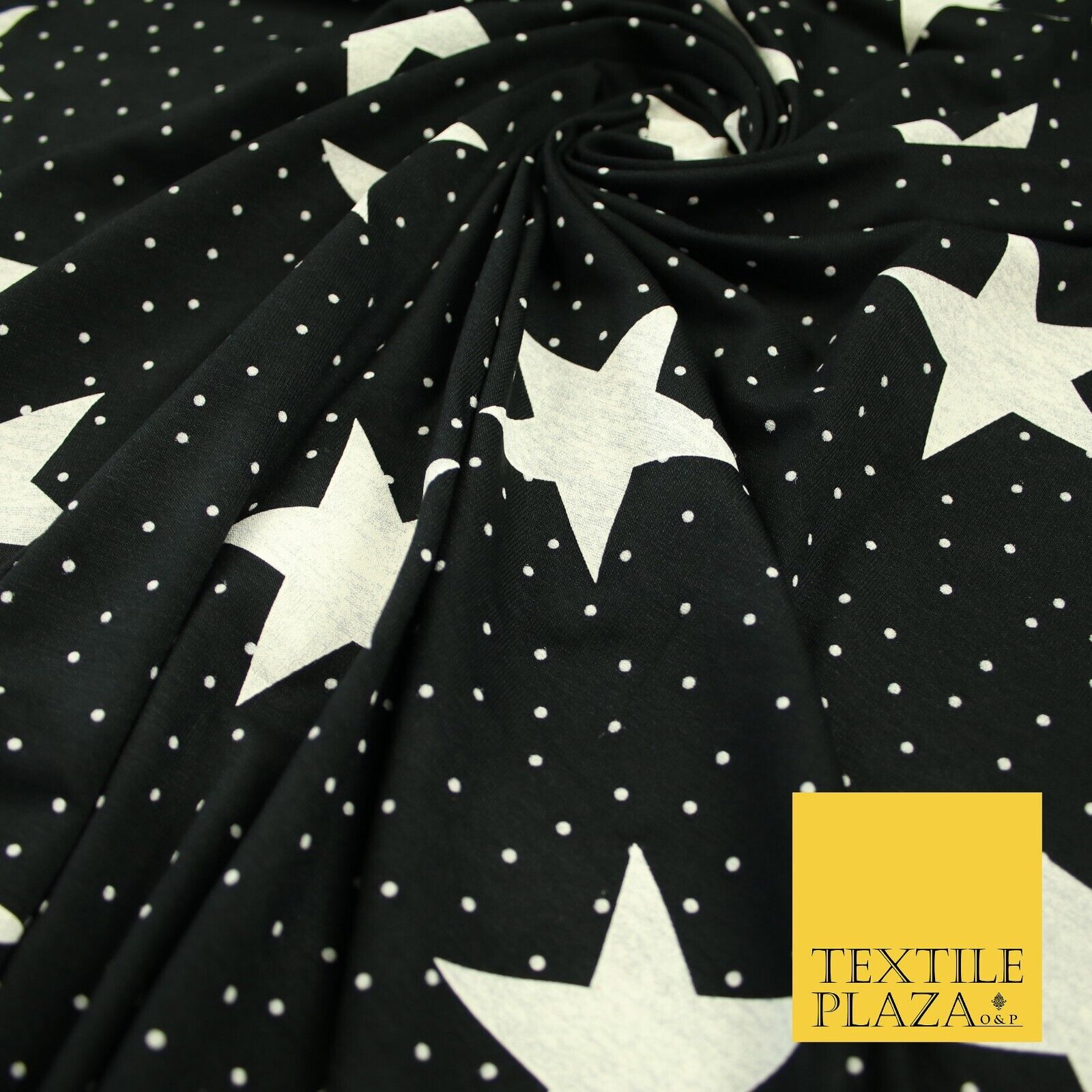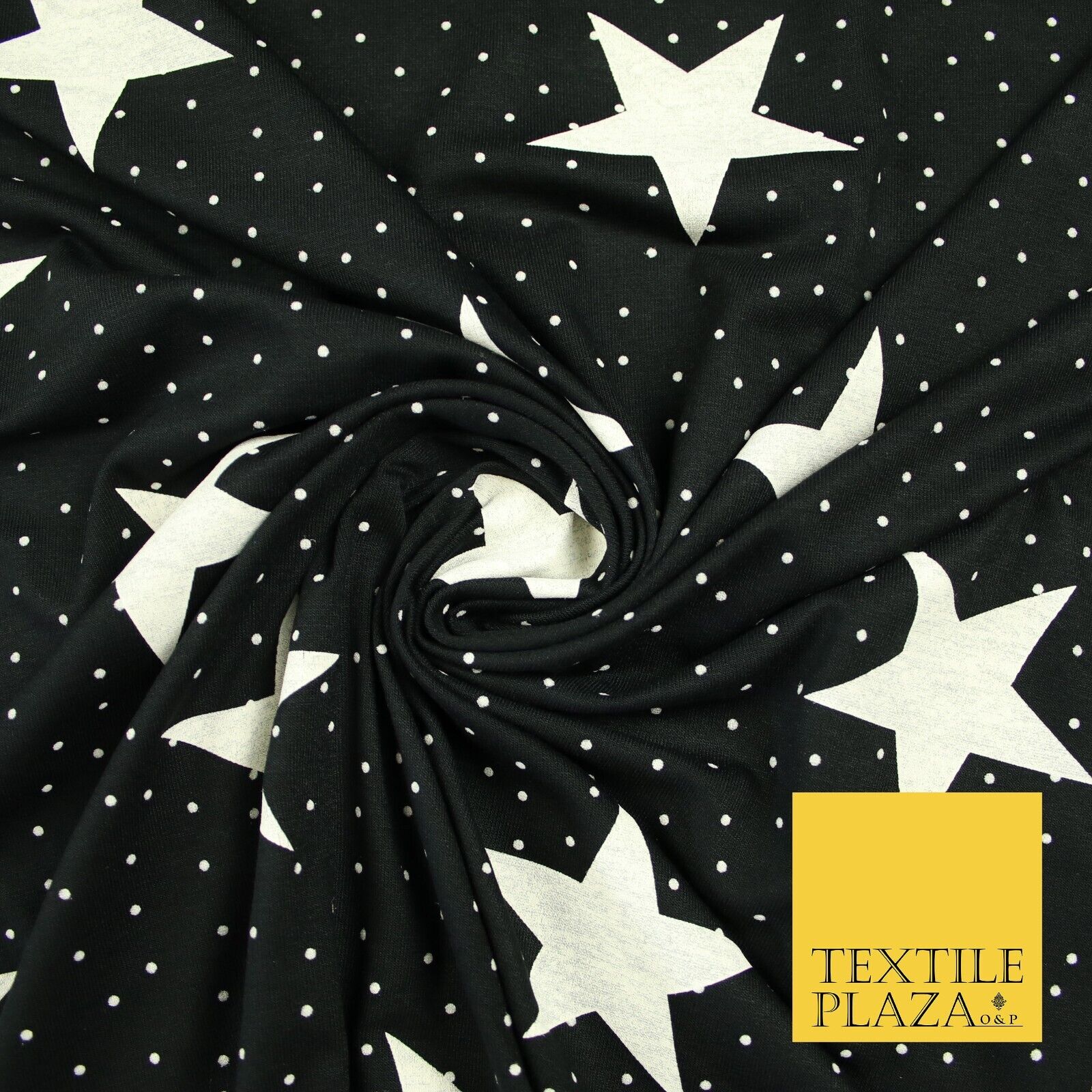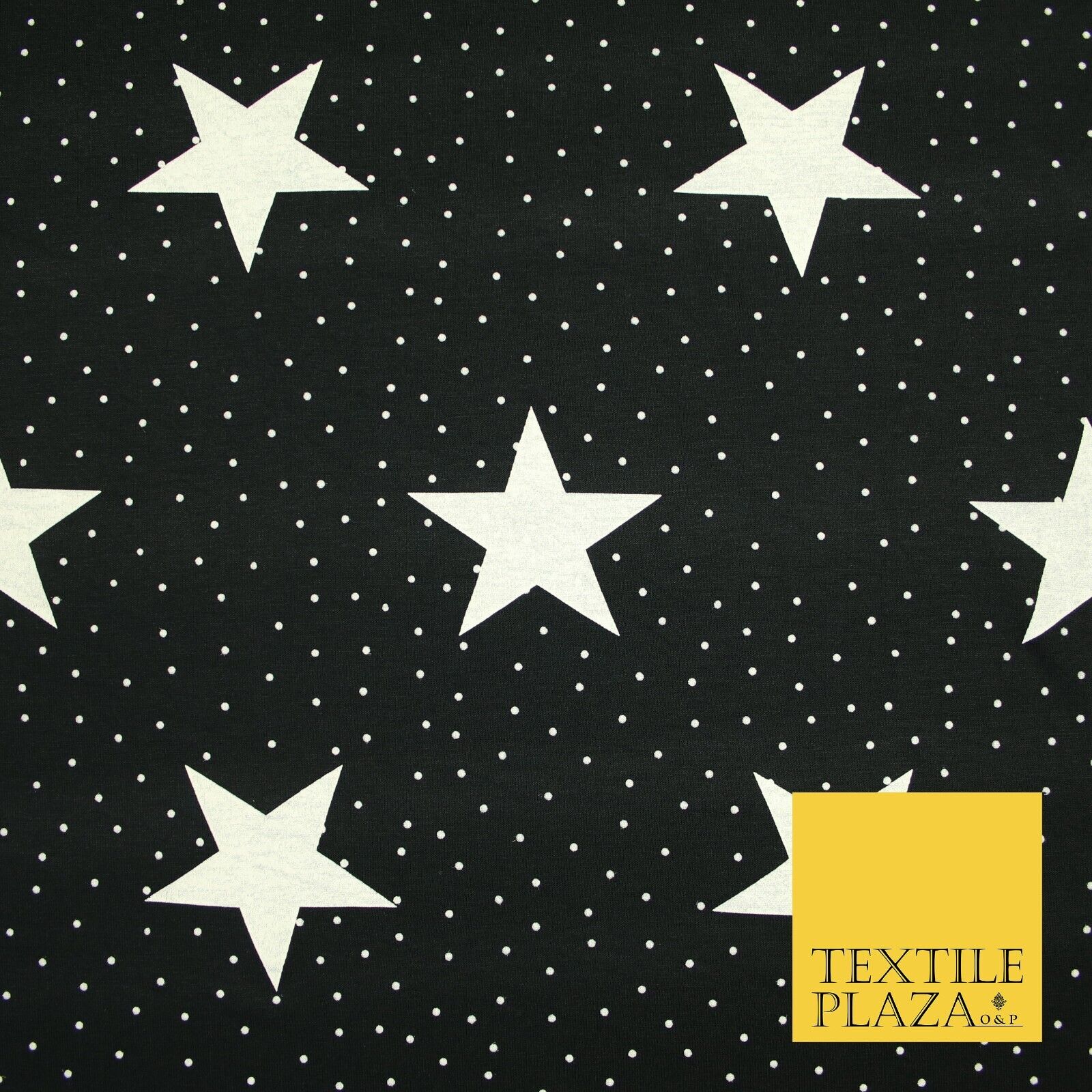Black with White Stars Small Dots Print Soft Touch Stretch Jersey Fabric 56"6664