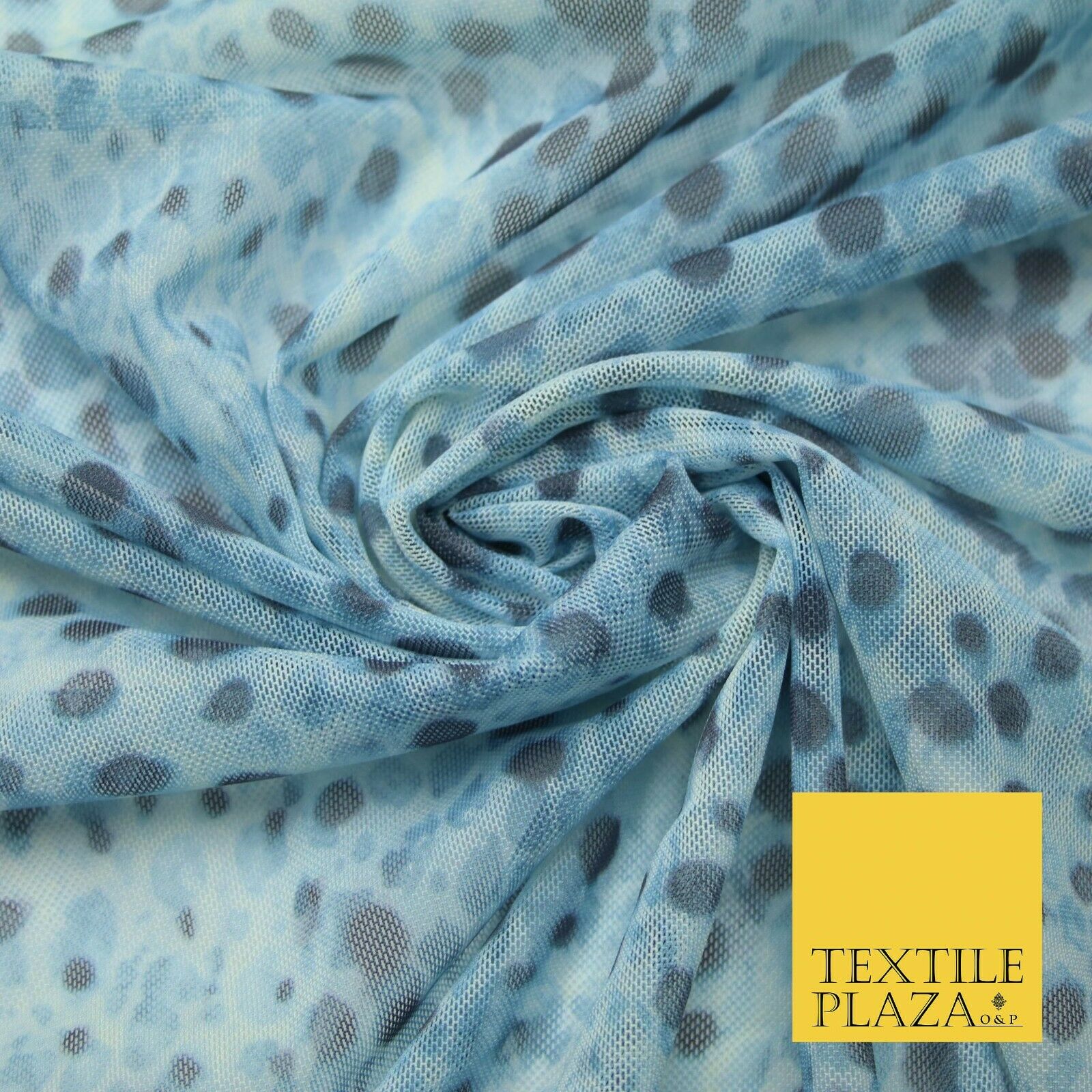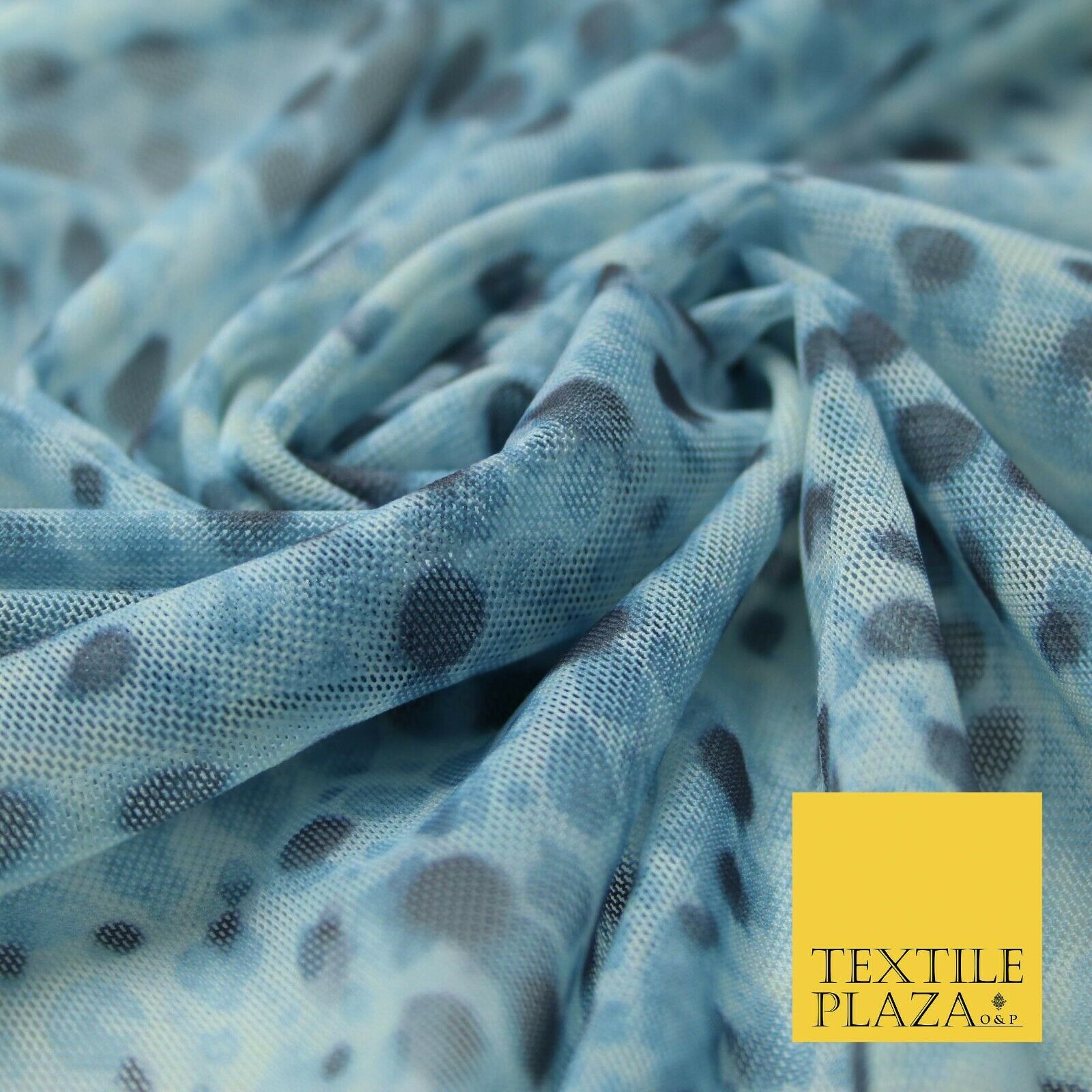Blue Animal Spots Blotch Printed Power Mesh Net Stretch Dress Fabric 62" 4303