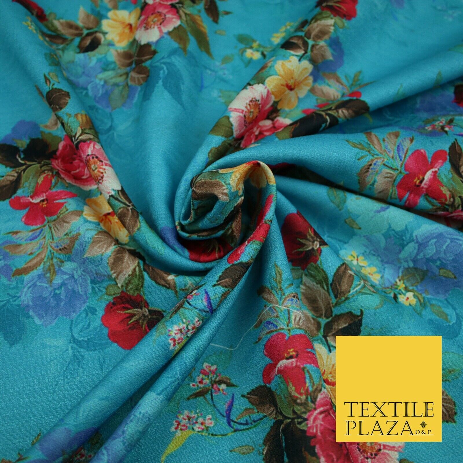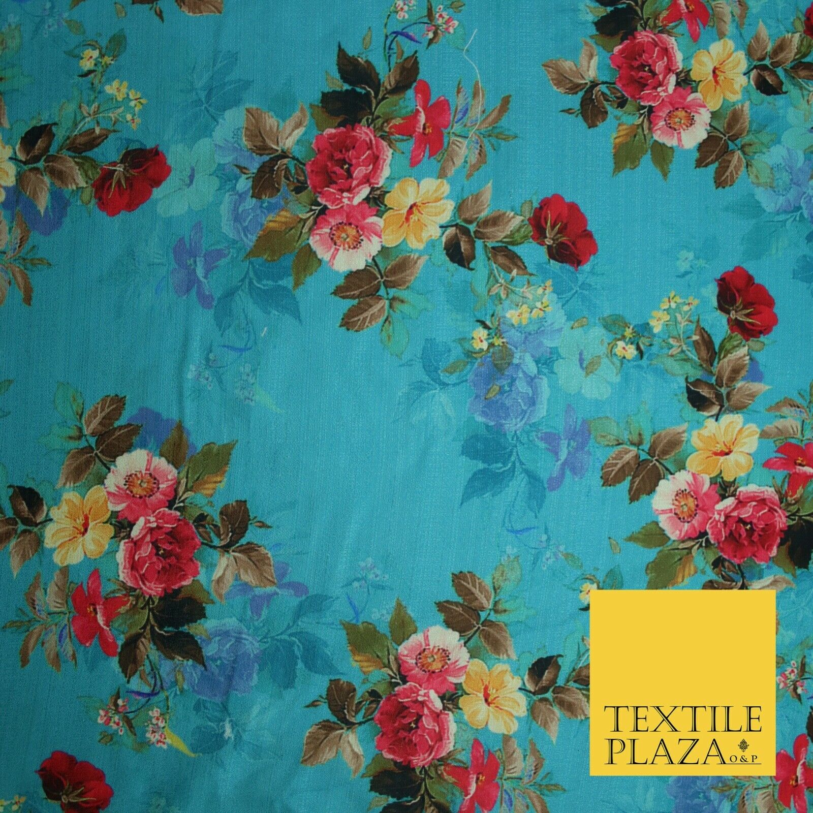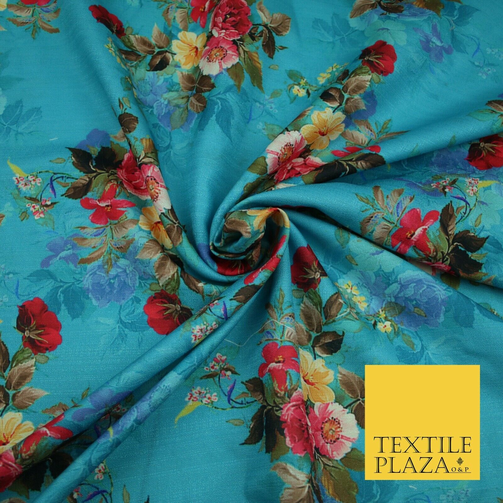 BLUE Floral Digital Print Pink Flowers Faux Raw Silk Fabric Dress Craft 2423