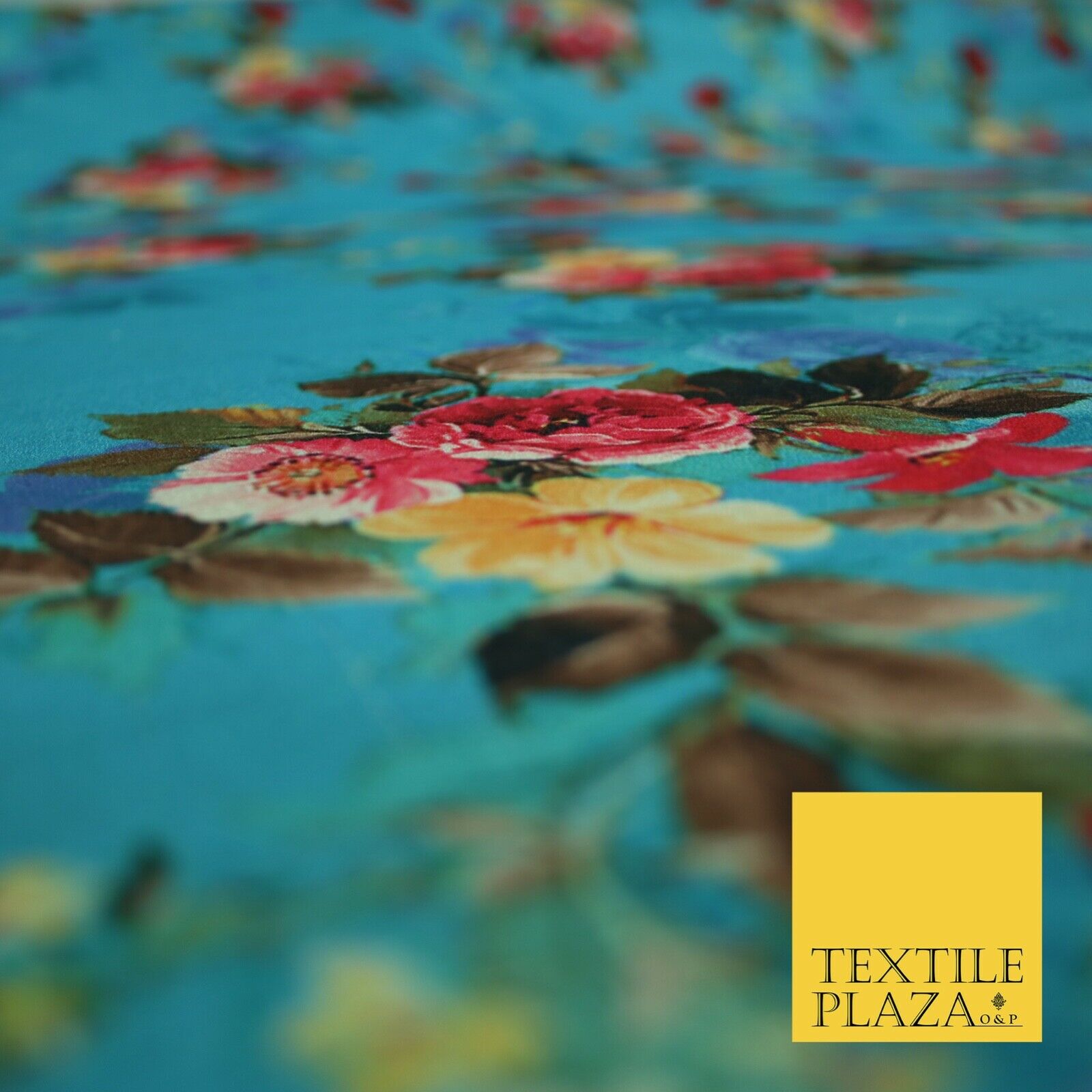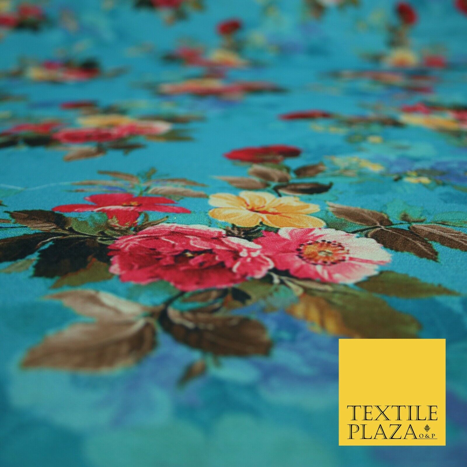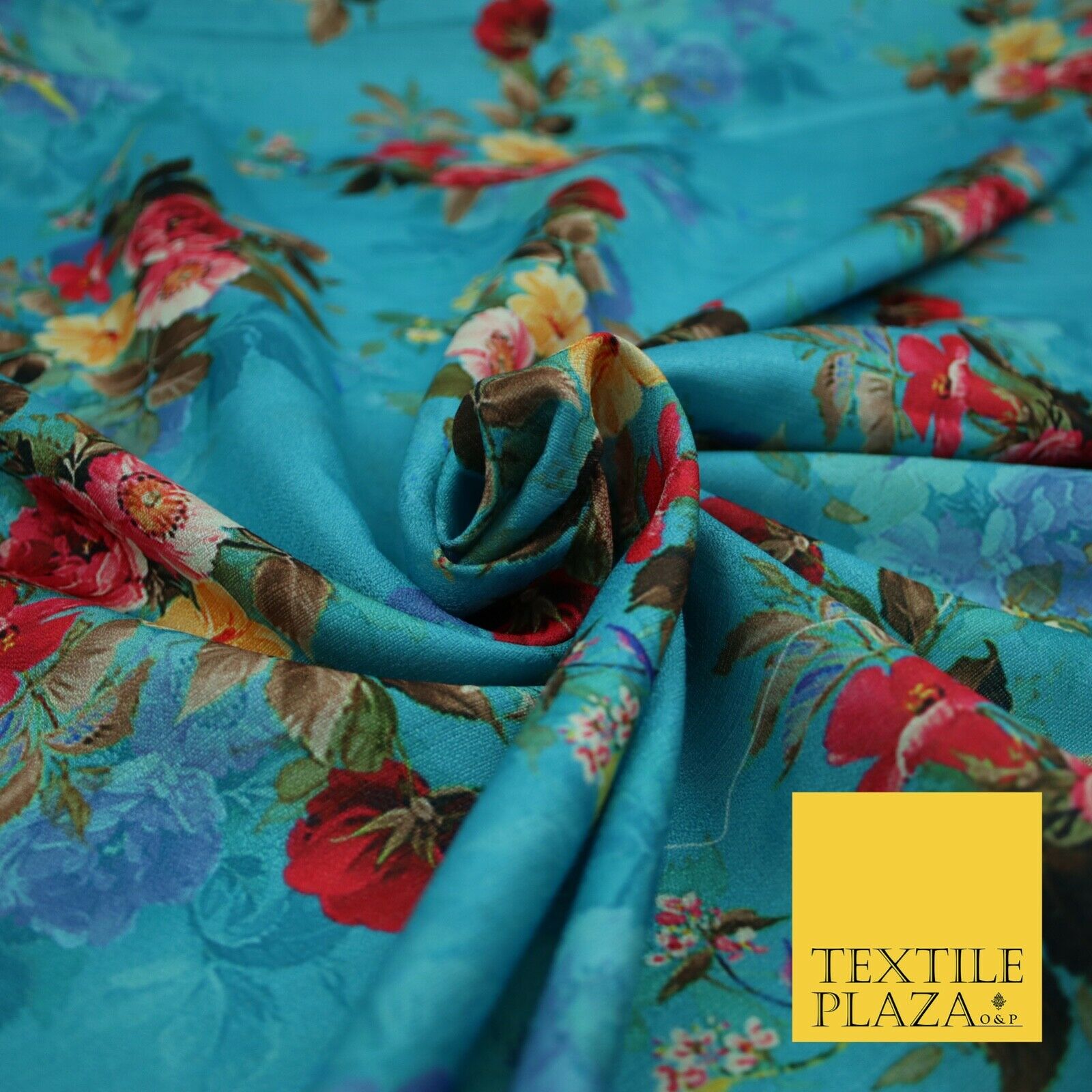 BLUE Floral Digital Print Pink Flowers Faux Raw Silk Fabric Dress Craft 2423