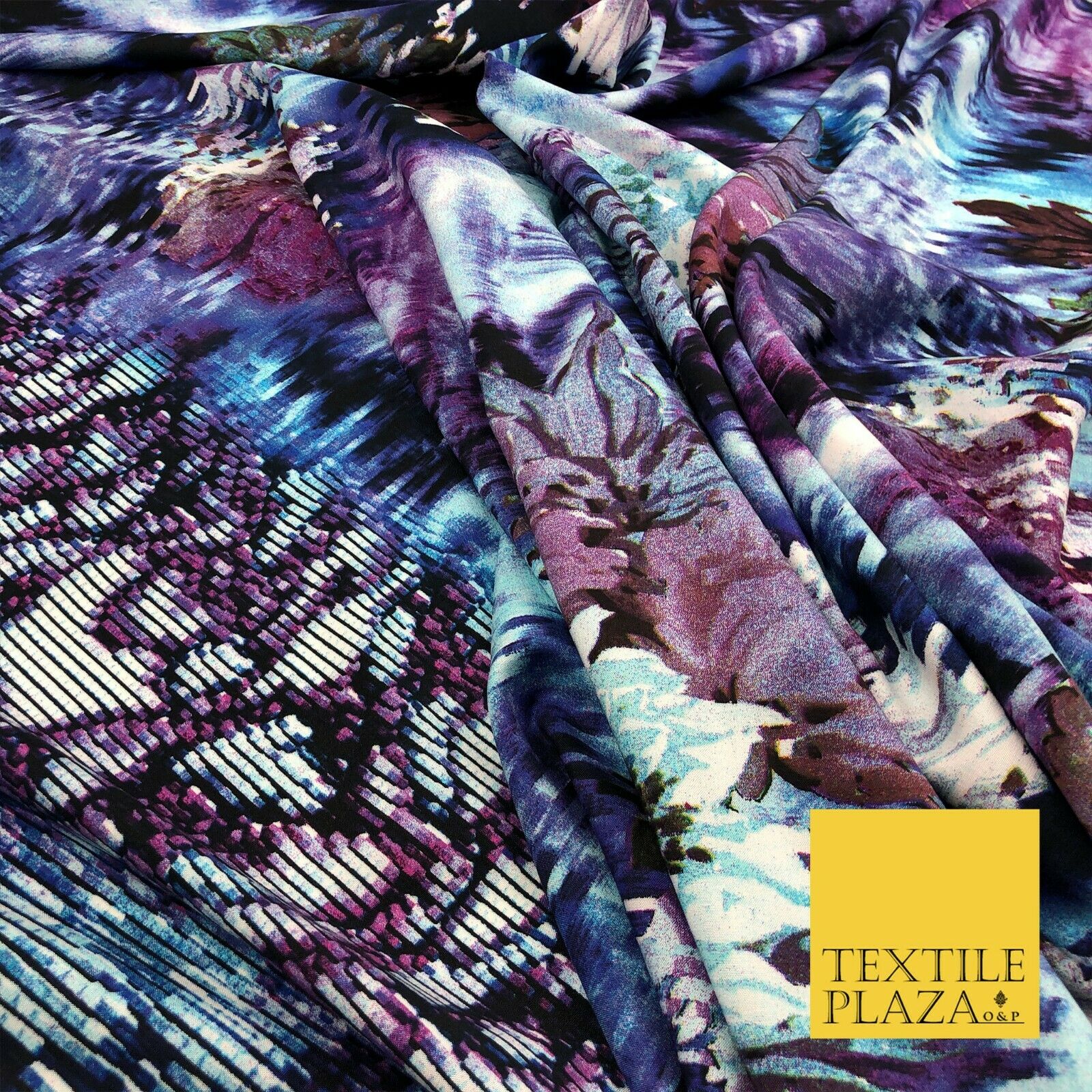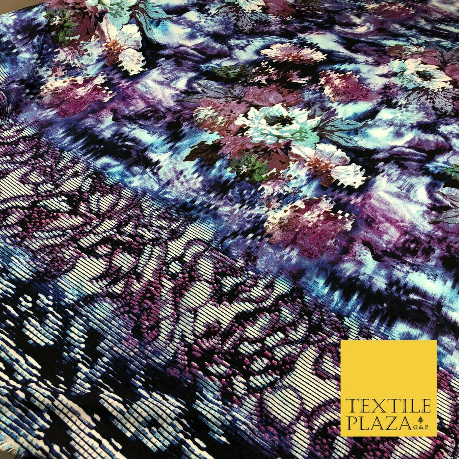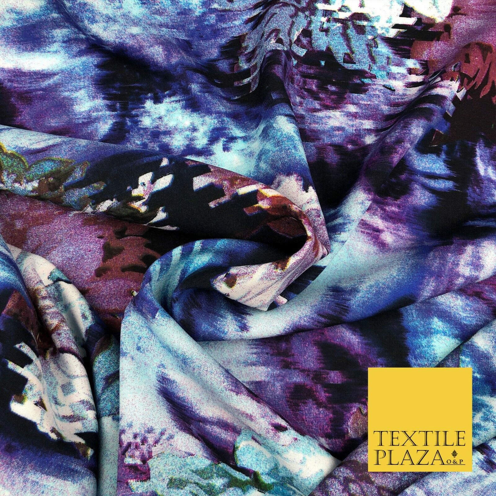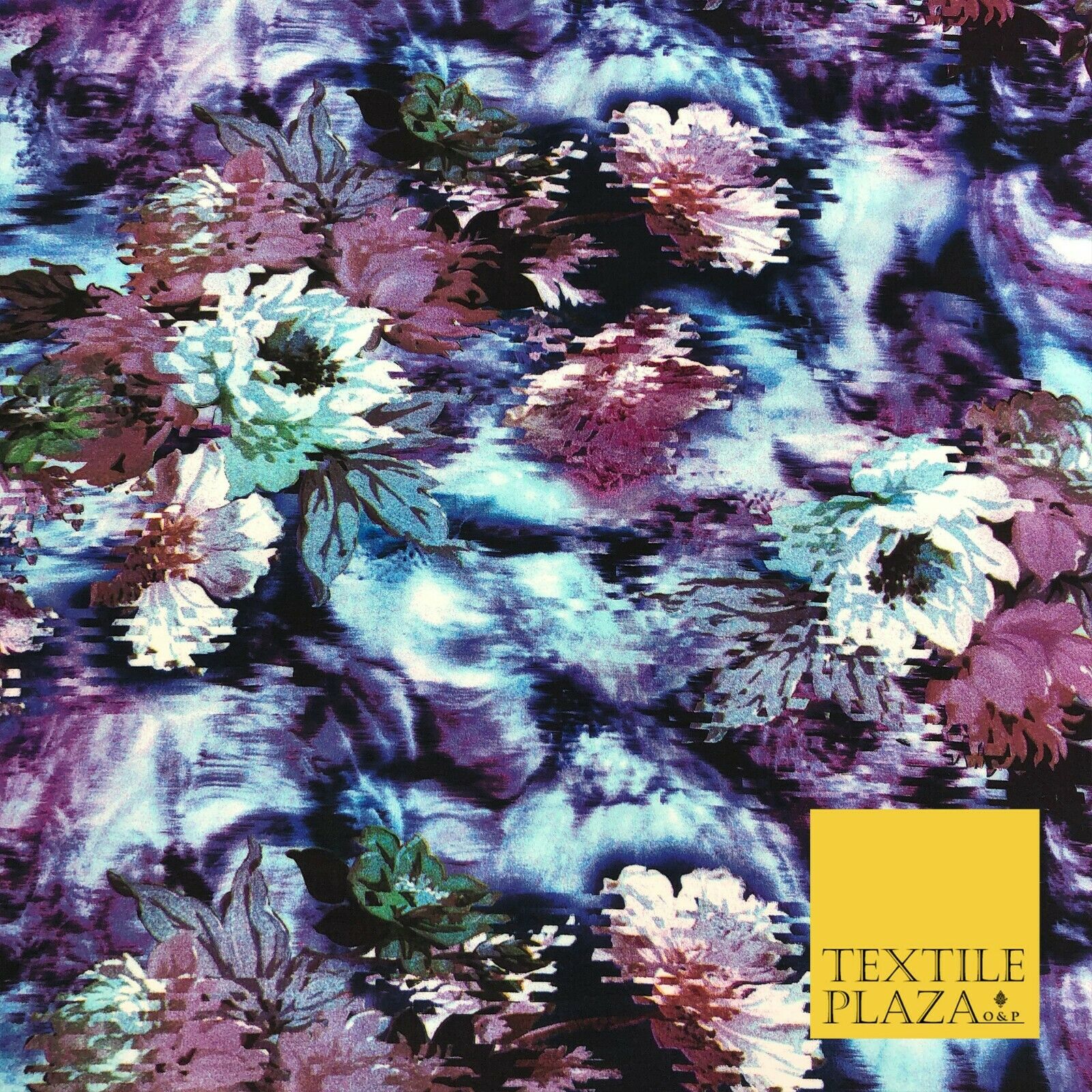 Blue Mix Techno Floral Digital Print Spun Rayon Viscose Dress Fabric Craft 1321