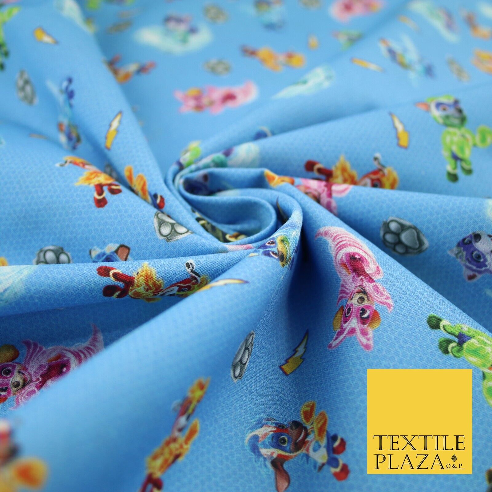 Blue PAW PATROL Paws Super Power Digital Print 100% Cotton Fabric 59" 8216