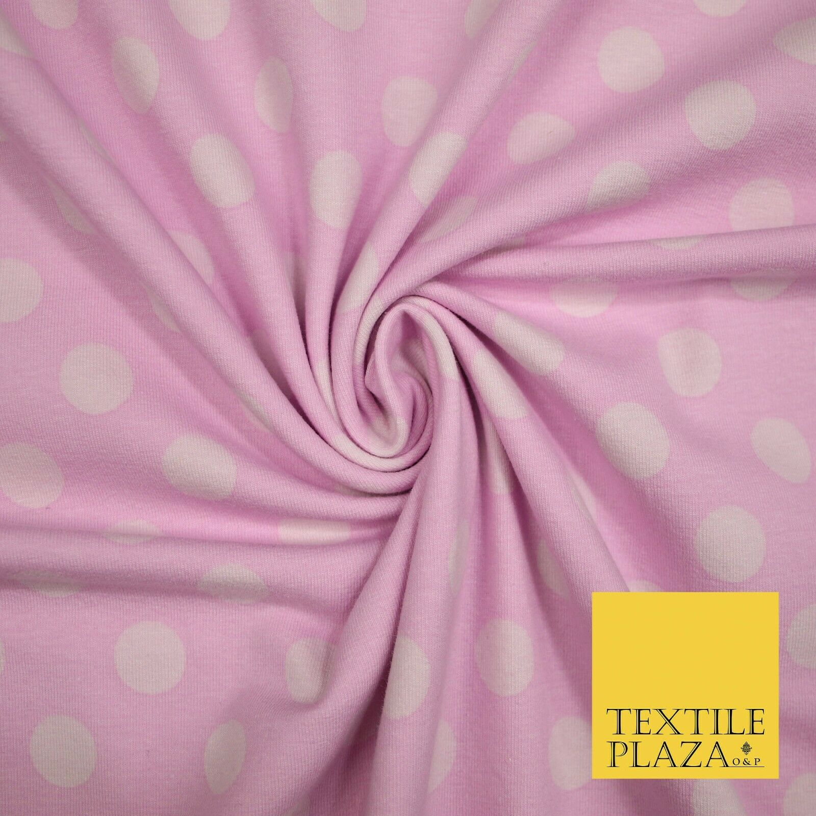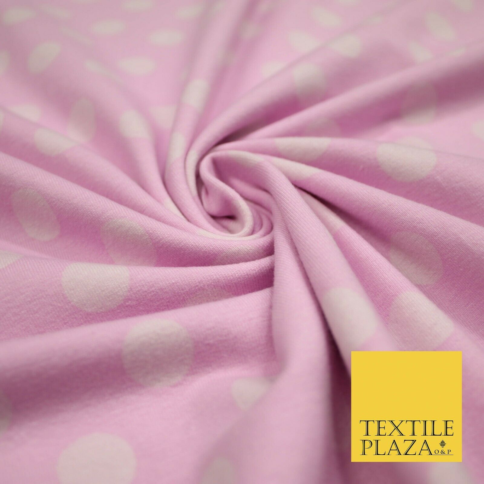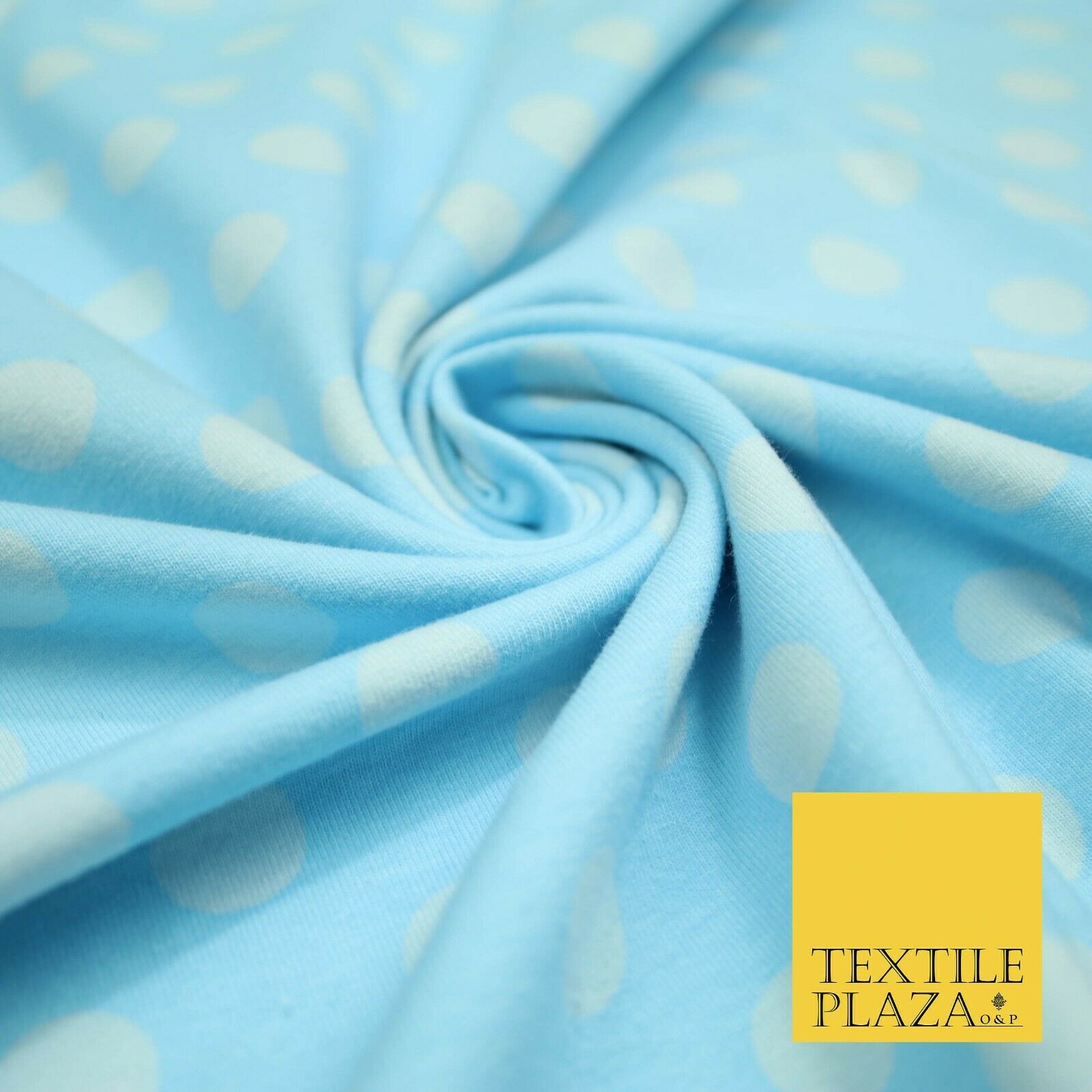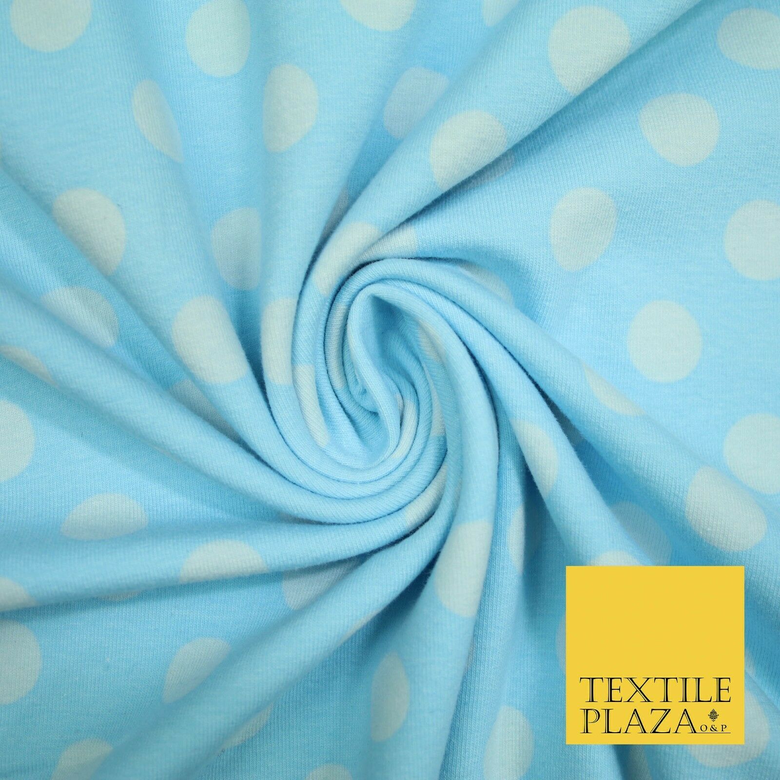 Blue Pink 1cm Spotted Polka Dot Soft Cotton Jersey Stretch Dress Fabric Baby 59"