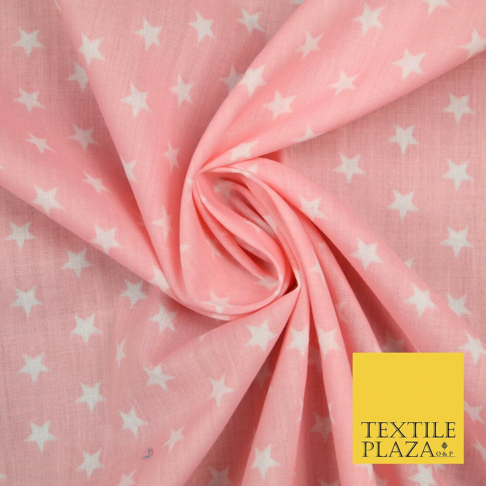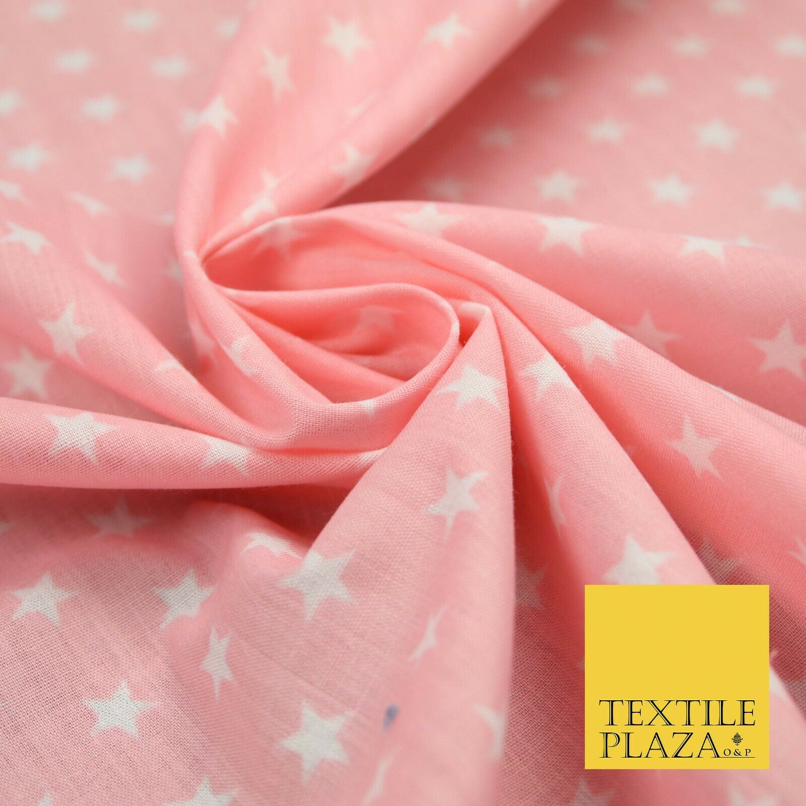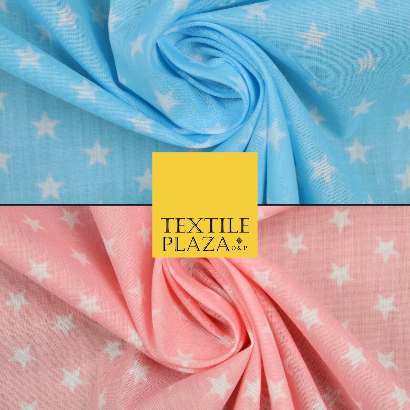 Blue Pink Falling White Mini Stars Printed Poly Cotton Dress Fabric Polycotton