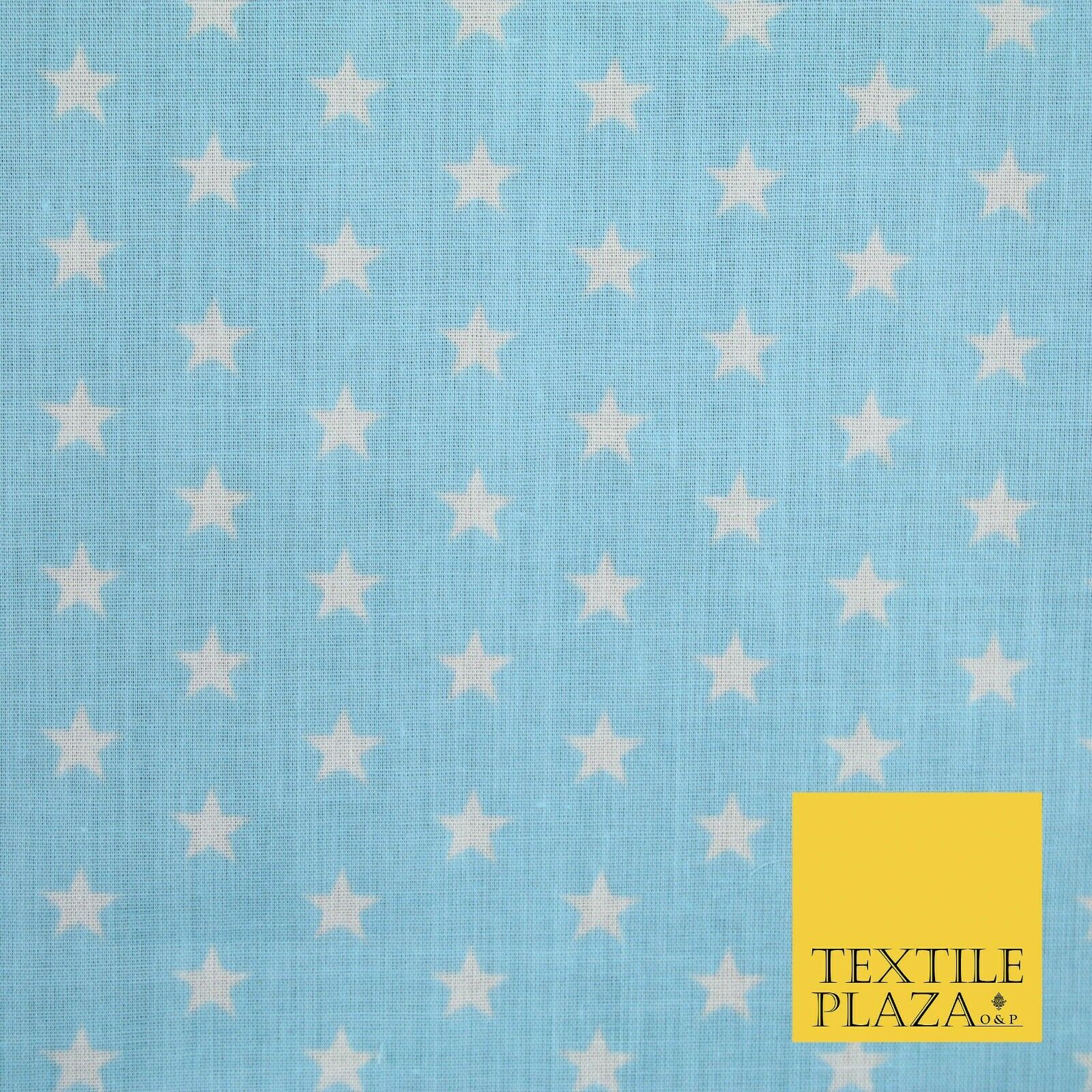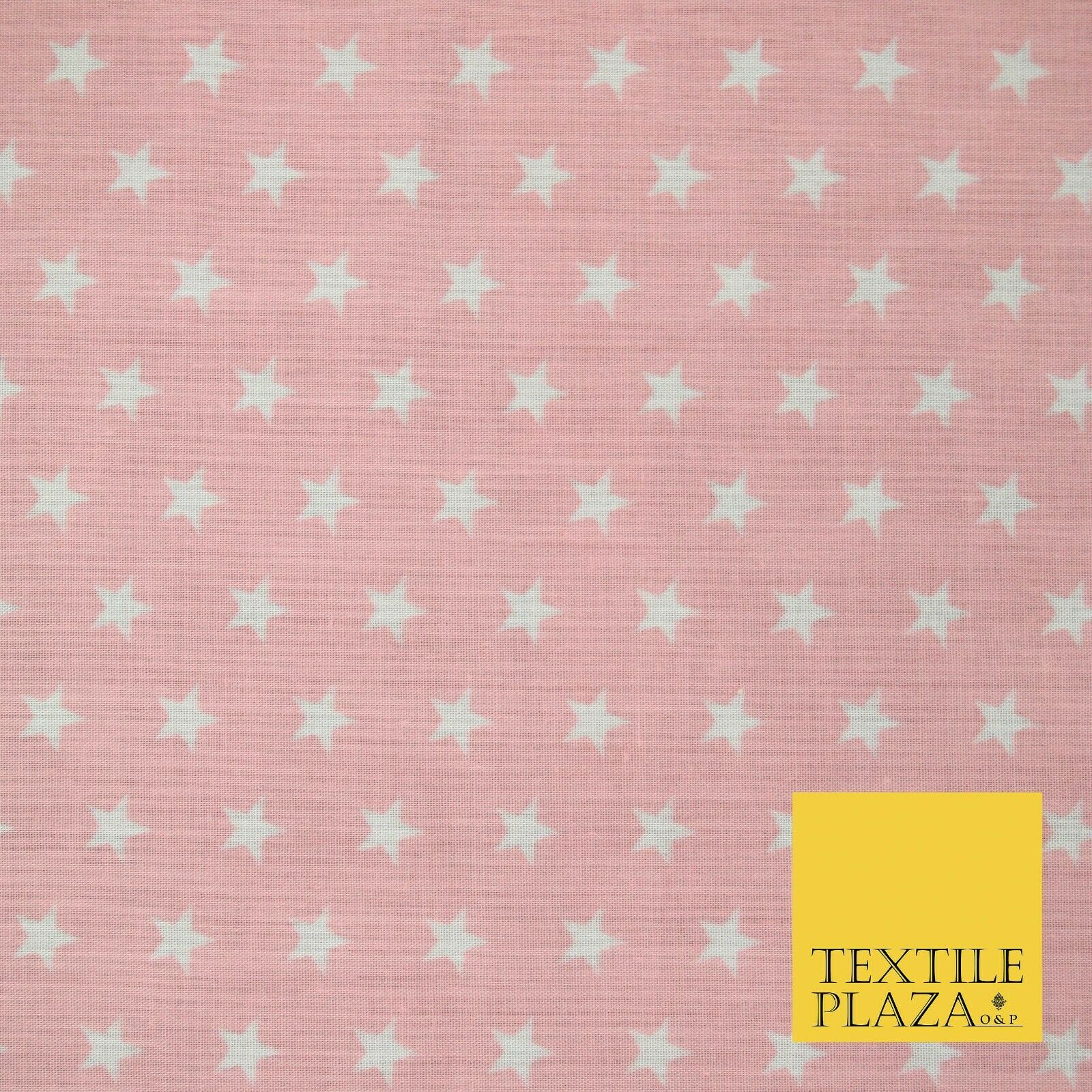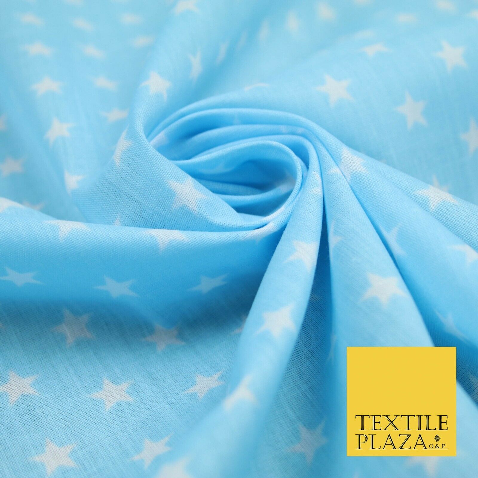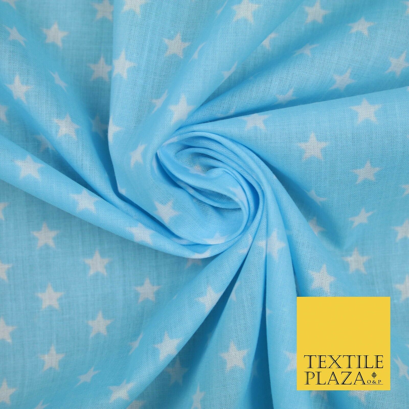 Blue Pink Falling White Mini Stars Printed Poly Cotton Dress Fabric Polycotton