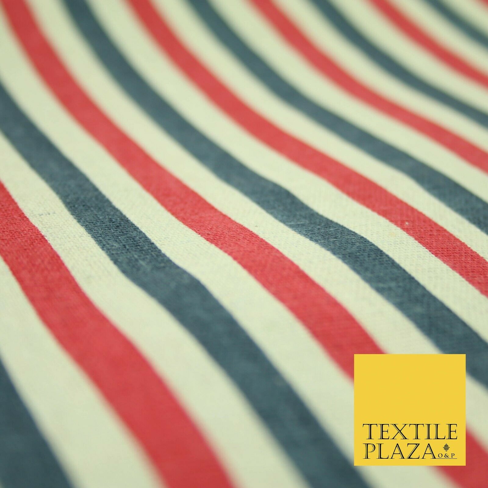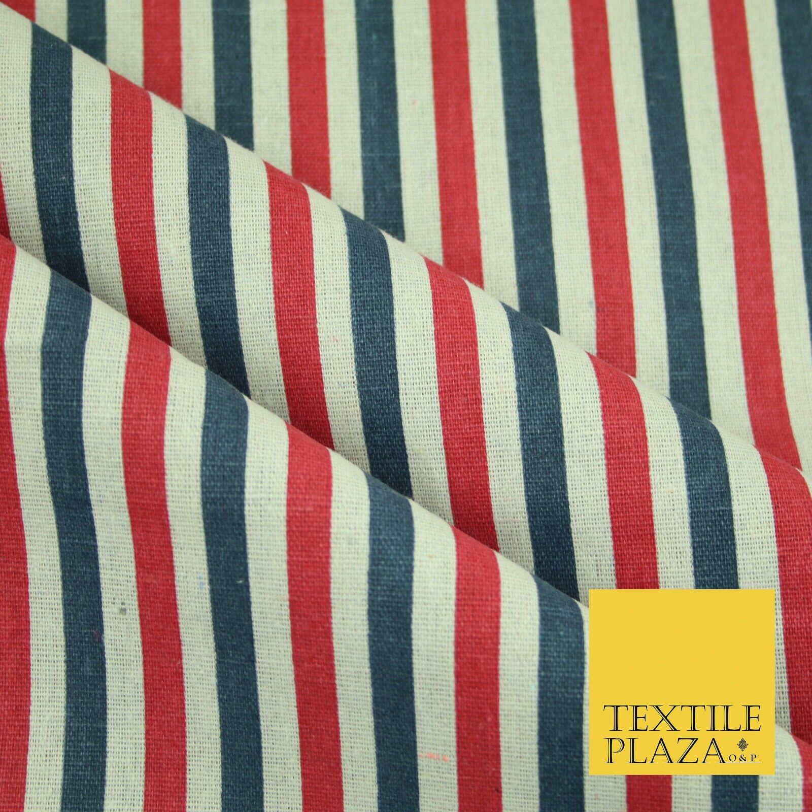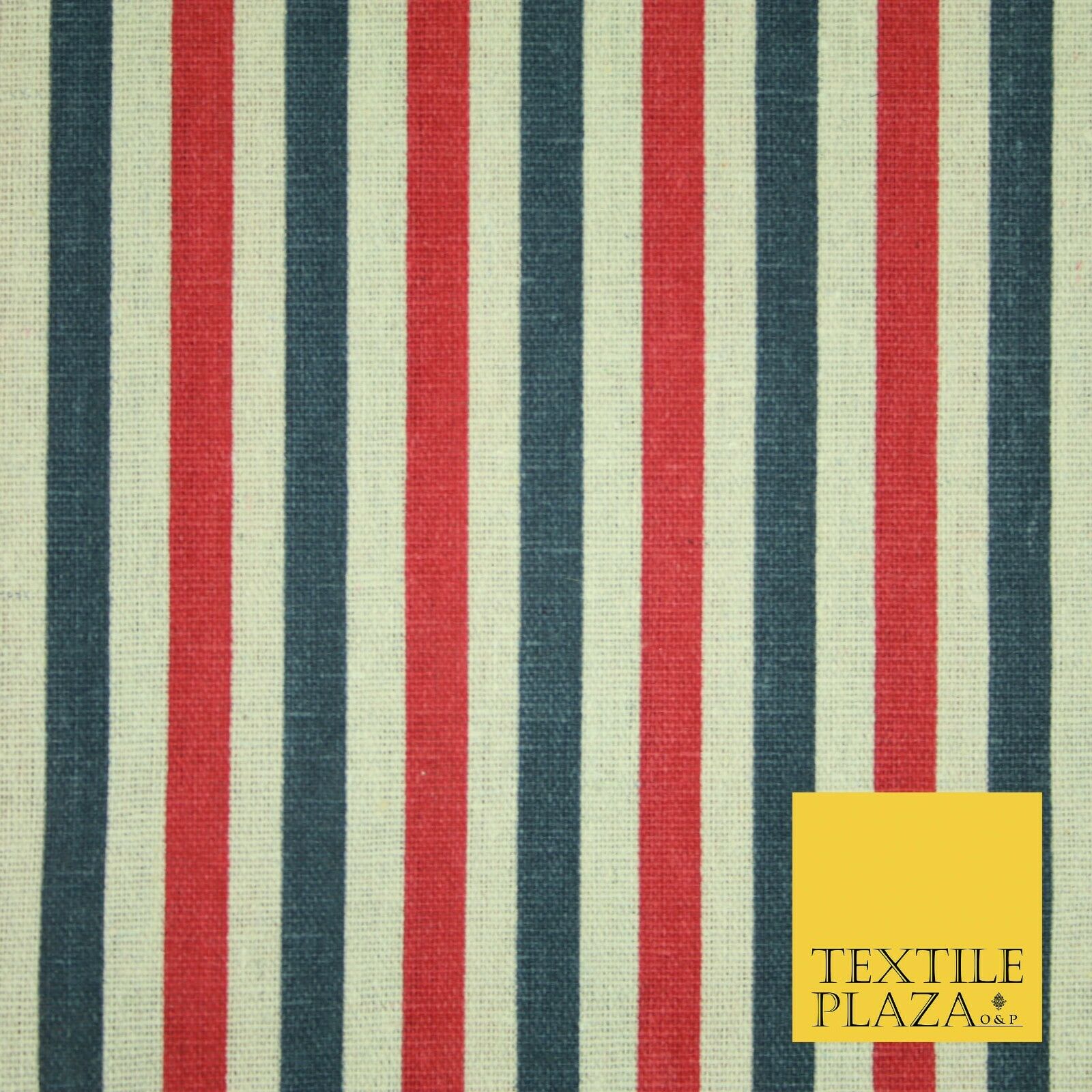 Blue Pink Ivory 1cm Candy Stripes Lines Printed 100% Cotton Linen Fabric 60"Wide