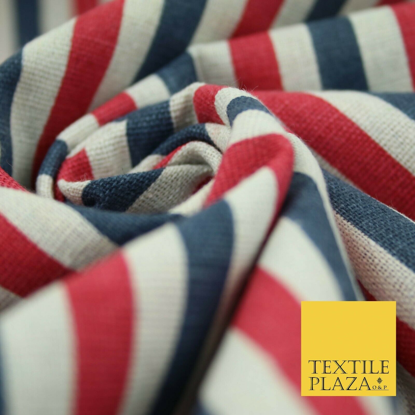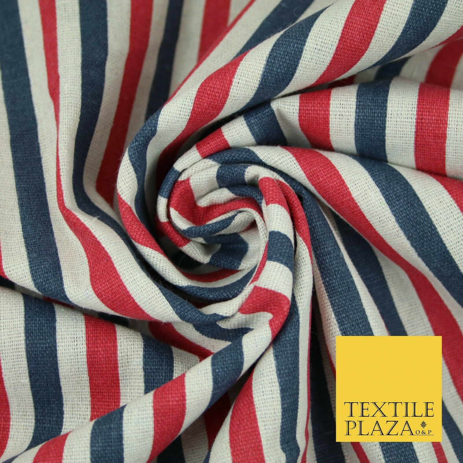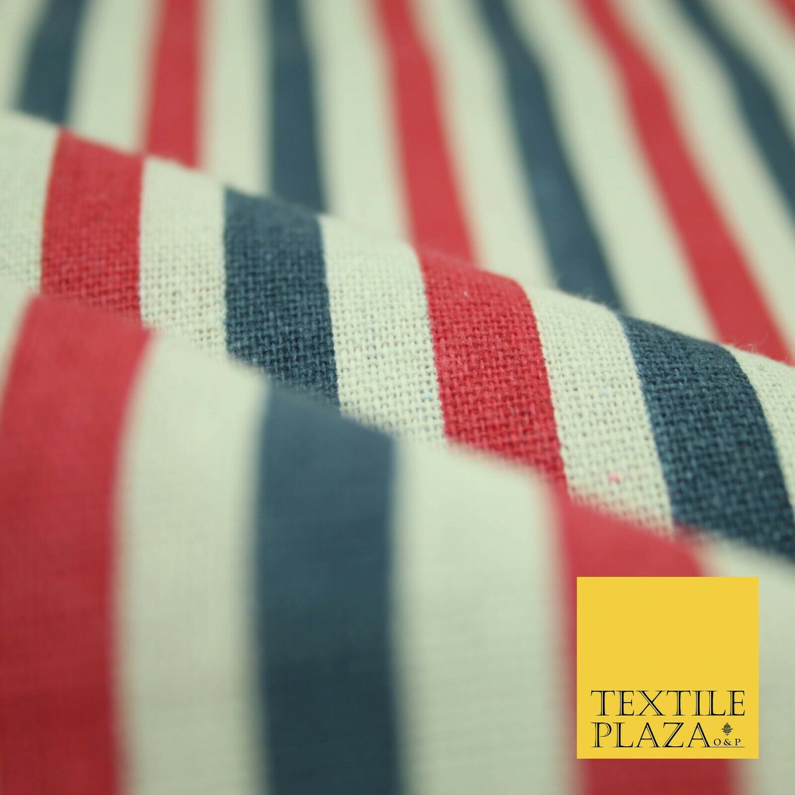 Blue Pink Ivory 1cm Candy Stripes Lines Printed 100% Cotton Linen Fabric 60"Wide