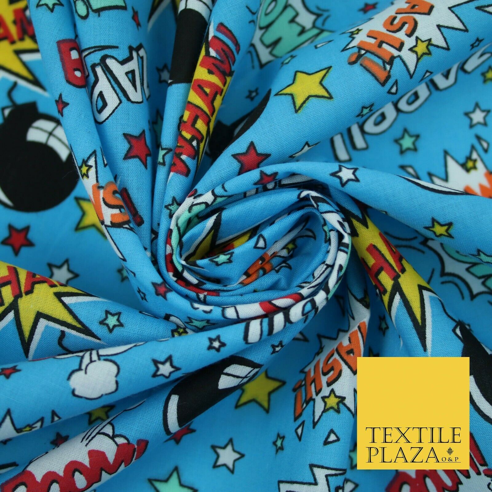 Premium Kids Cartoon Comic Book Action POW WHAM ZAPP BOOM Printed Poly Cotton Fabric