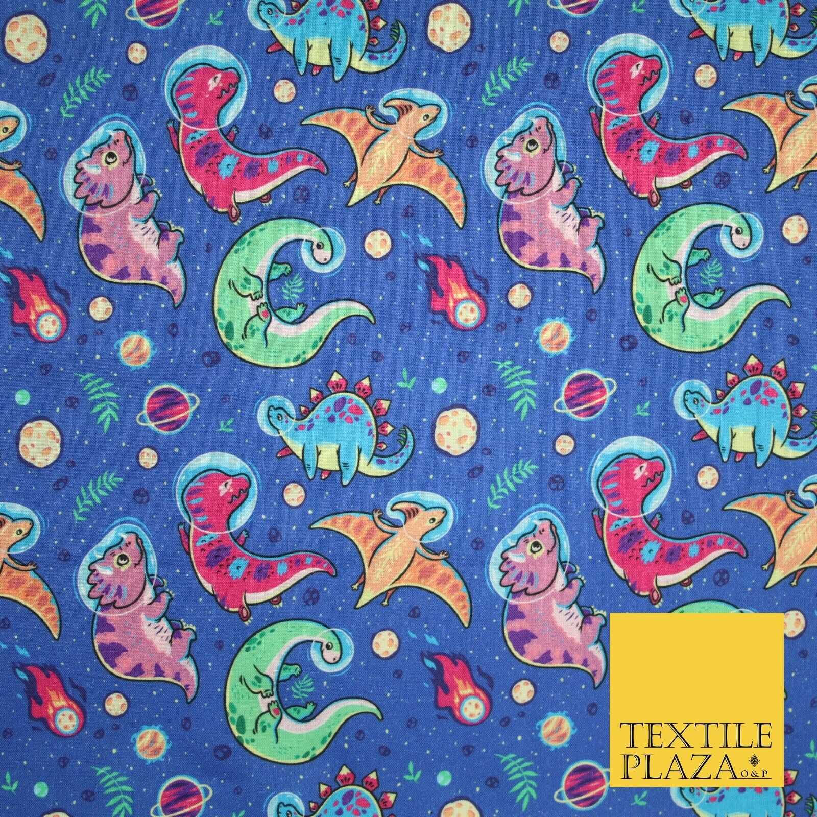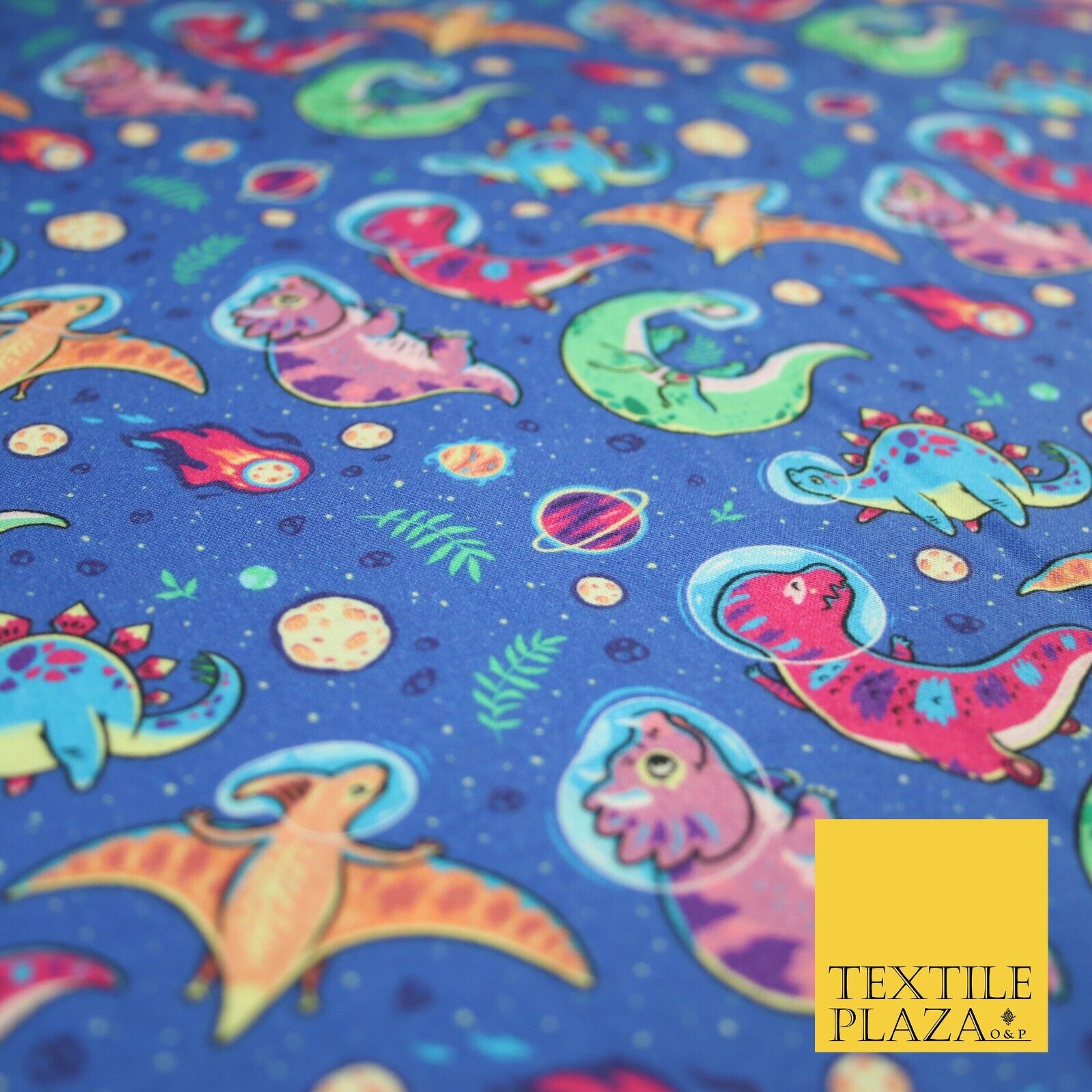 Space Dinosaur Astronaut Planets Digital Print 100% Cotton Fabric