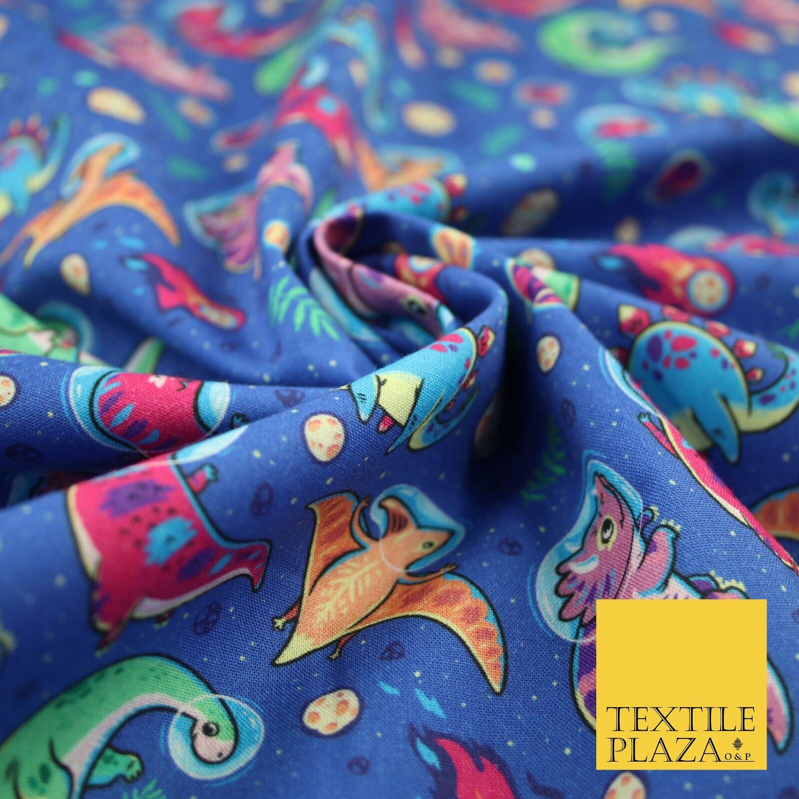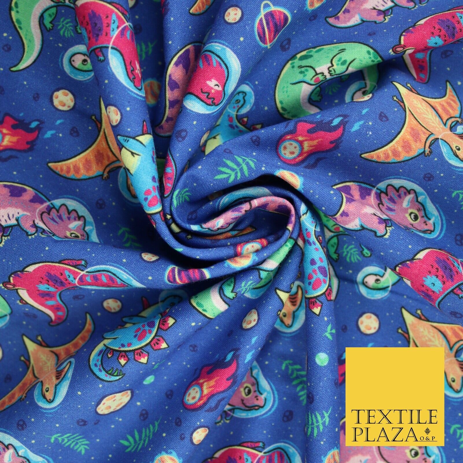 Blue Space Dinosaur Astronaut Planets Digital Print 100% Cotton Fabric 59" 8227