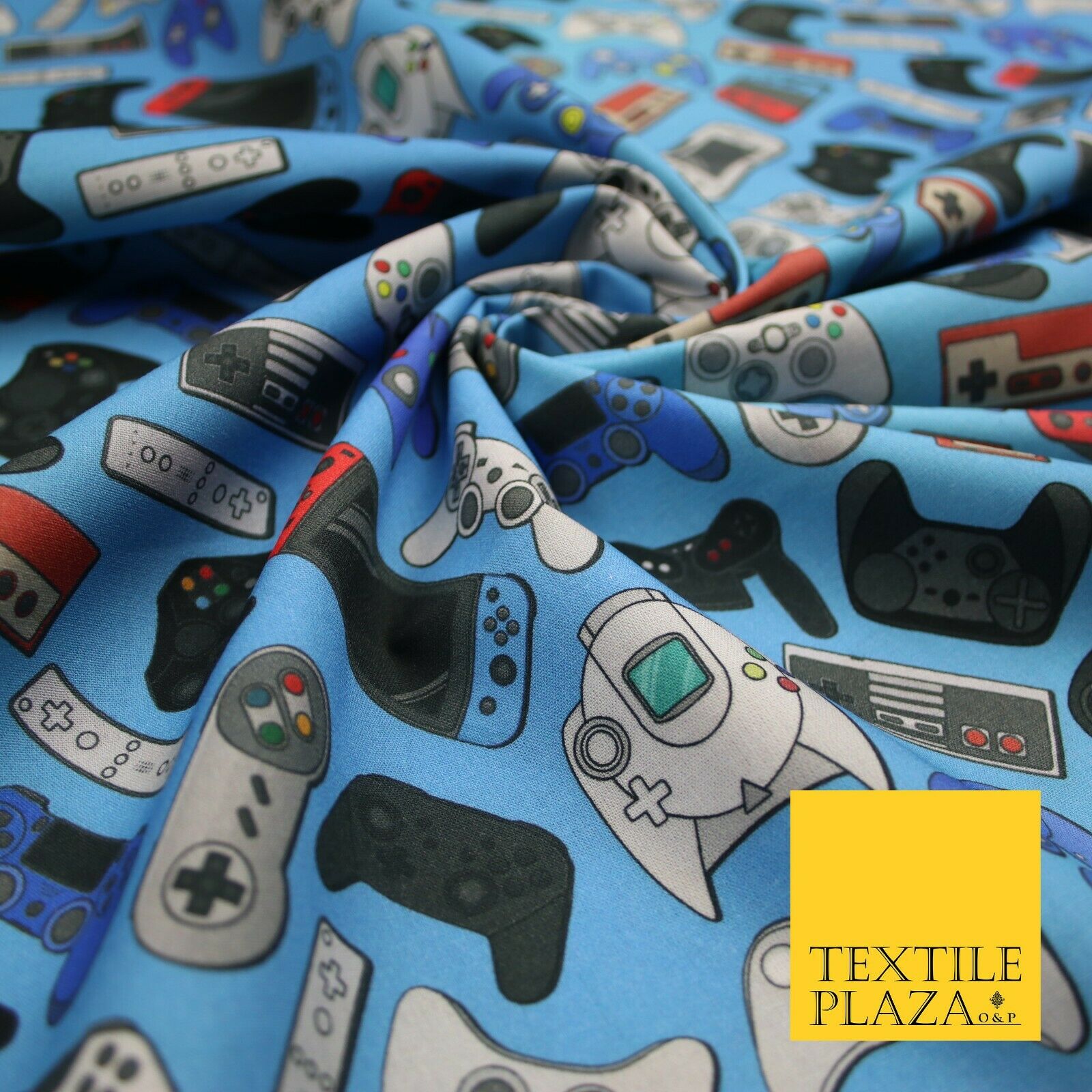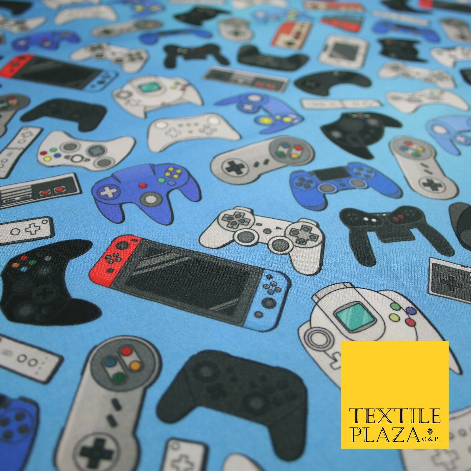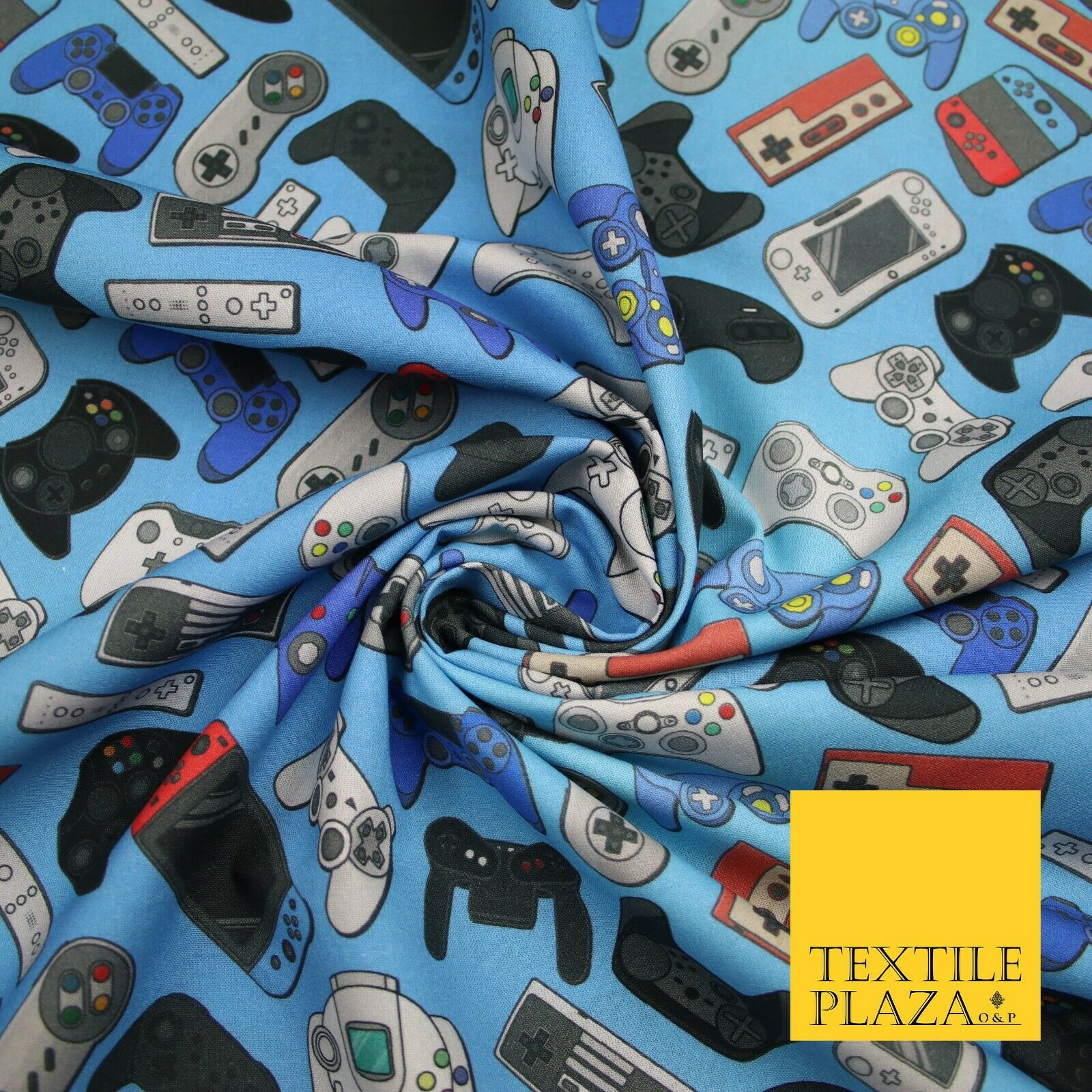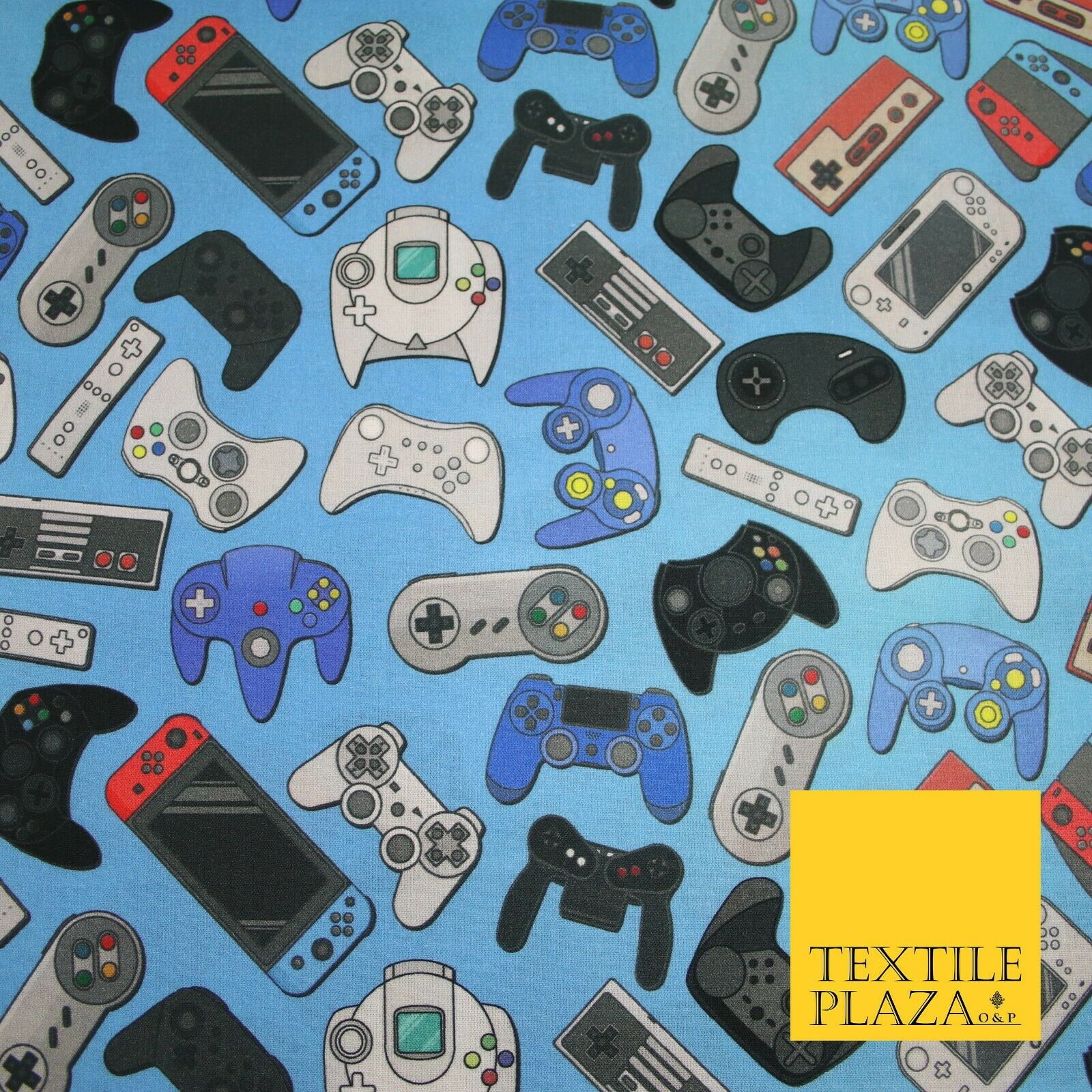 Blue Video Game Controllers Gaming Digital Print 100% Cotton Fabric 59" 7079
