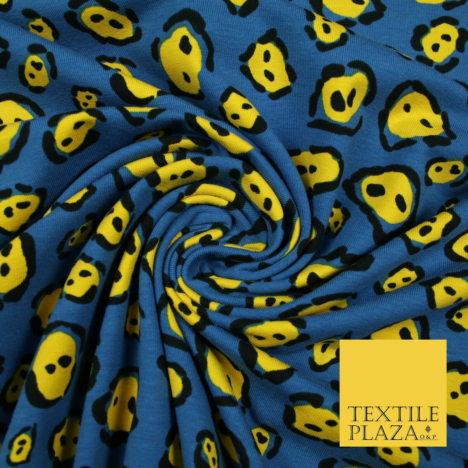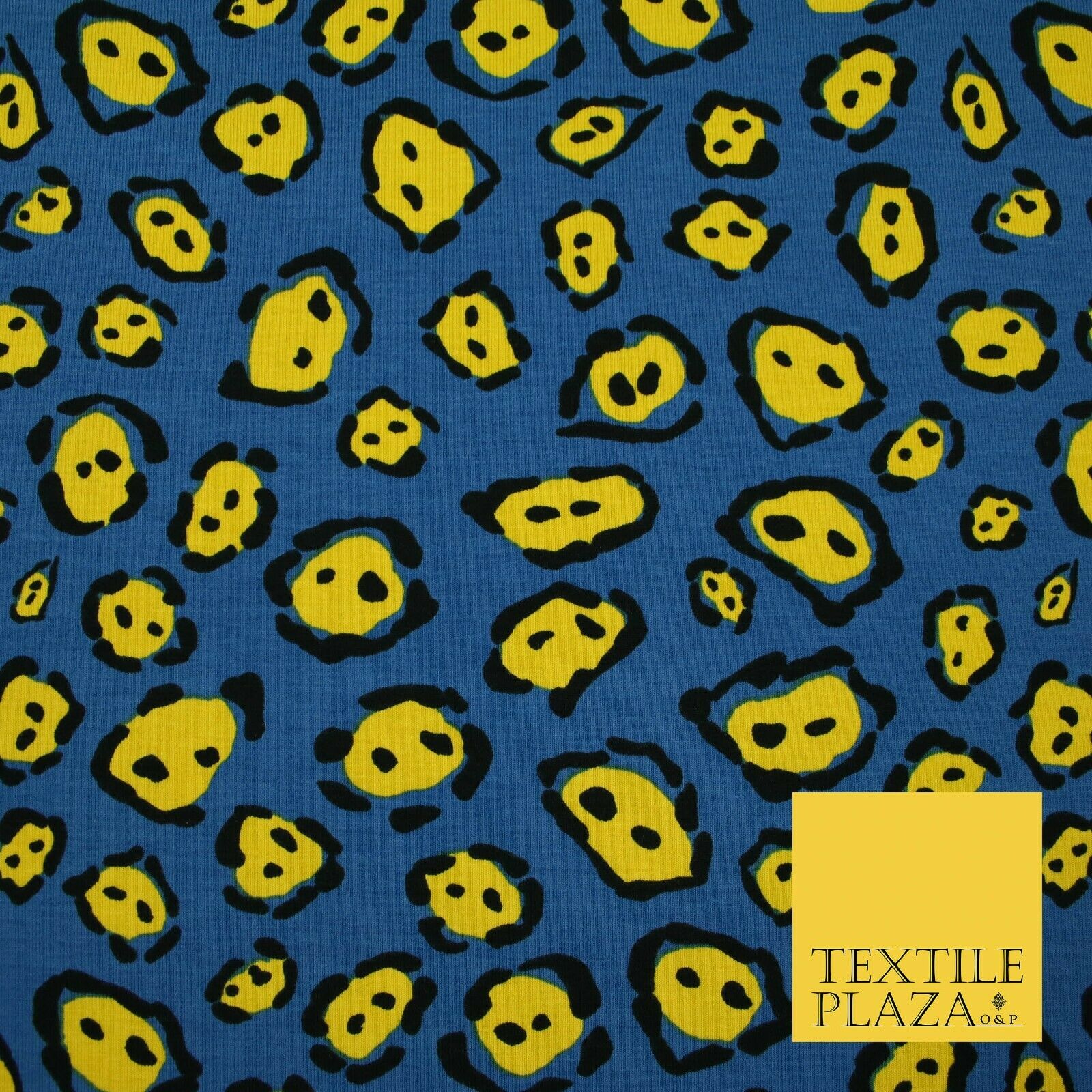 Blue Yellow Wacky Leopard Animal Print Soft Organic Cotton Jersey Fabric 59"5475