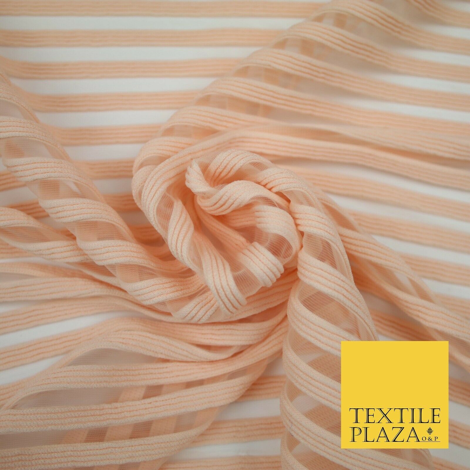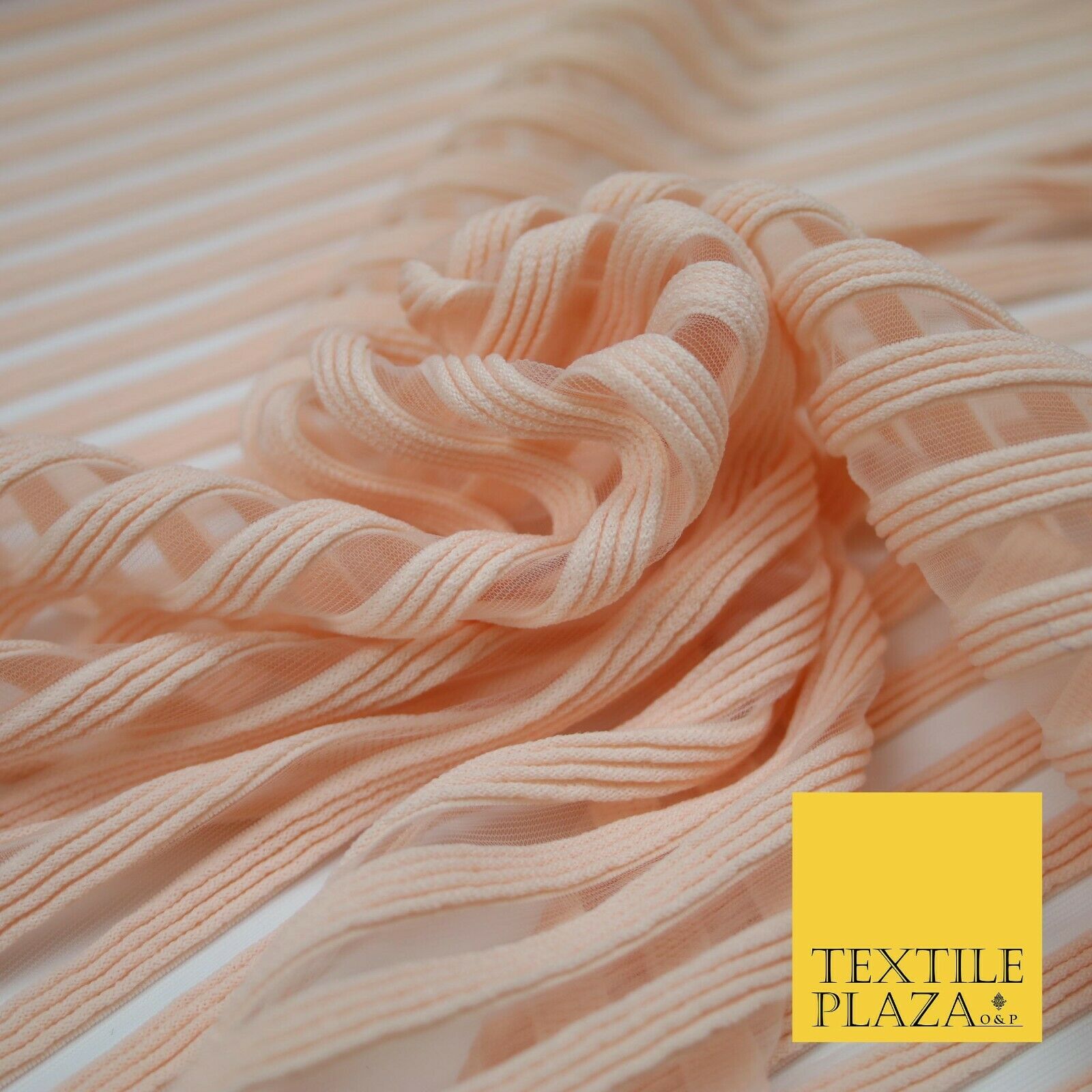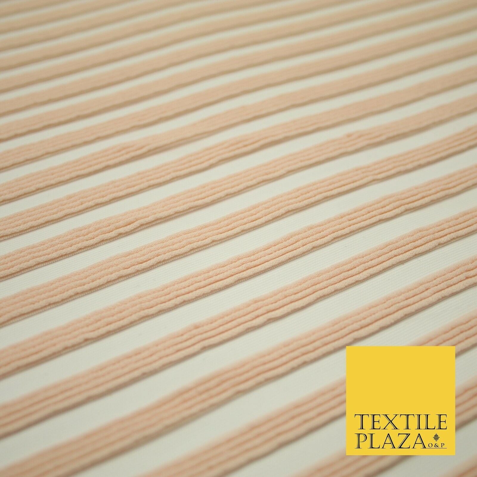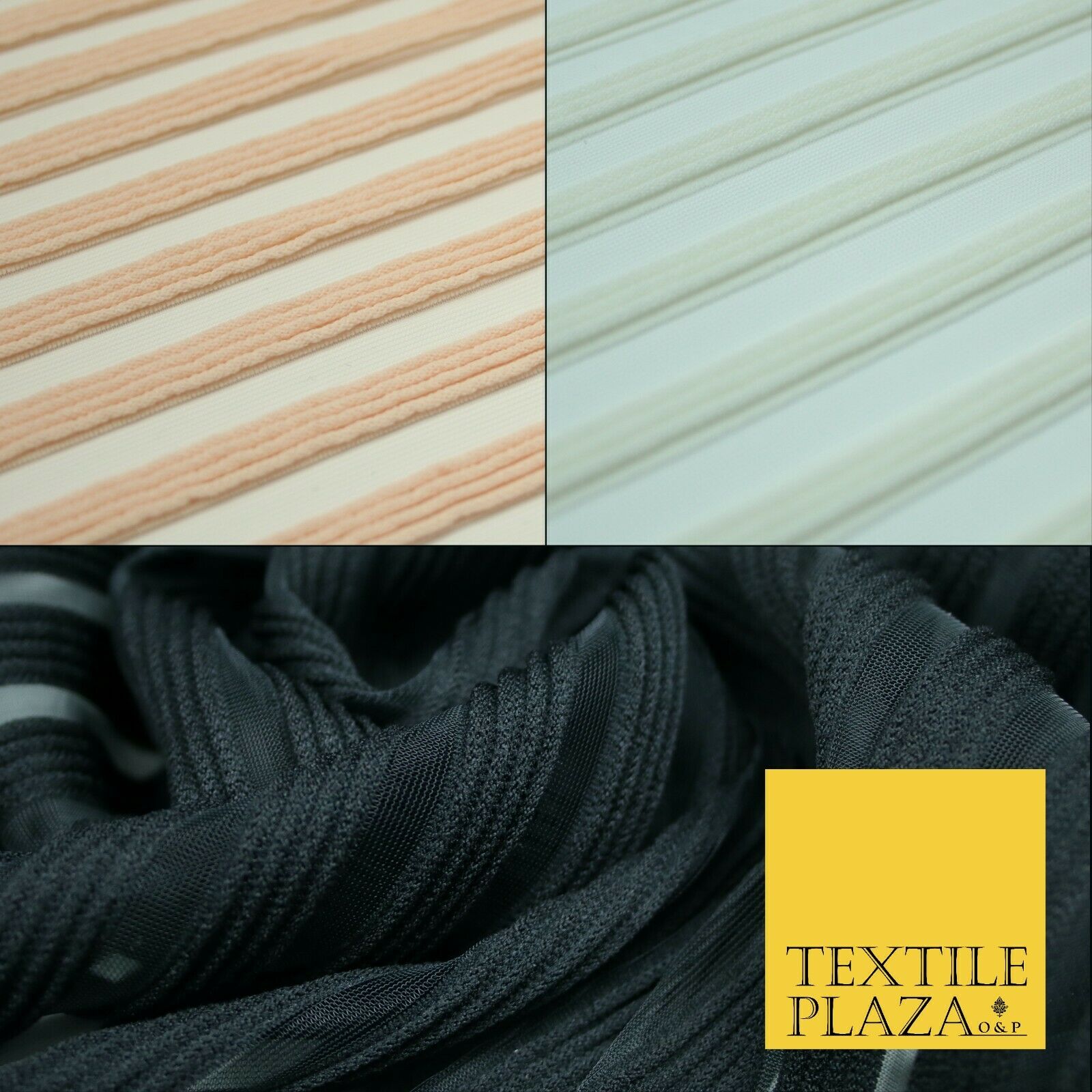 Blush Ivory Black Premium Corded Ribbed Striped Raised Net Stretch Dress Fabric