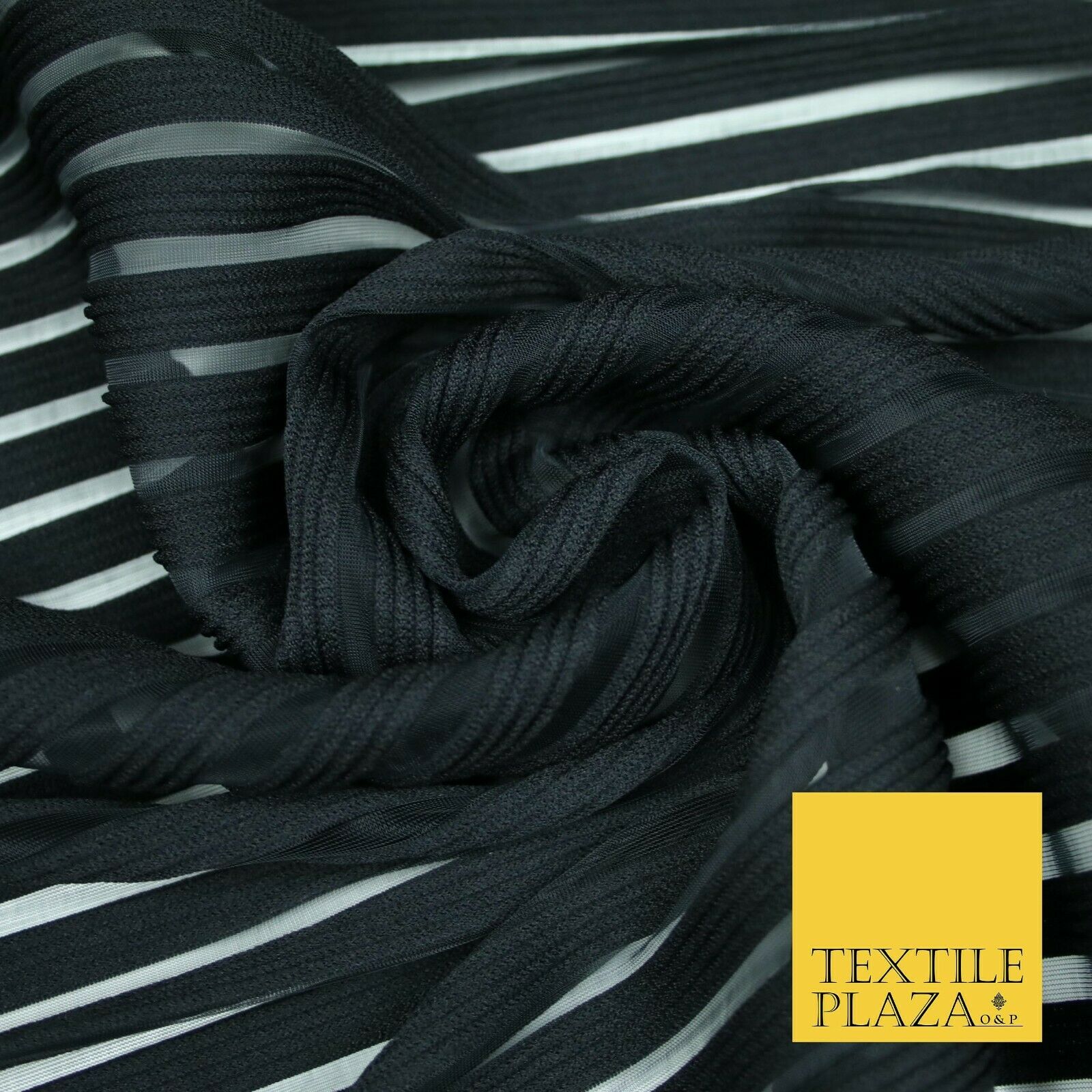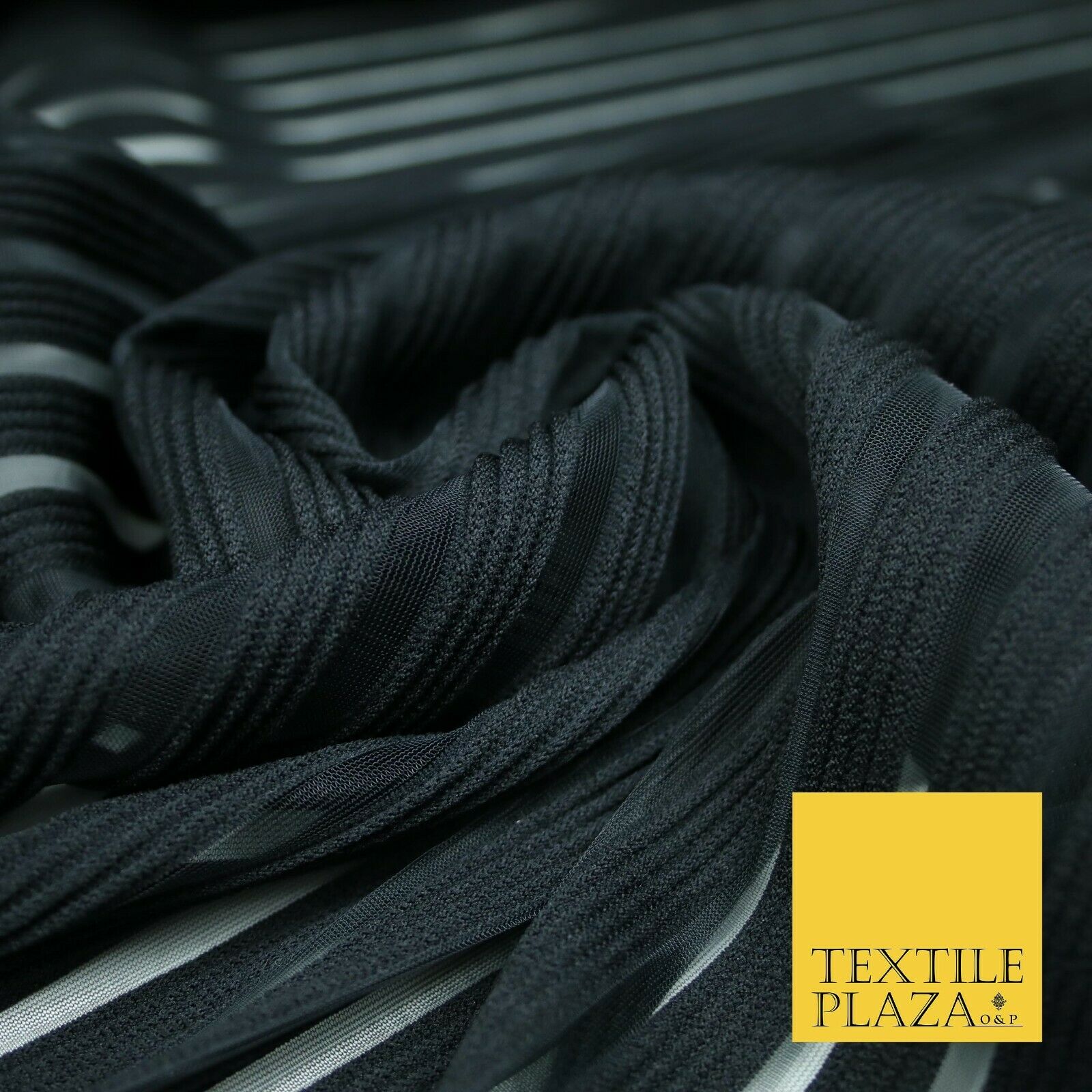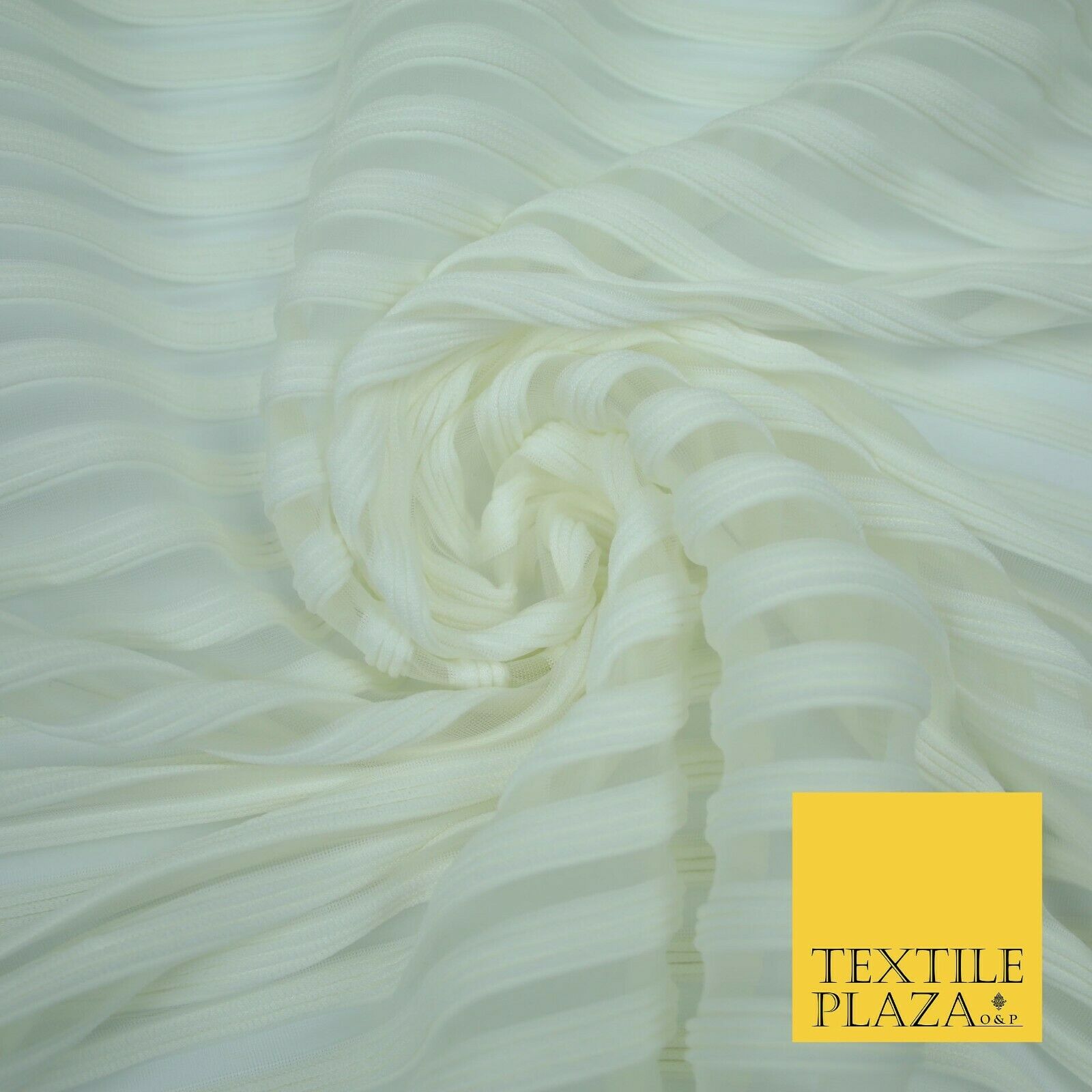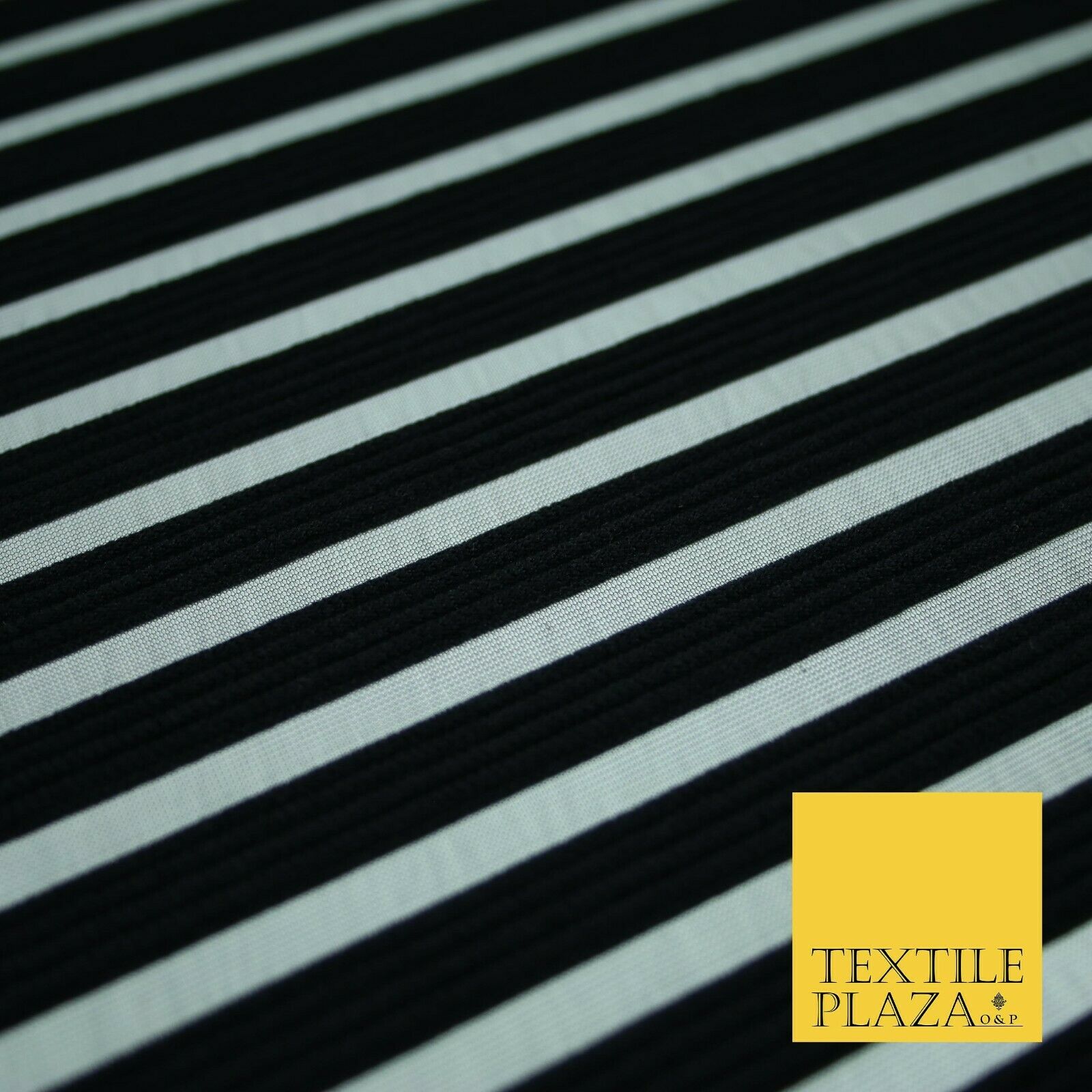 Blush Ivory Black Premium Corded Ribbed Striped Raised Net Stretch Dress Fabric