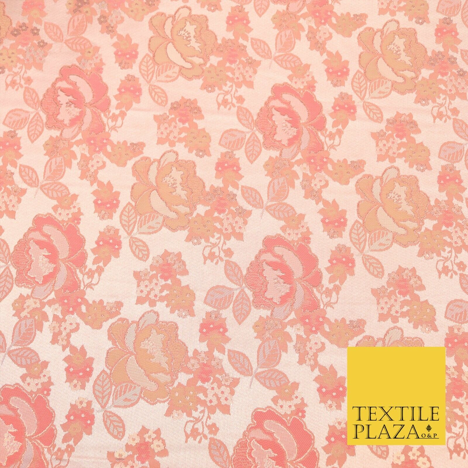 Blush Peach Premium Floral Carnation Satin Brocade Jacquard Dress Fabric 1699