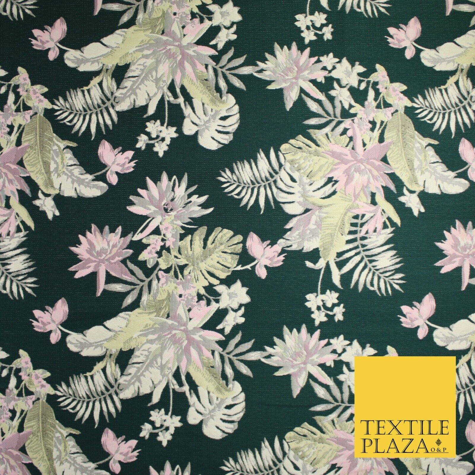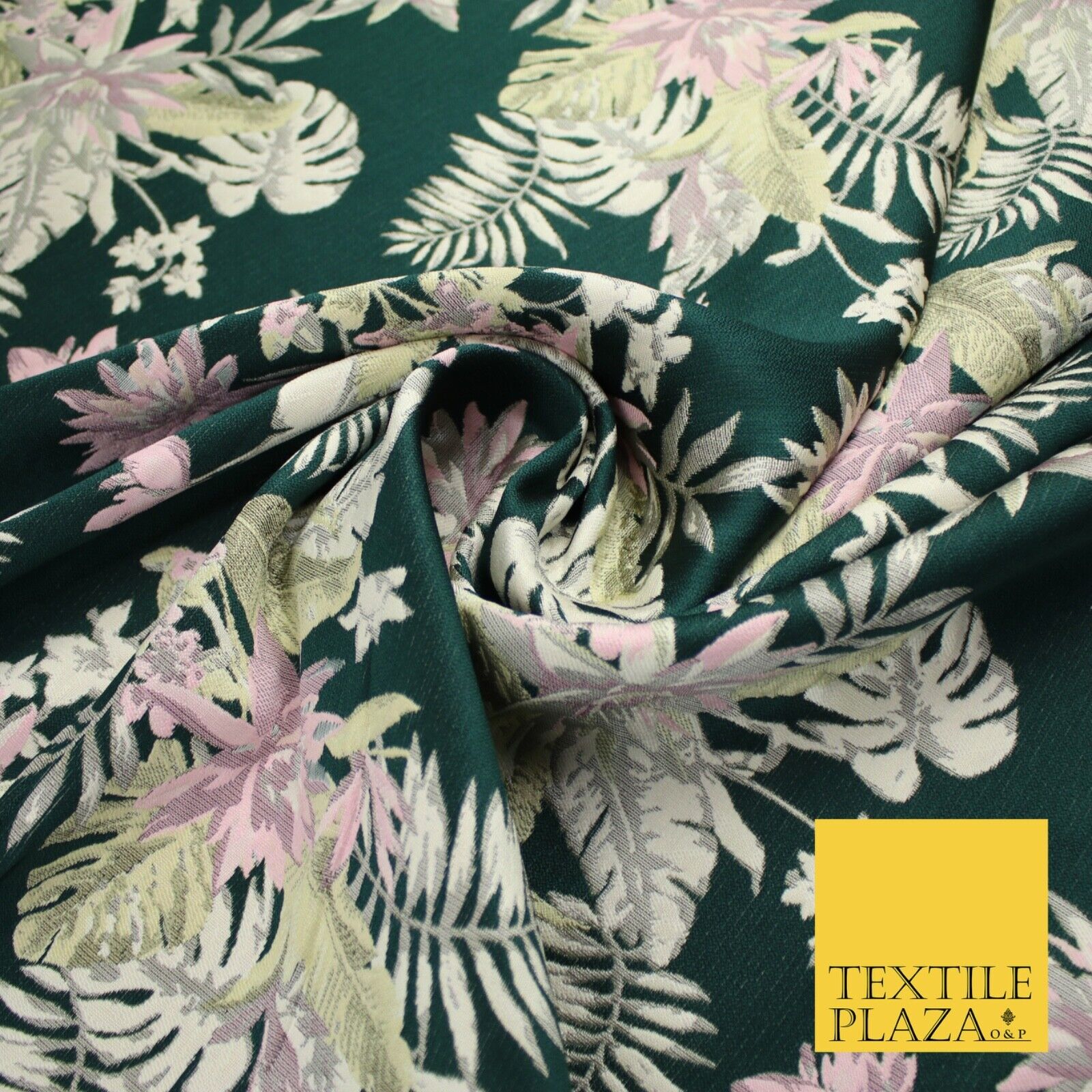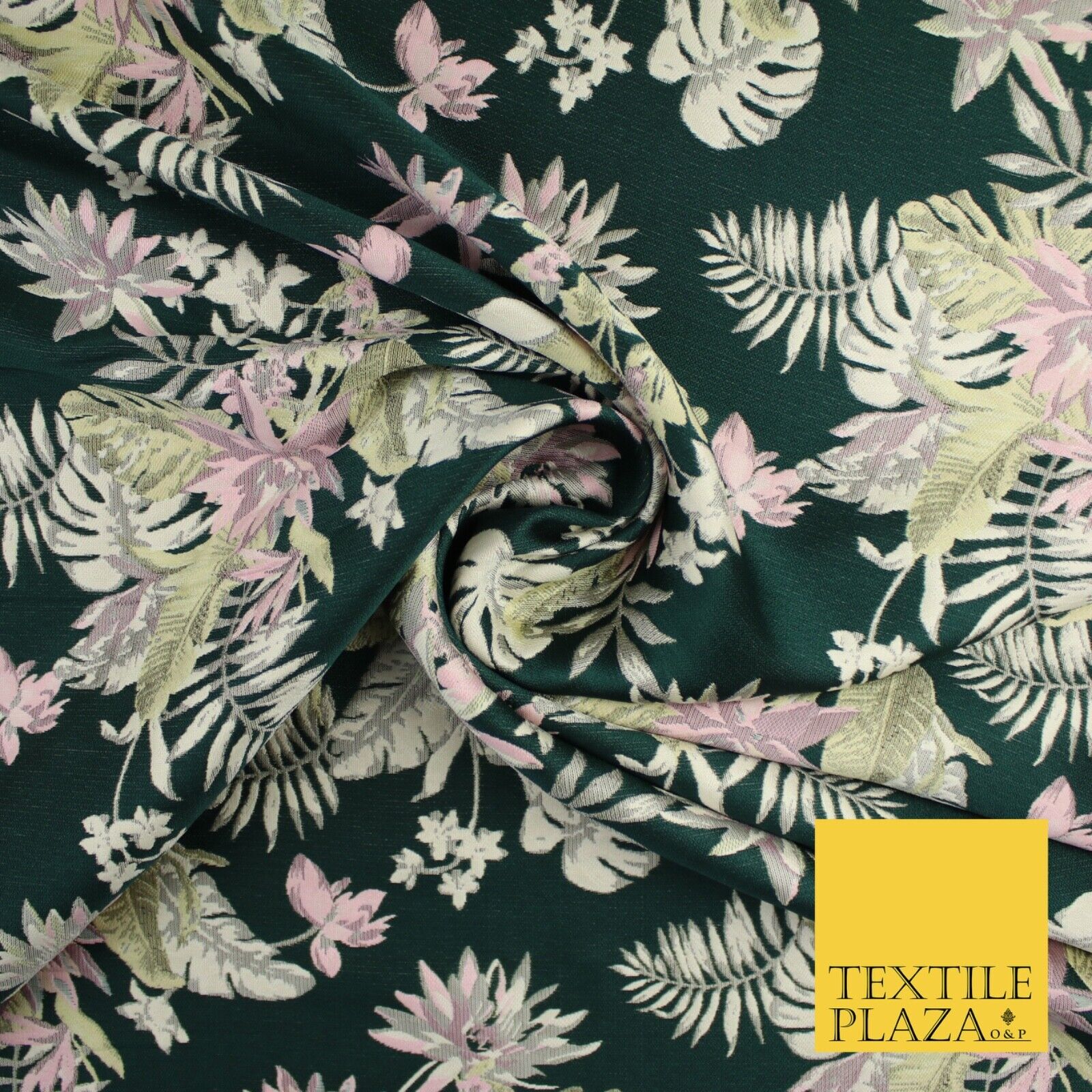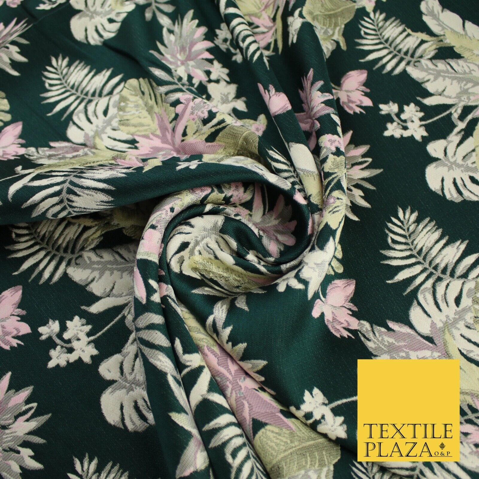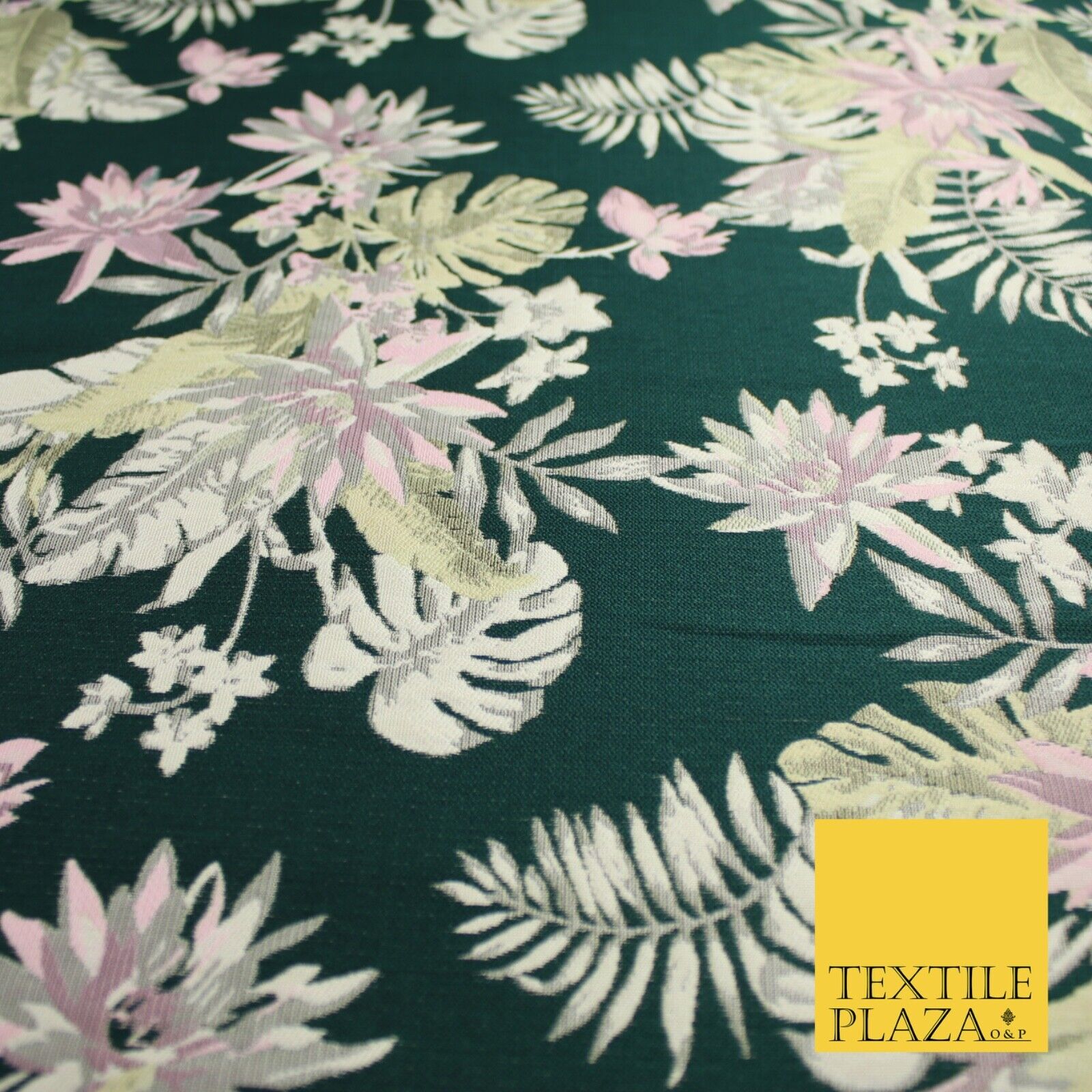 Bottle Green Pink Floral Monstera Metallic Textured Brocade Dress Fabric 9916