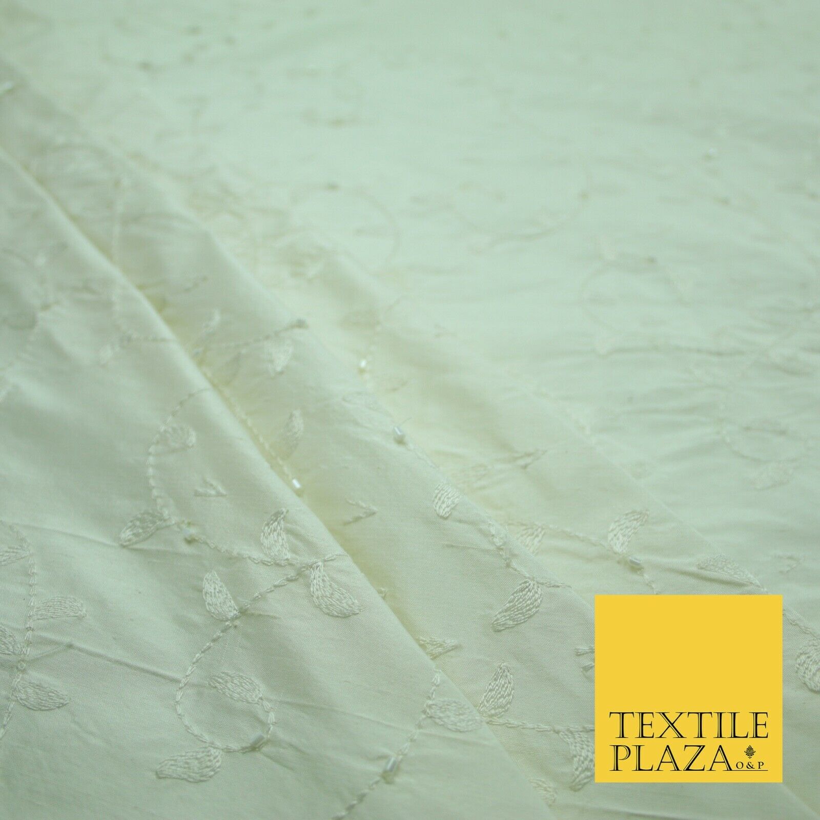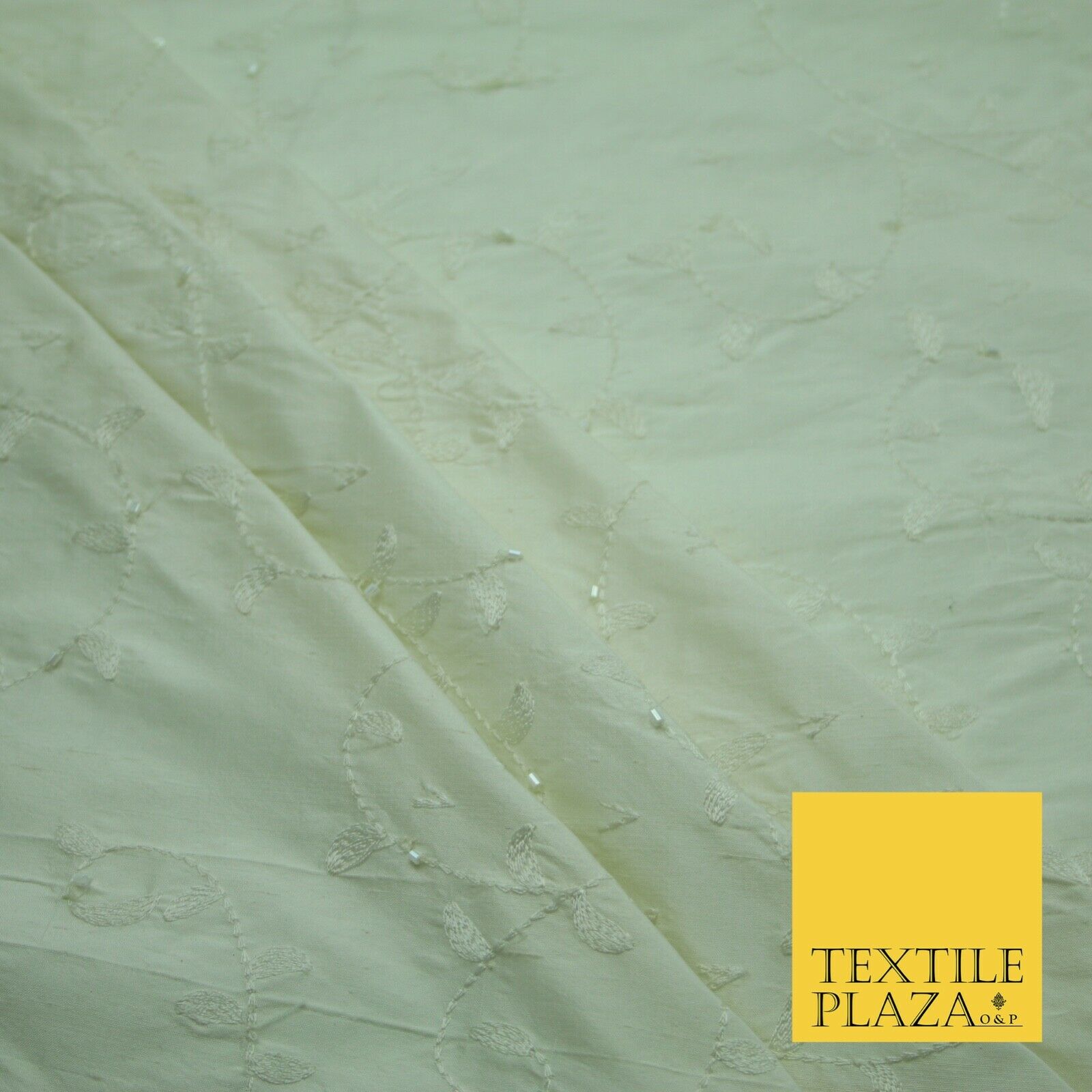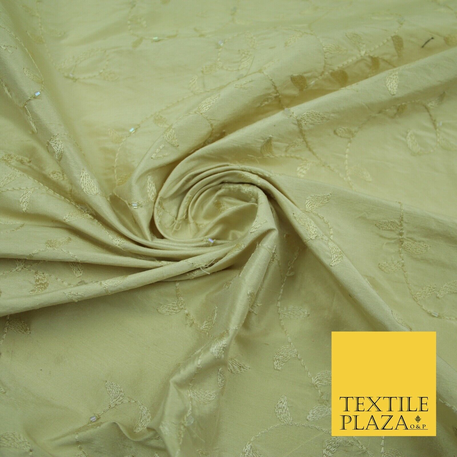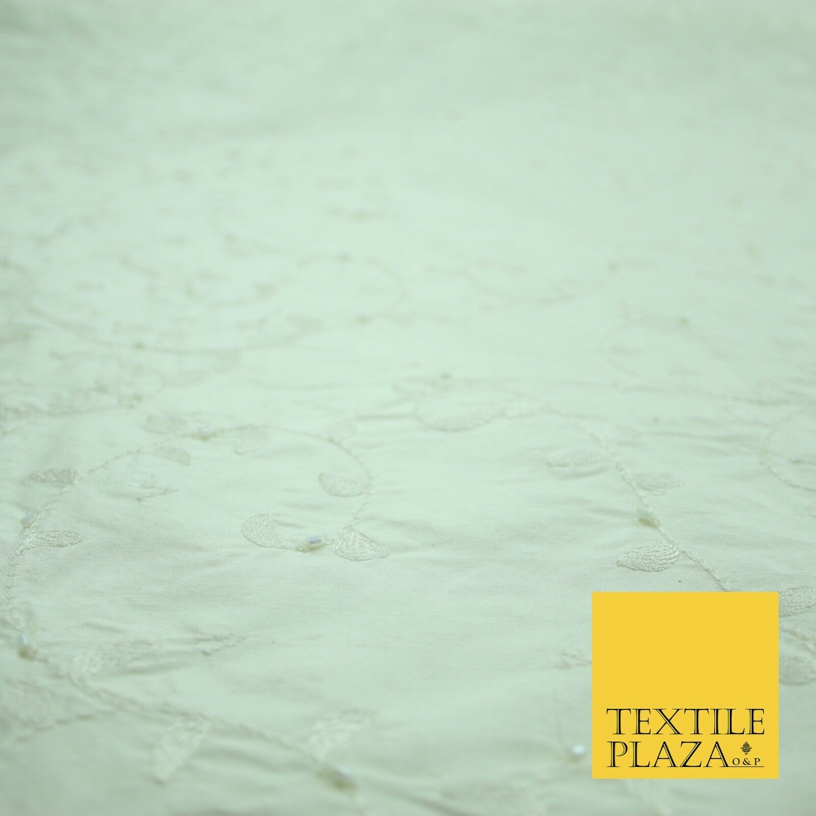 Bridal Bridesmaids Wedding 100% Pure TwoTone Silk Bead Allover Embroidery Fabric