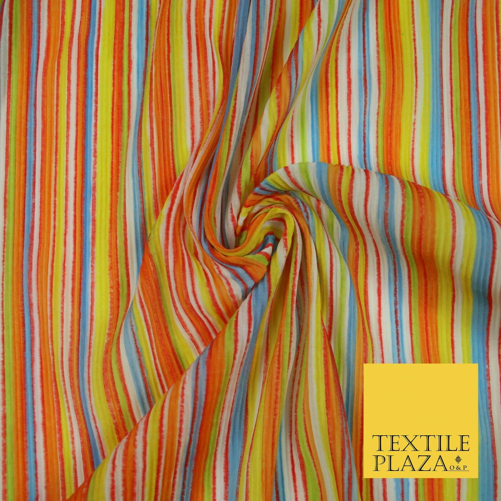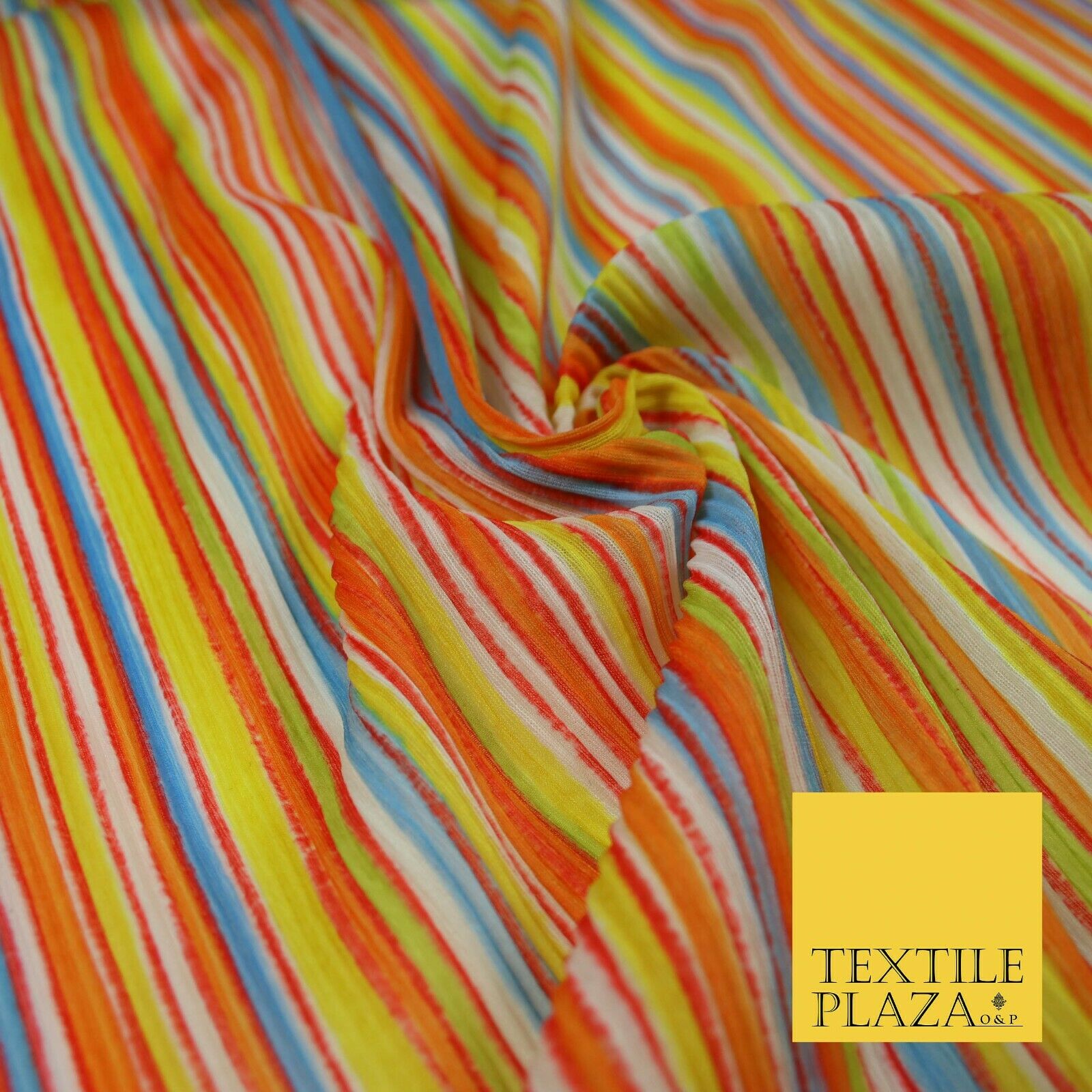 Bright Multicolour Colourful Striped Lines Textured Pleated Plisse Fabric 5451