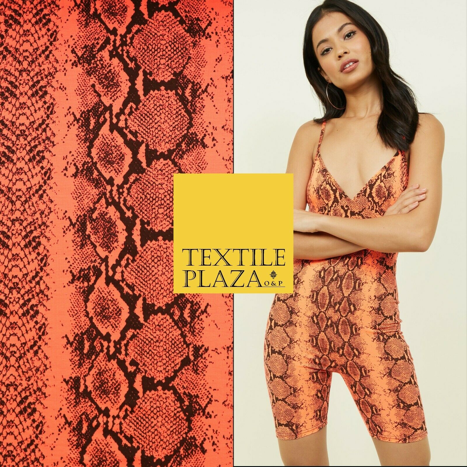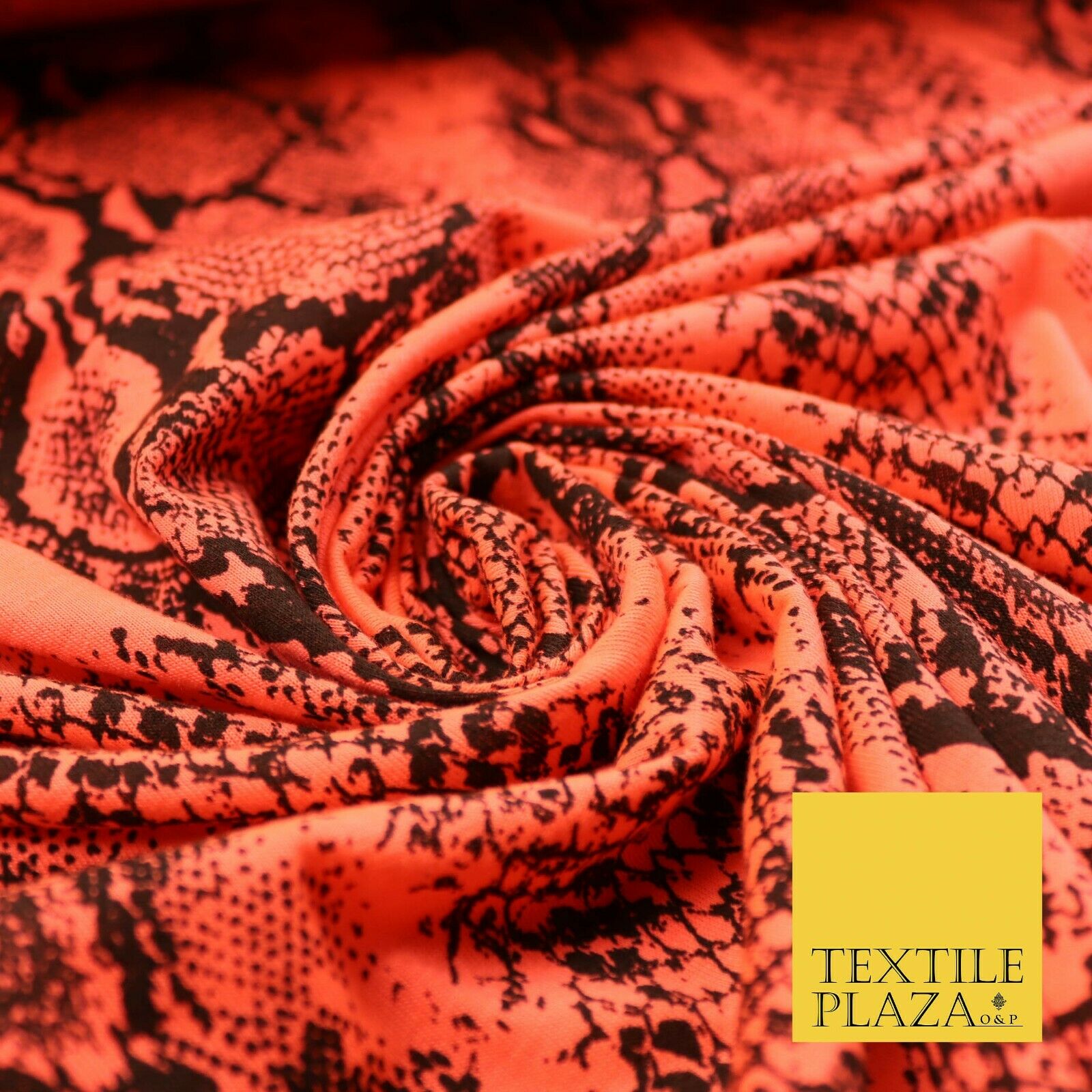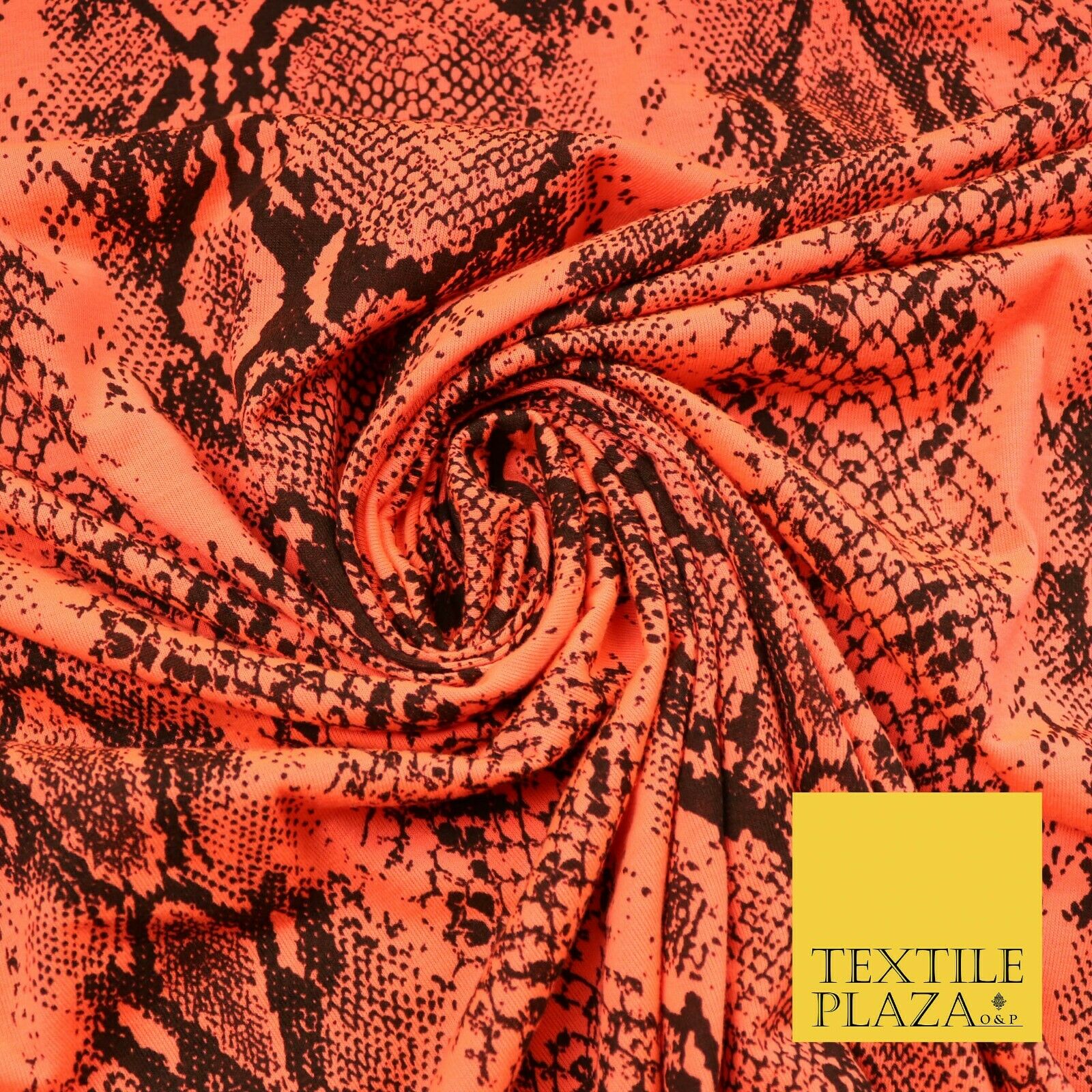 Bright Neon Orange Snake Animal Print Stretch Jersey Fabric Dress Craft 61" 4346