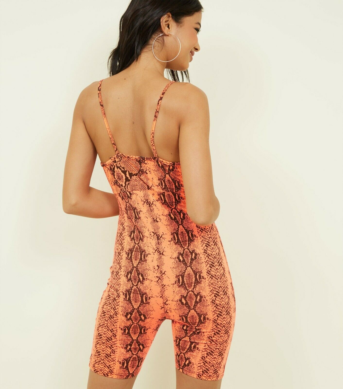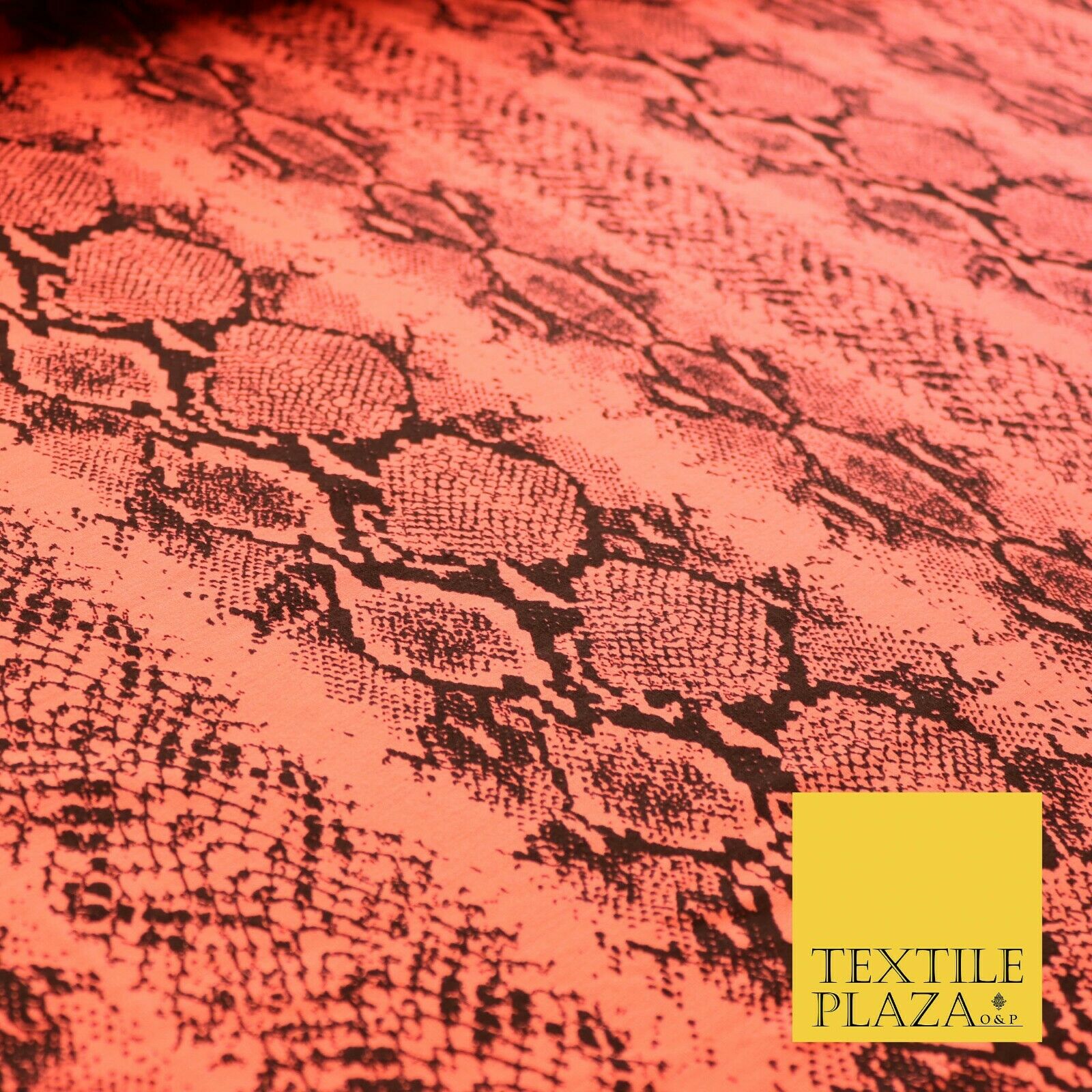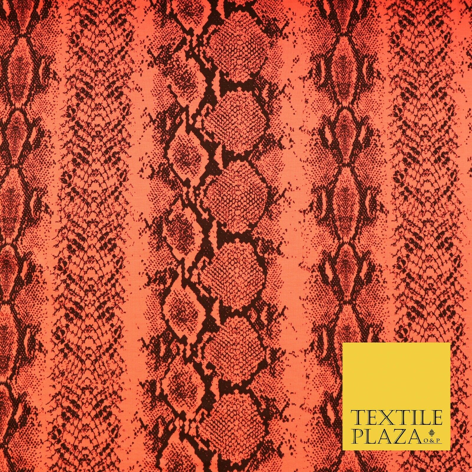 Bright Neon Orange Snake Animal Print Stretch Jersey Fabric Dress Craft 61" 4346
