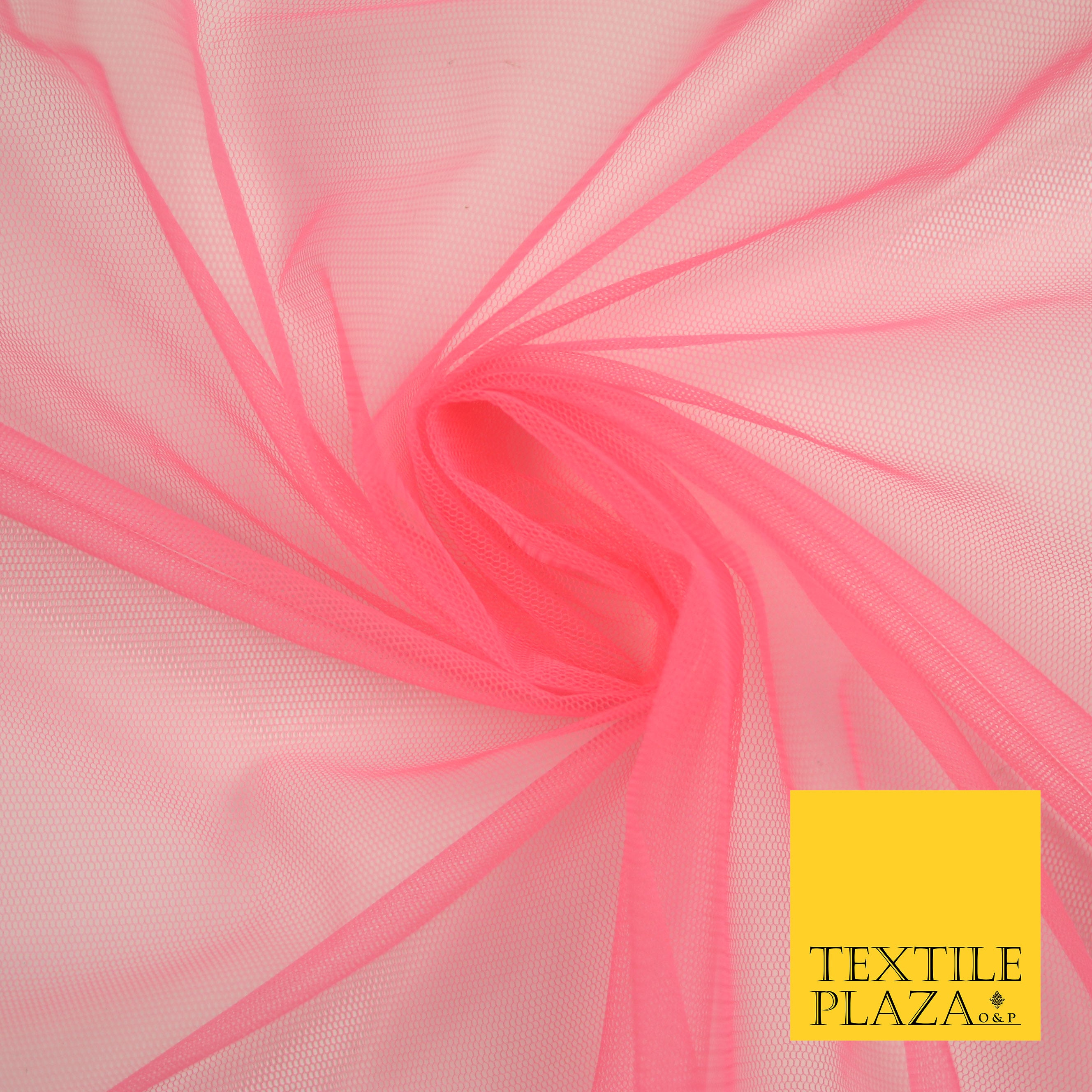 BRIGHT PINK Premium Soft Plain Sheer Tulle Net Fabric Tutu Fairy Veil Bridal 45" Wide 6909