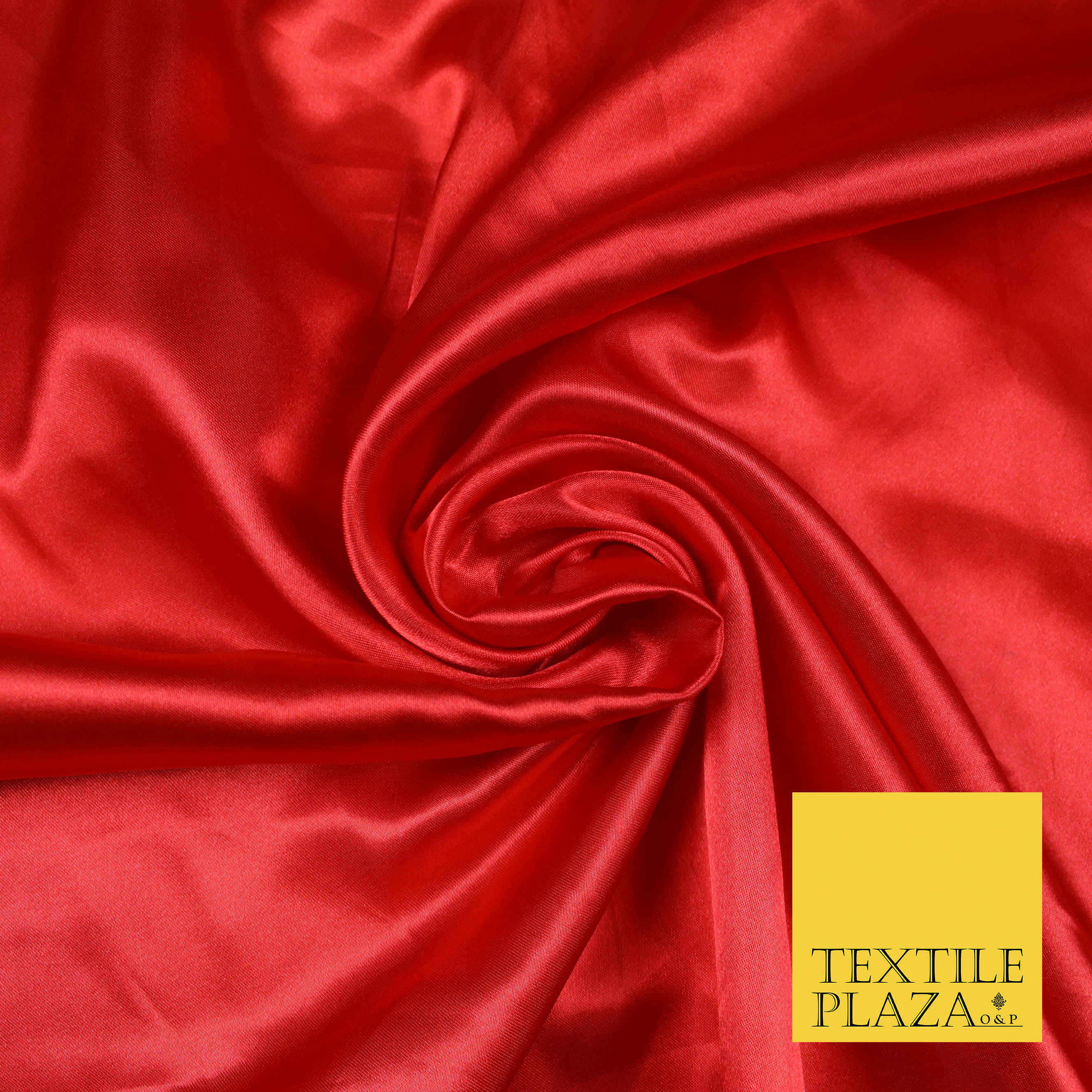 BRIGHT RED Luxury Plain Smooth Shiny Lightweight Poly Satin Fabric Dress Lining Material 58" 5687