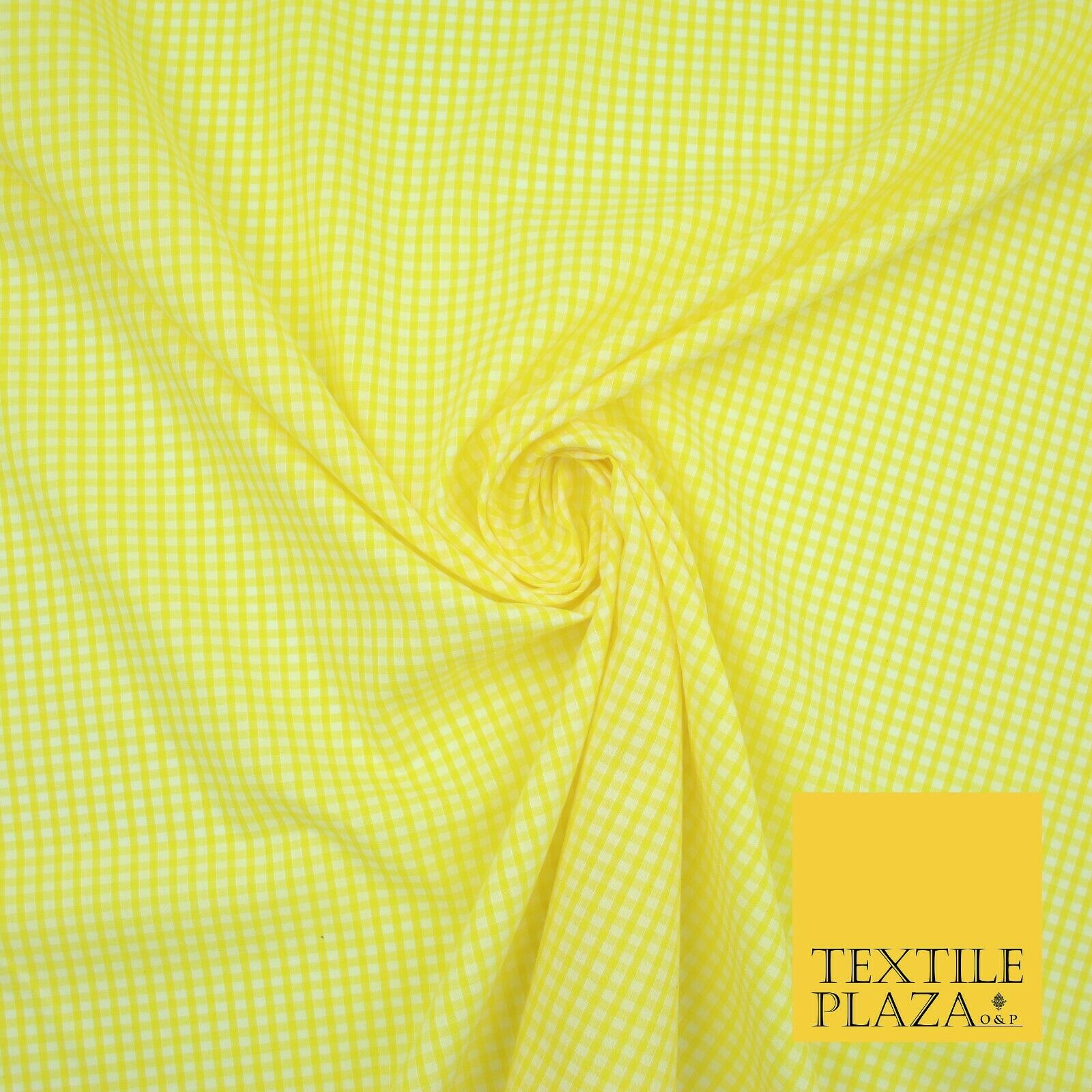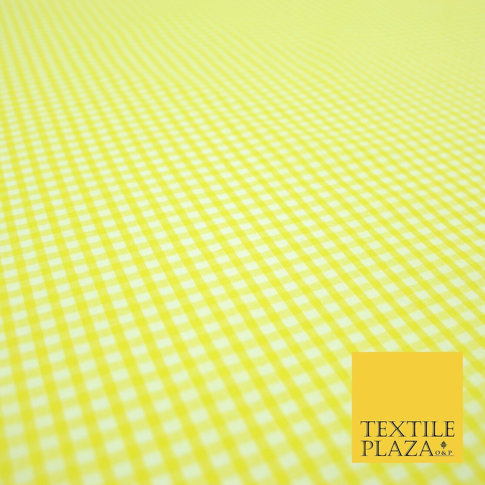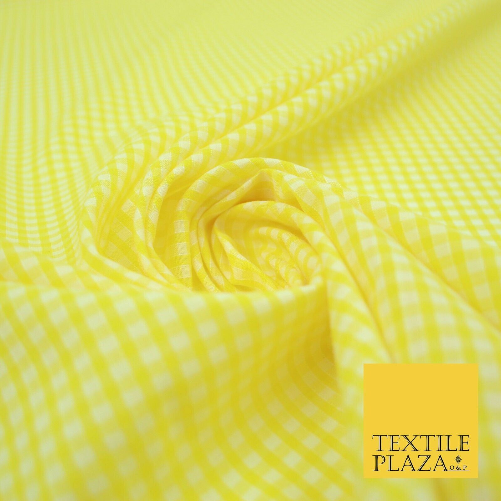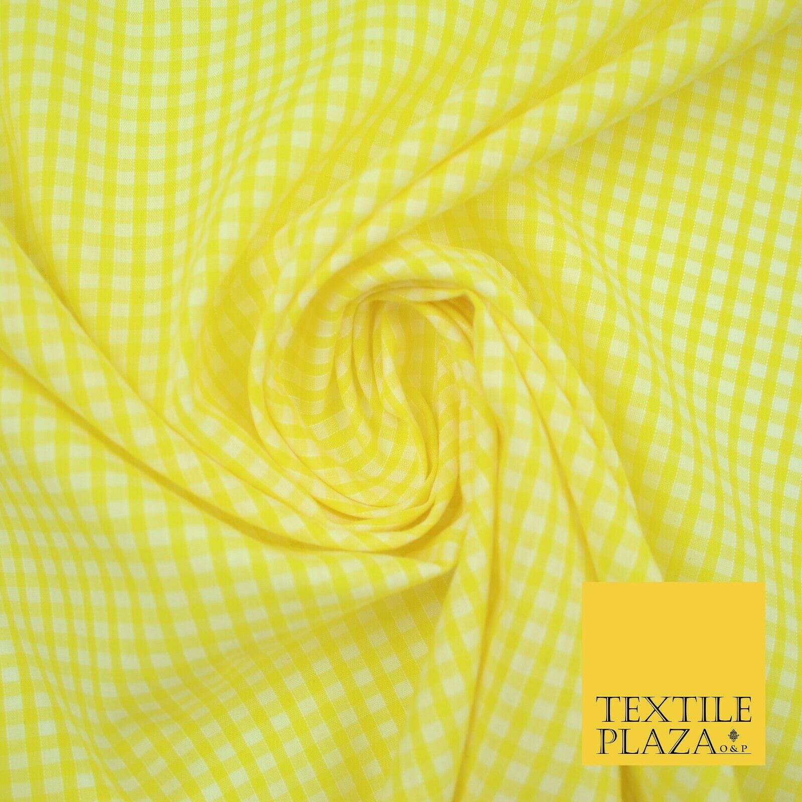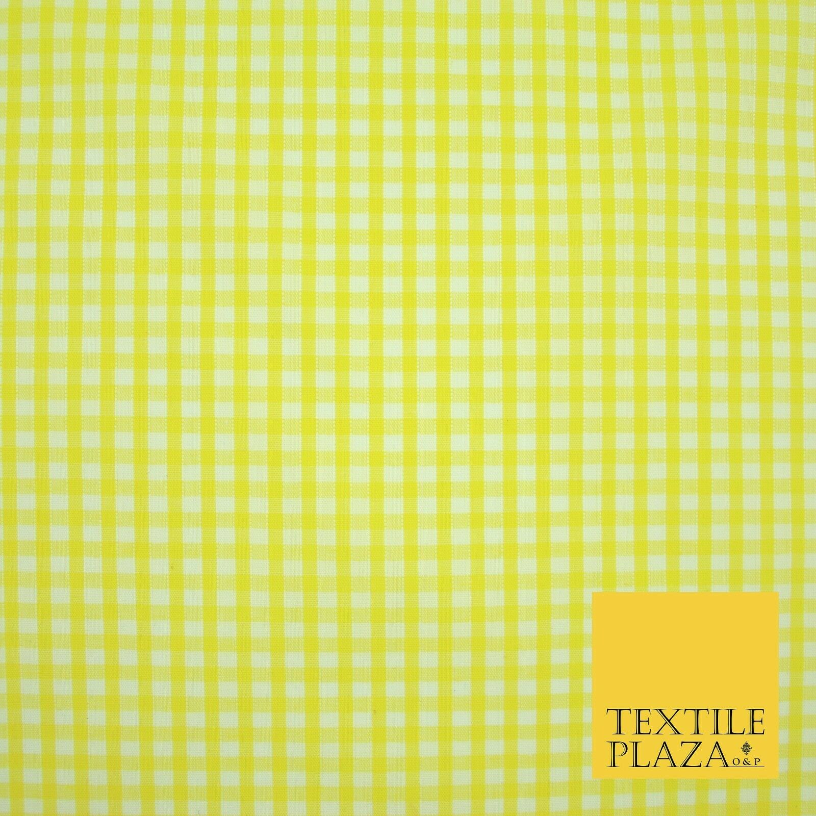 Bright Yellow Gingham Square Check POLY COTTON Dress Craft Fabric Summer 2802