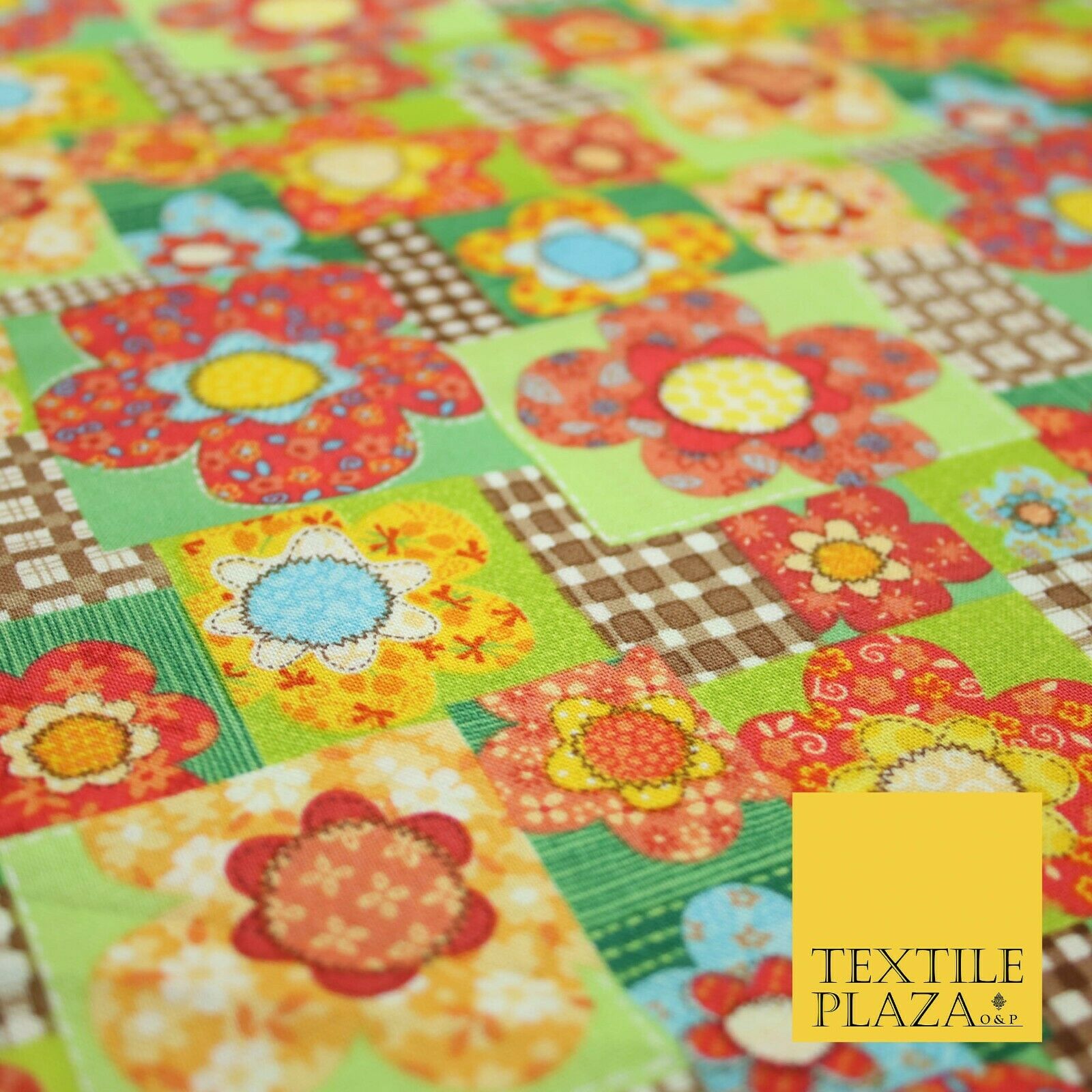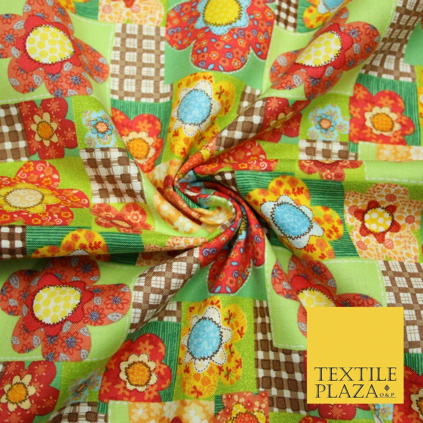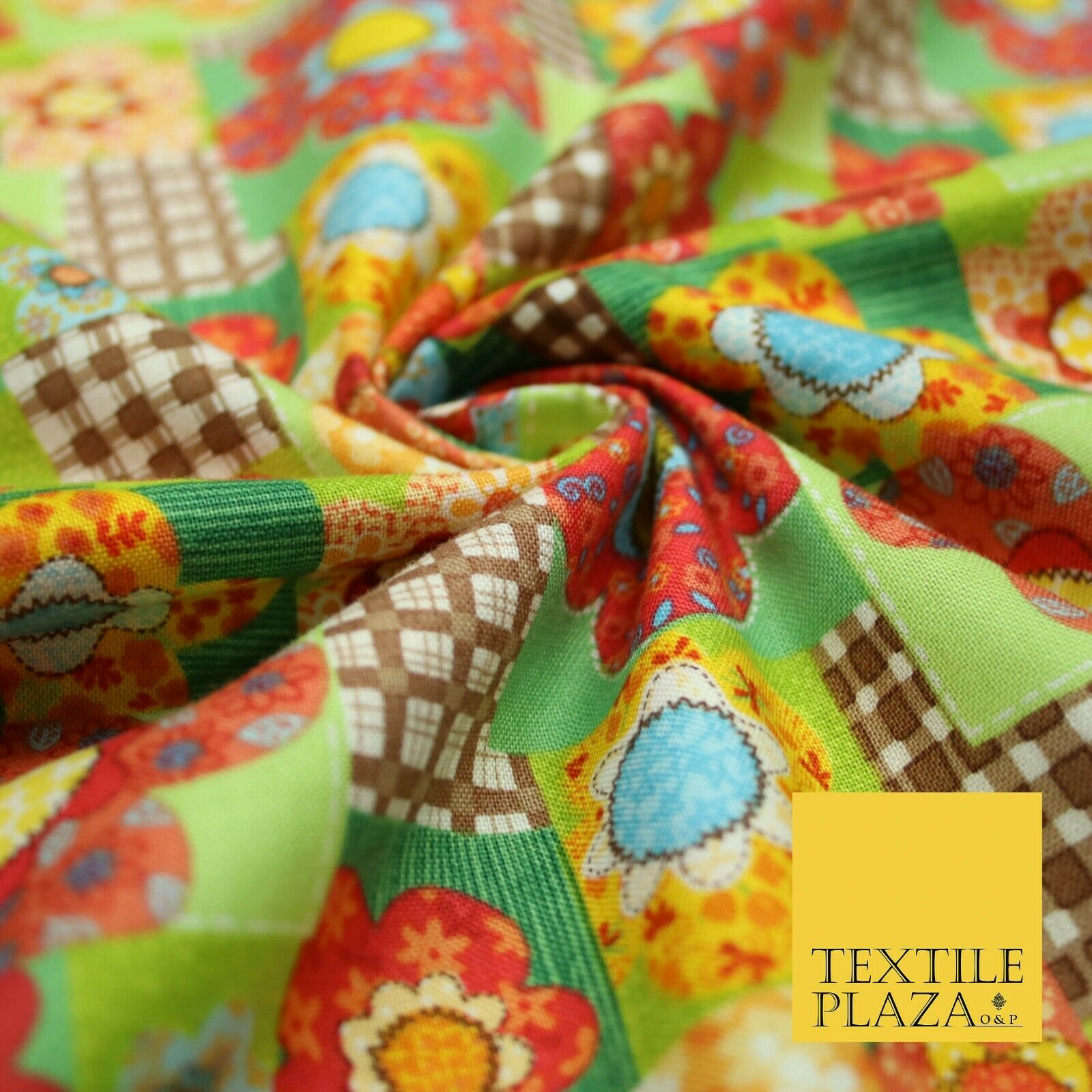 Brown Colourful Floral Patchwork Printed Soft 100% COTTON POPLIN Fabric 44" 4996