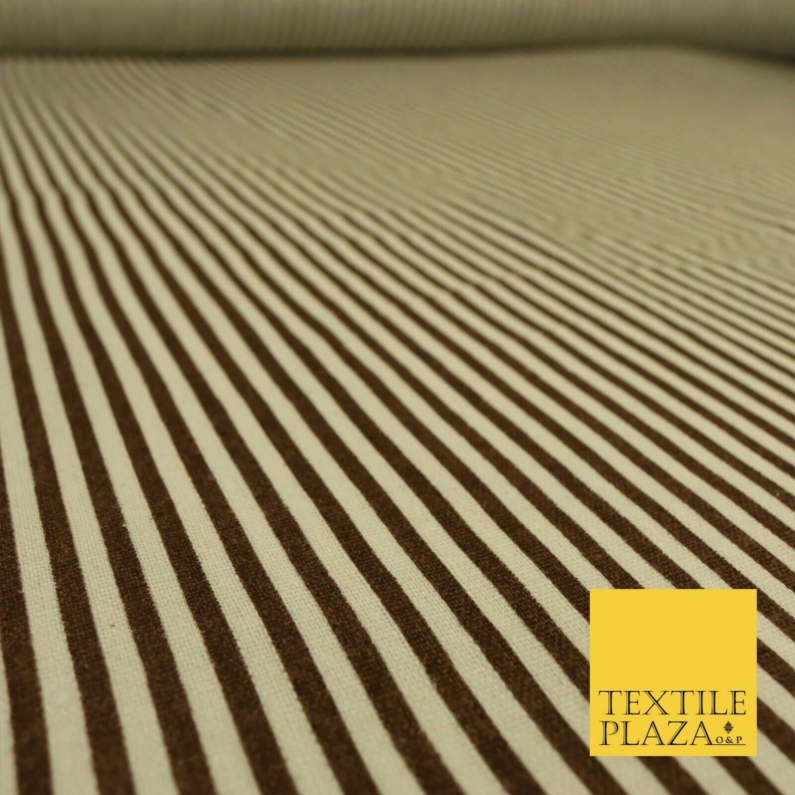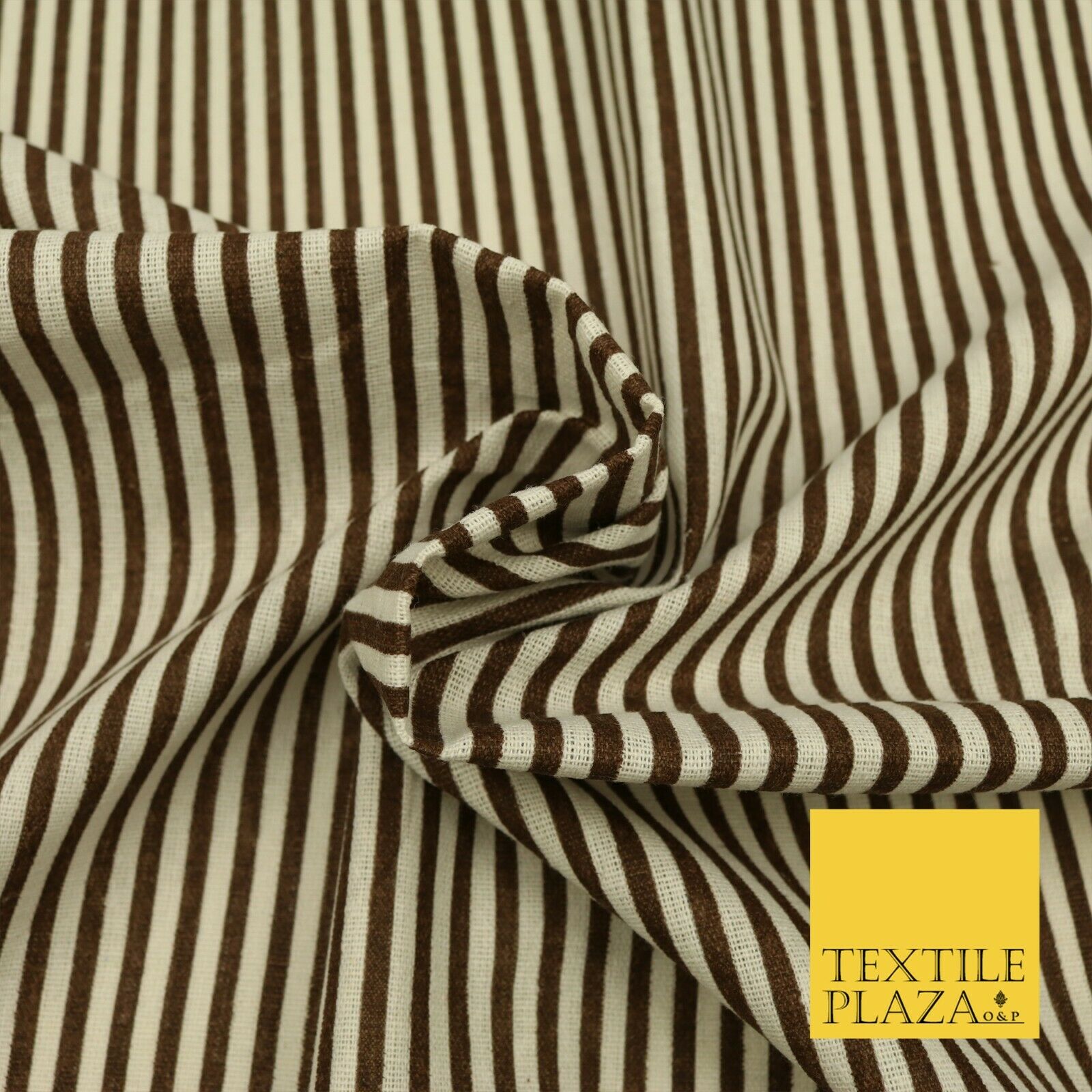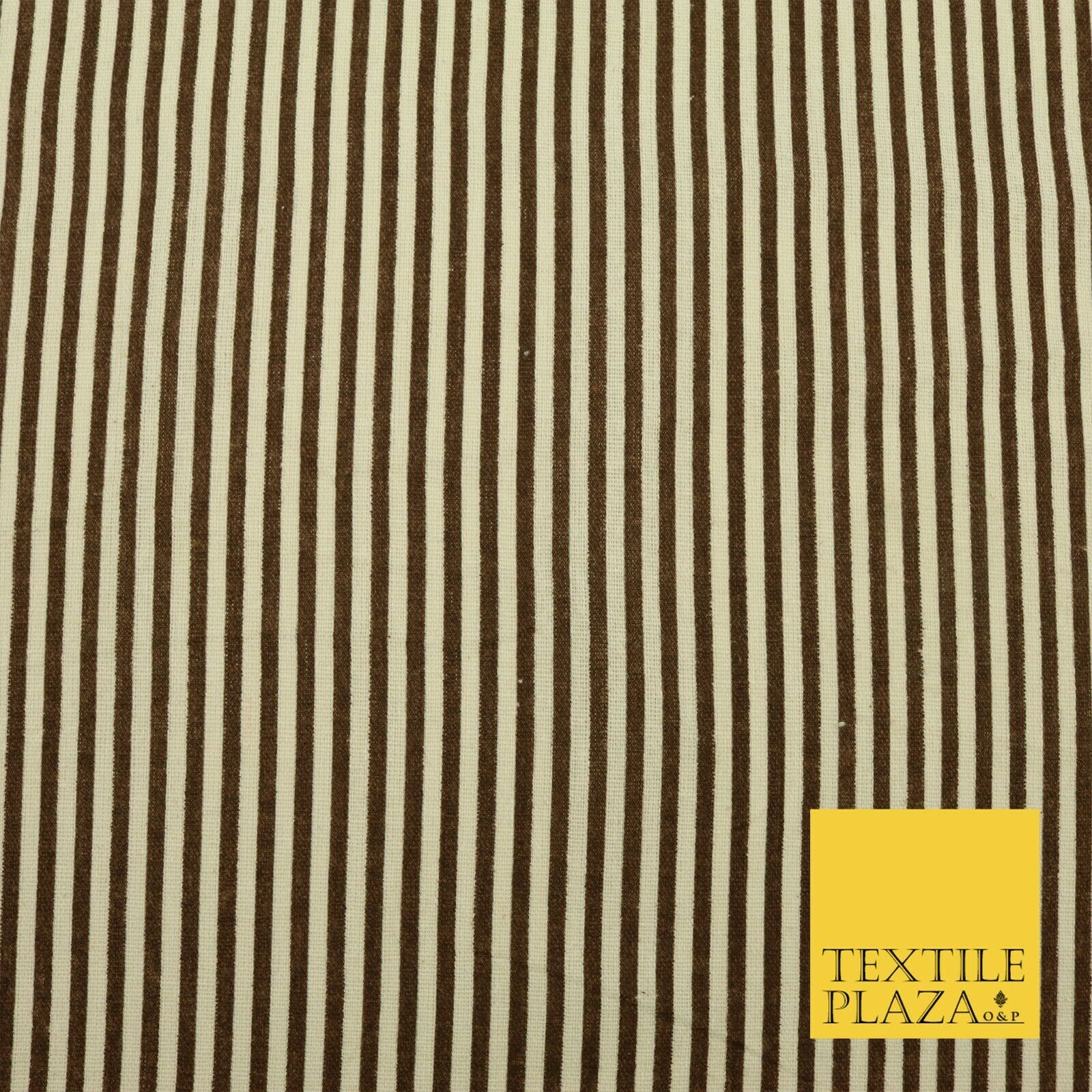Brown Pinstriped Printed POLYCOTTON CANVAS Dress Fabric Craft Bags 60" Wide 1643