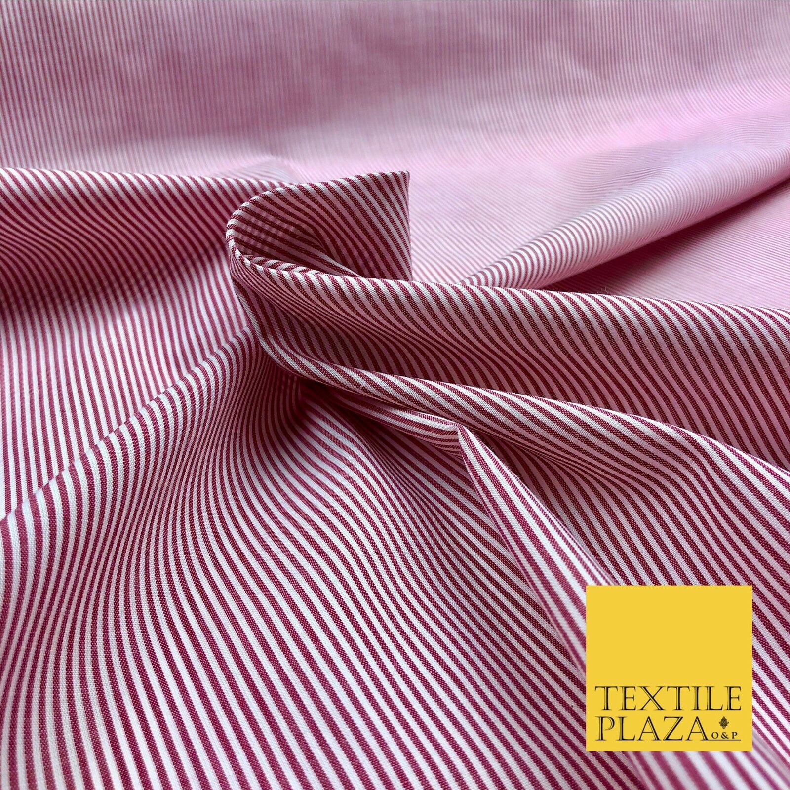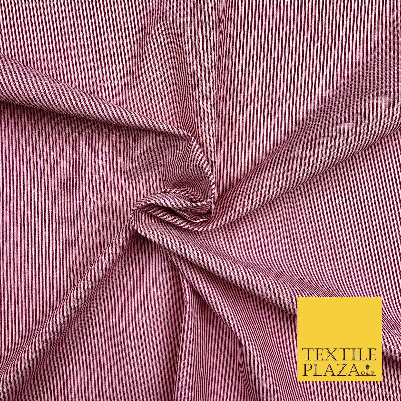 Burgundy Maroon Fine Stripe Poly Cotton Fabric White Lines Dress Craft - QD249