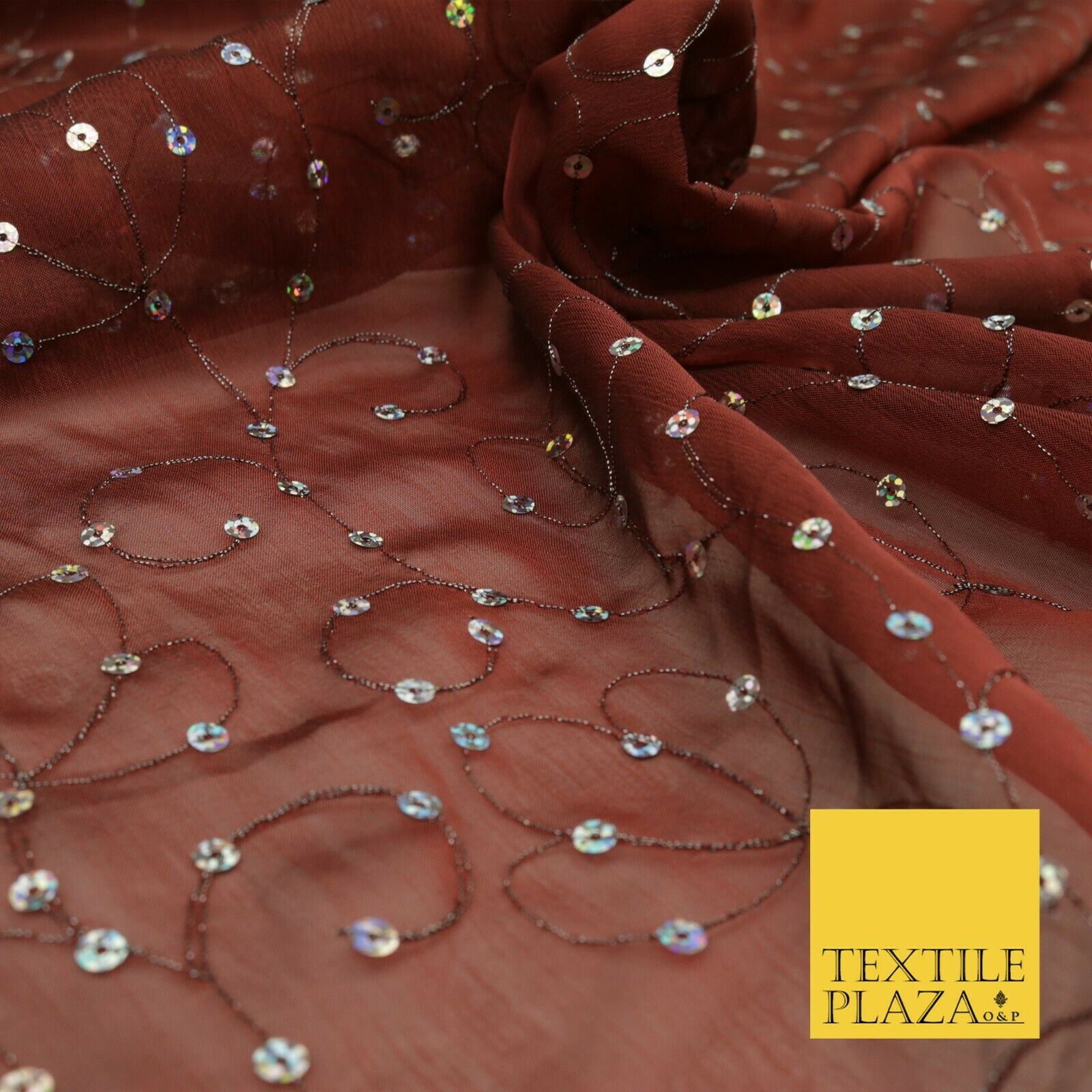Burnt Copper Hologram Sequin Two Tone Chiffon Georgette Dress Fabric Sparkly1593