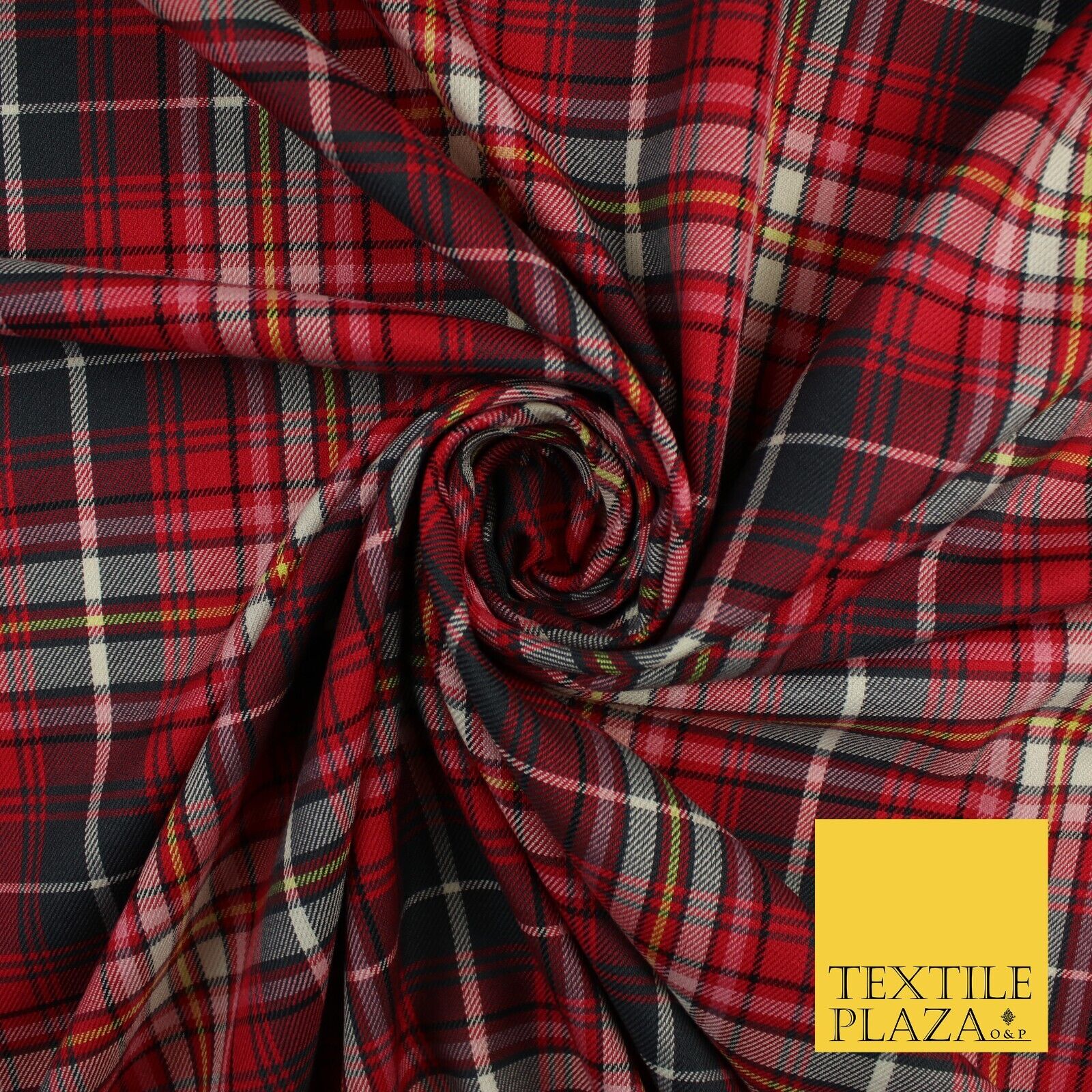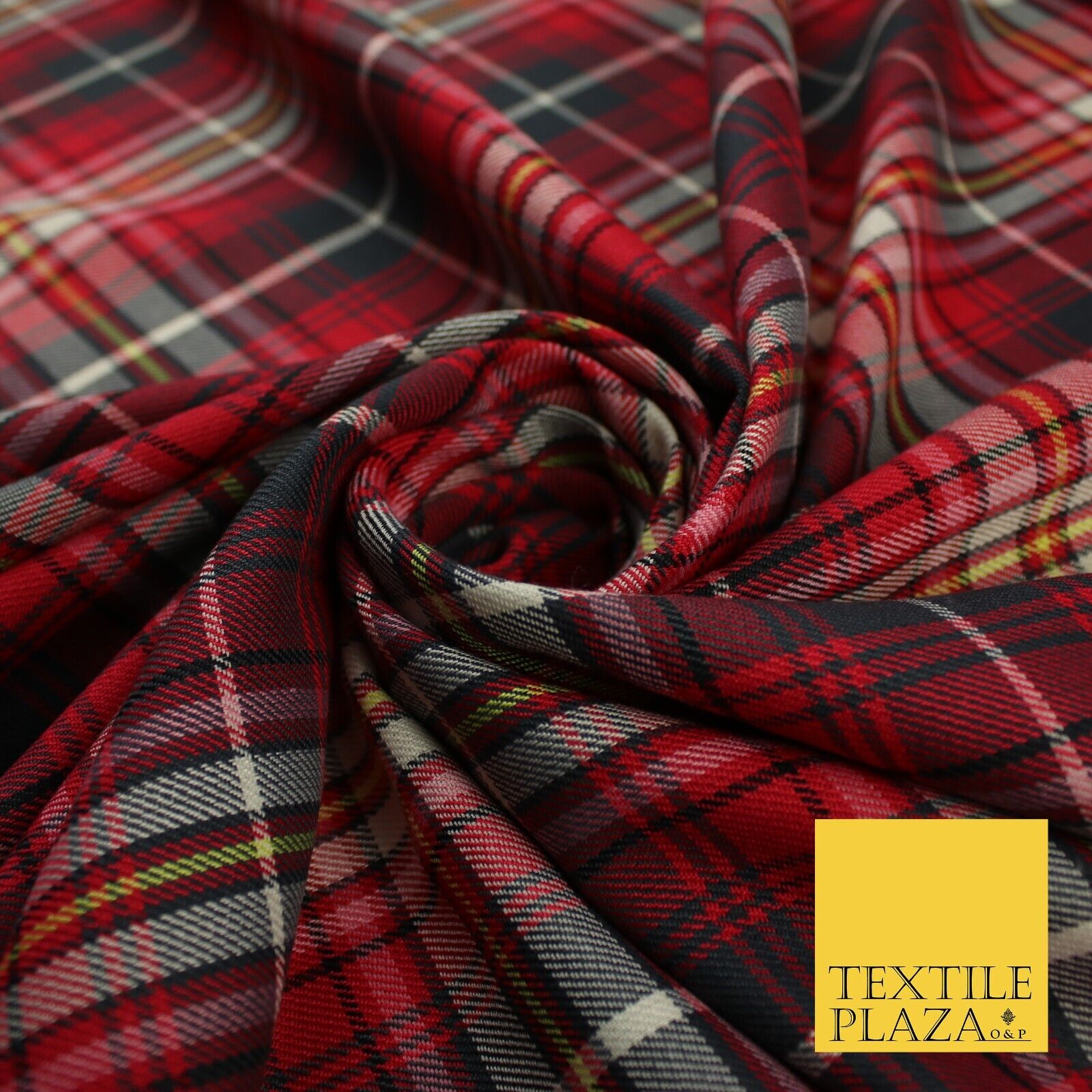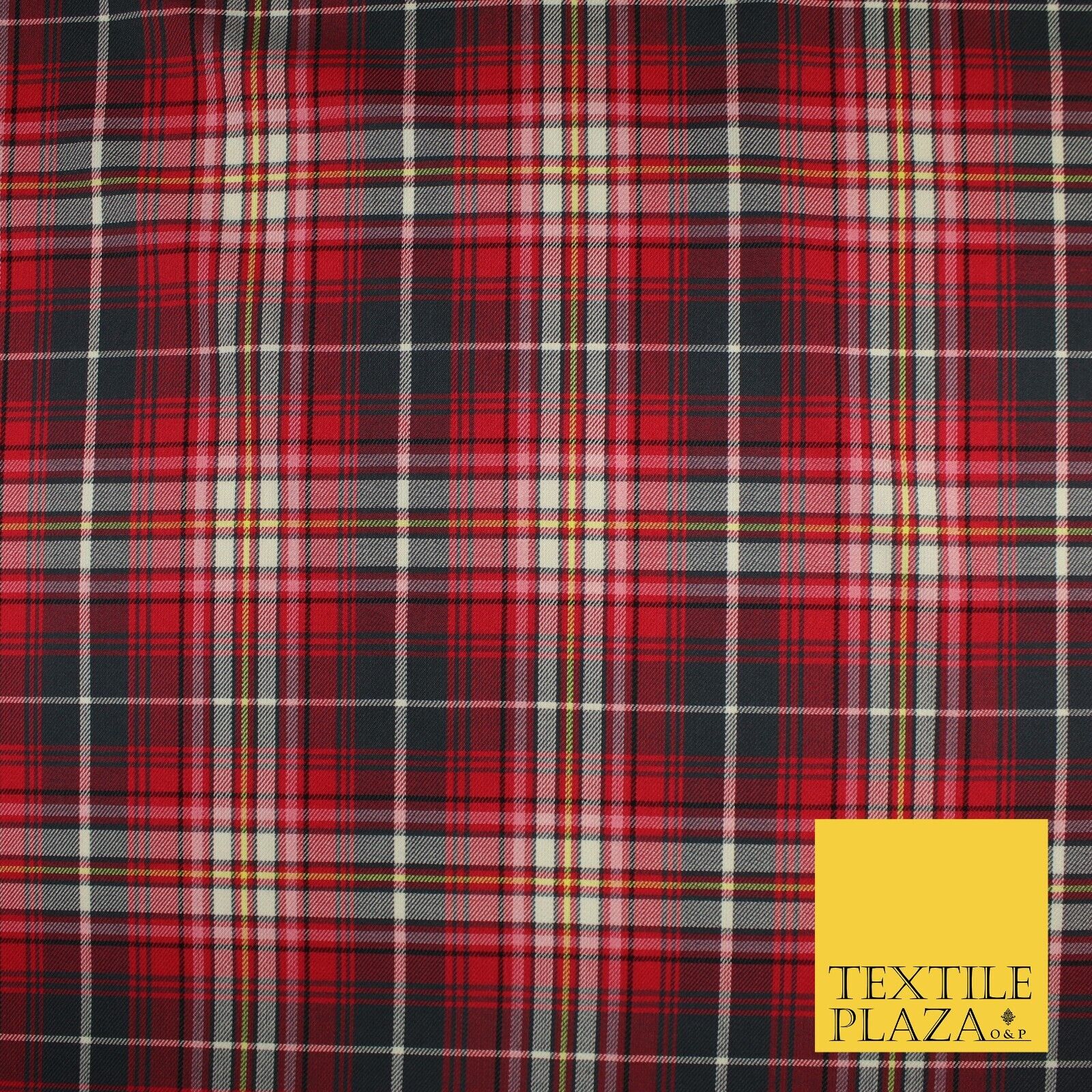 Campbell Dress Inspired Tartan Check Red Navy Poly Viscose Fabric 58" 10183