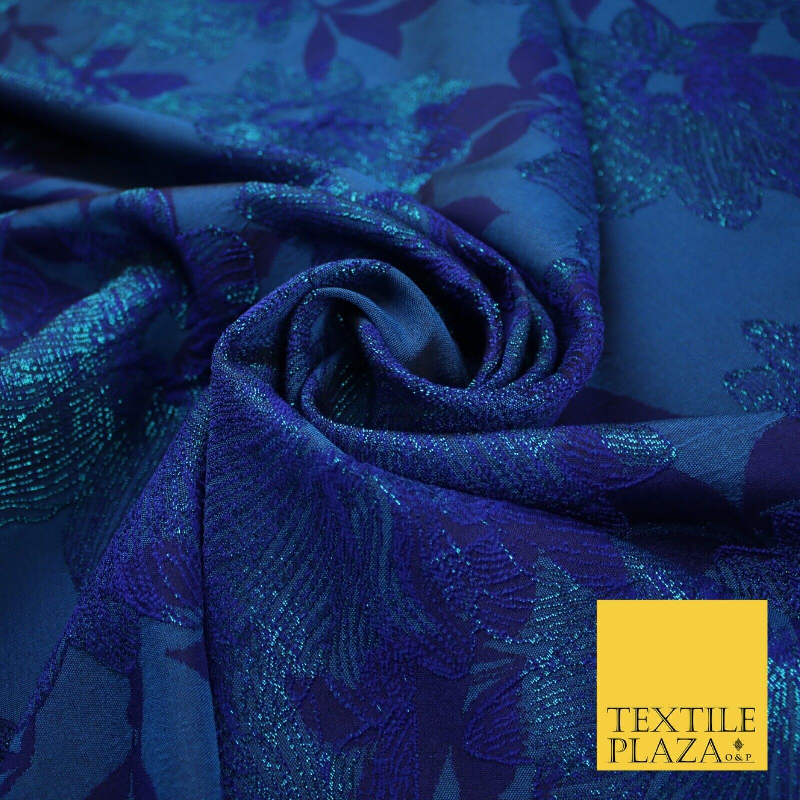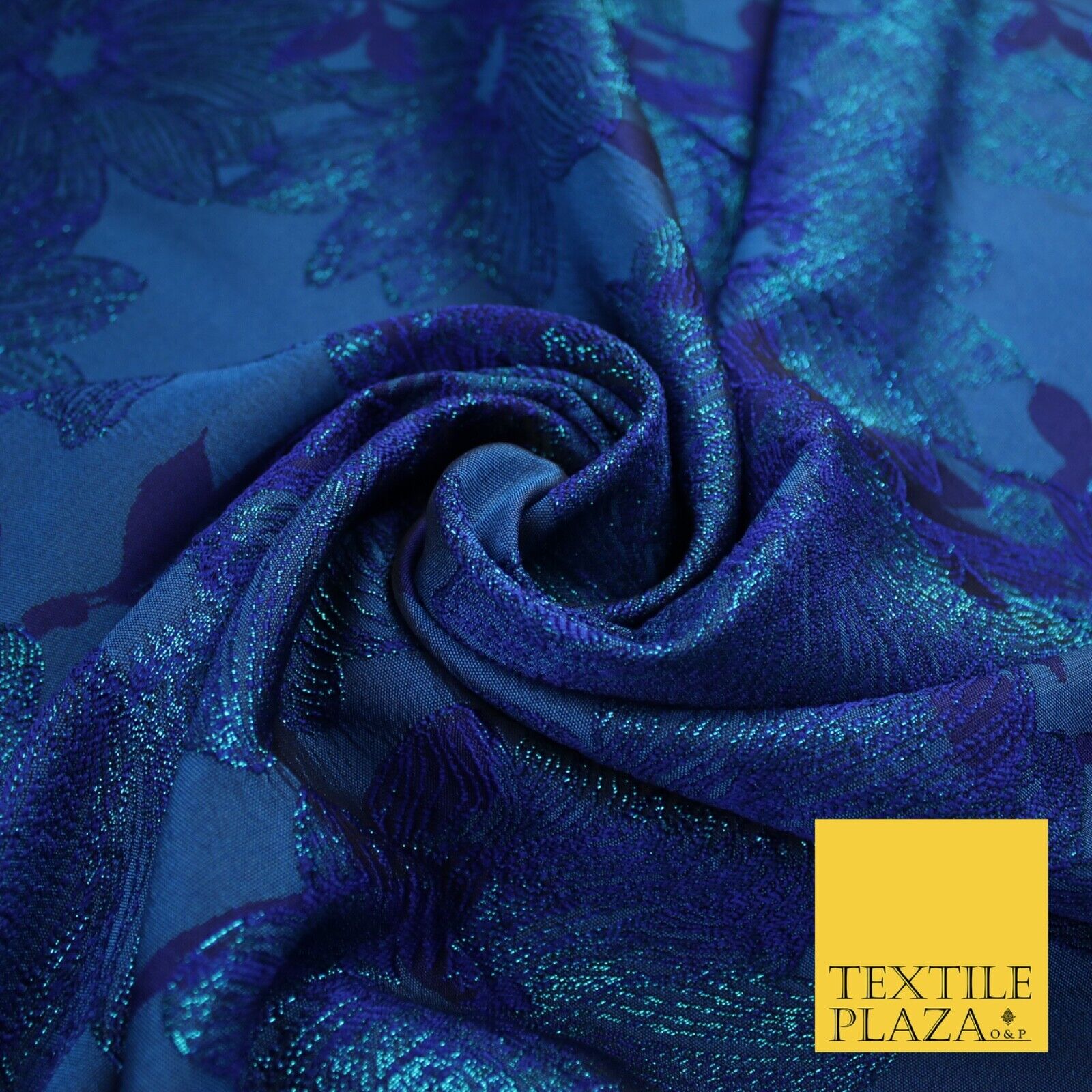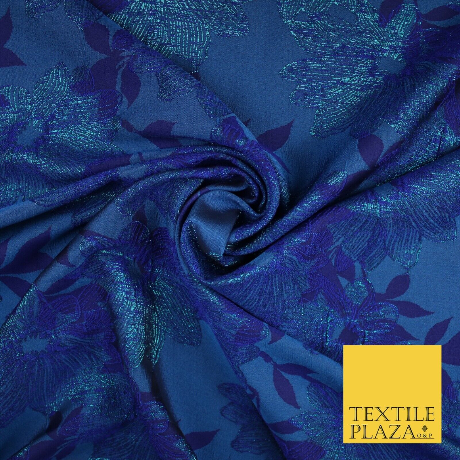 Capri Blue Floral Bloom Vine Metallic Textured Brocade Dress Fabric 9958