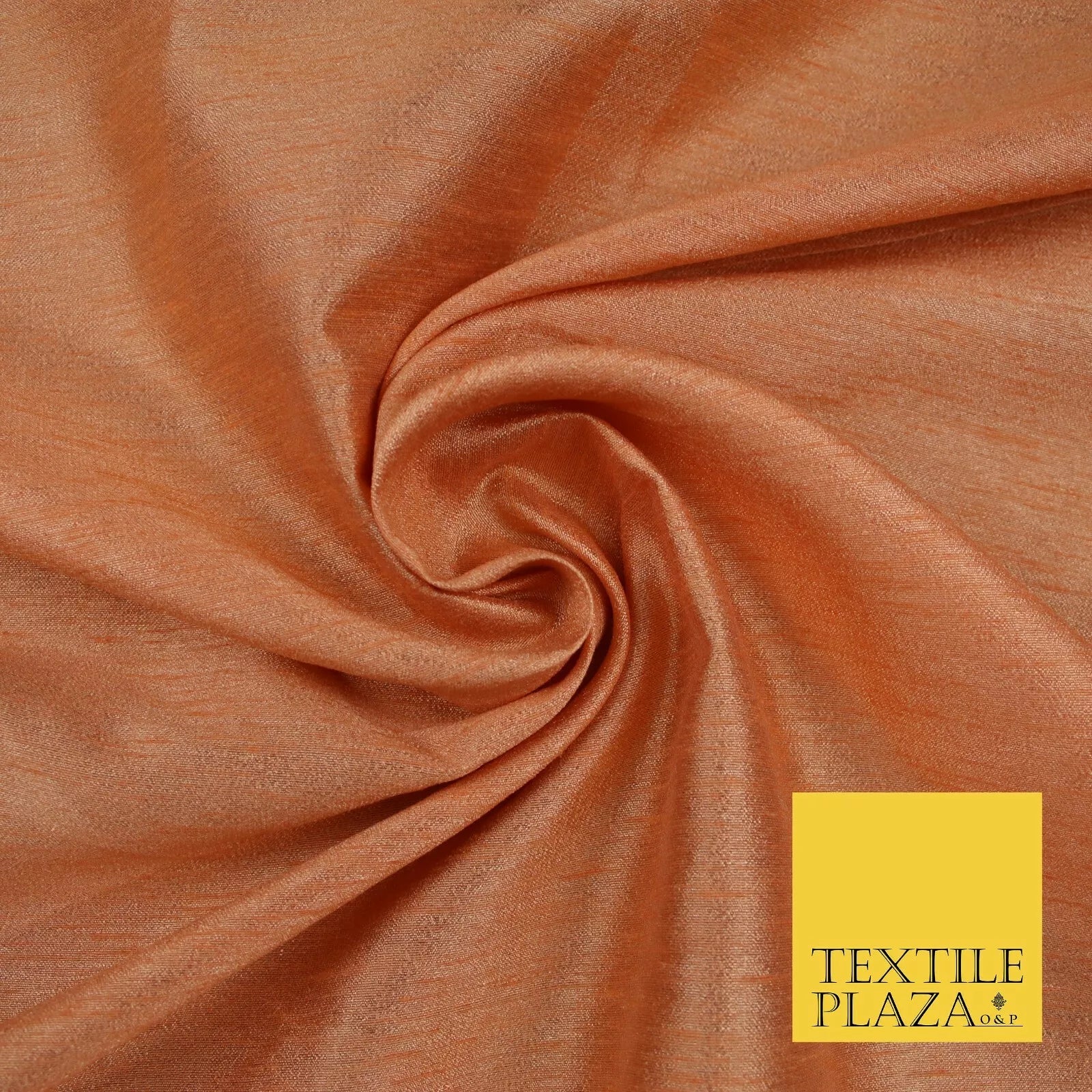 CARROT PEACH Plain Dyed Faux Dupion Raw Silk 100% Polyester Dress Fabric 44" 6260