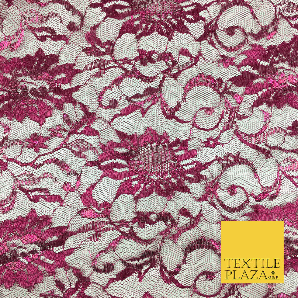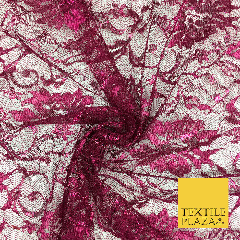 CERISE PINK Floral Metallic Shimmer Lurex Lace Fabric Dress Dance - 58" - GF846