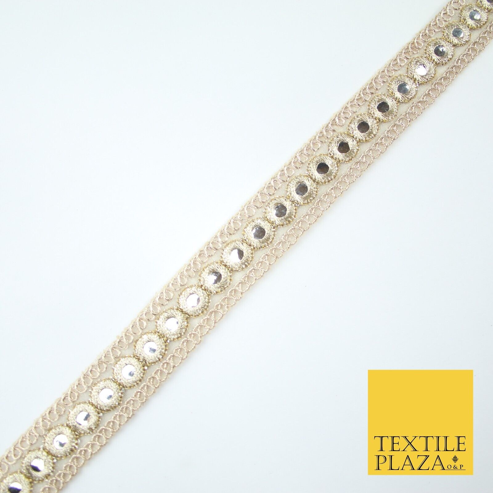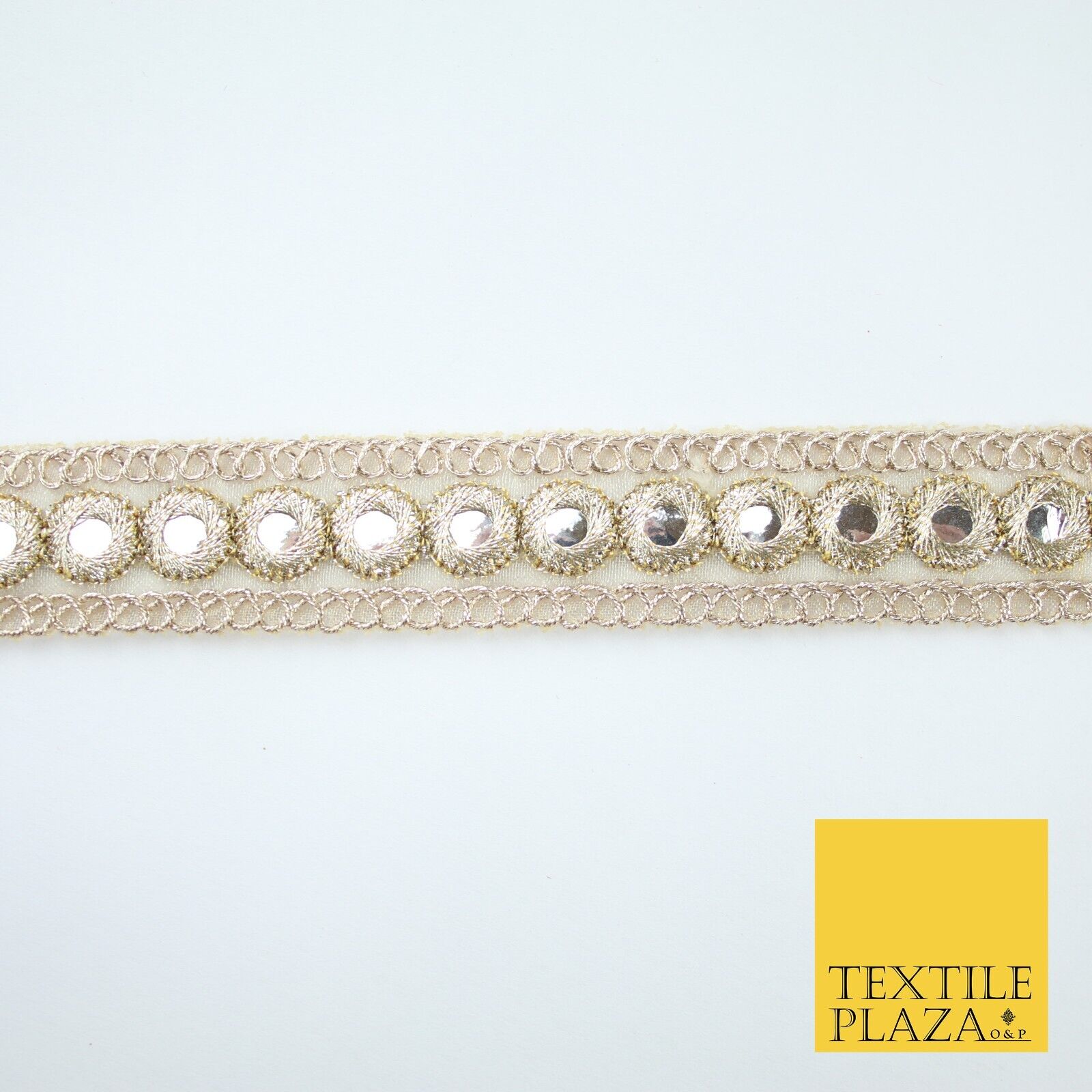 Champagne Gold Mirror Effect Ribbon Trim Border Gota Lace - 2cm Wide - X655