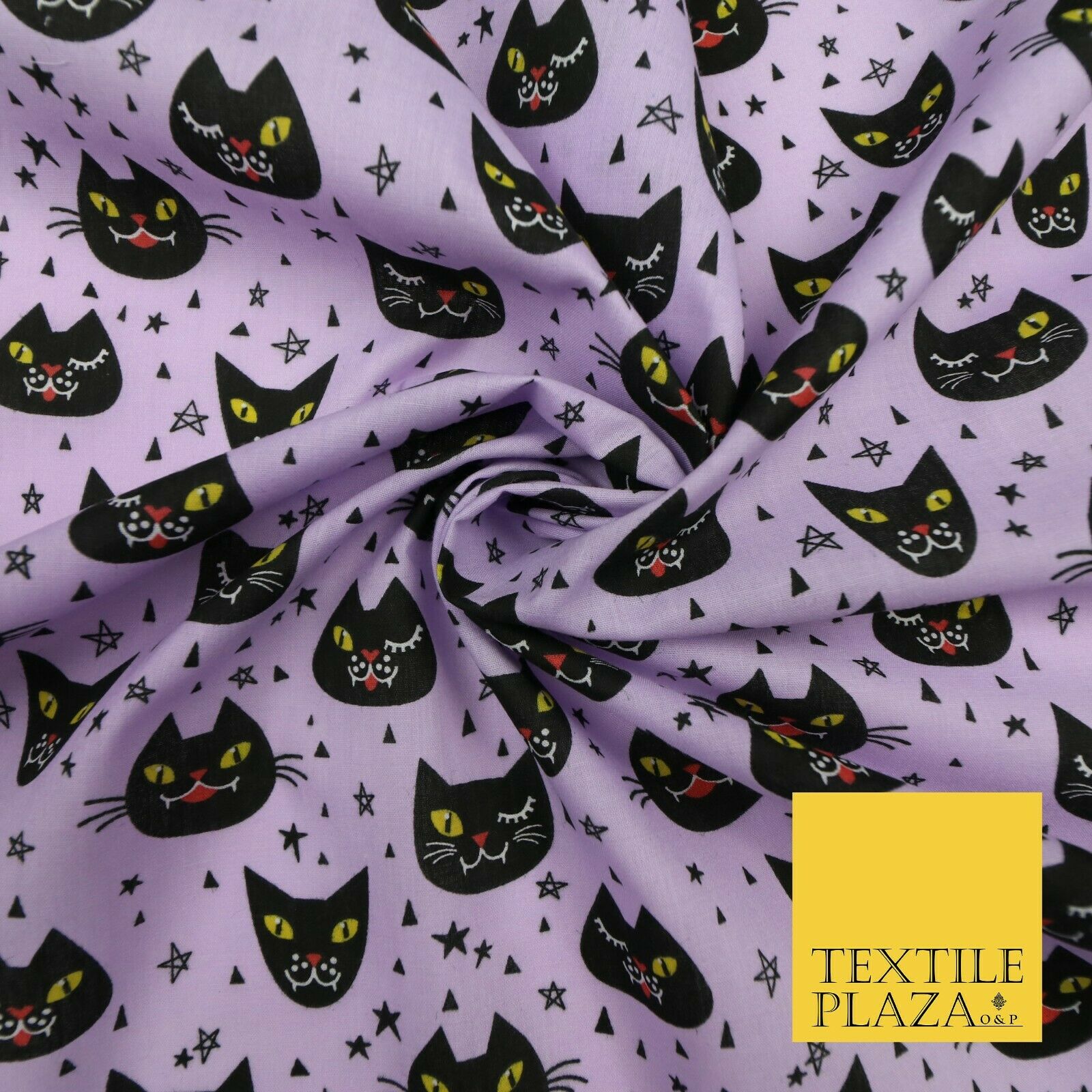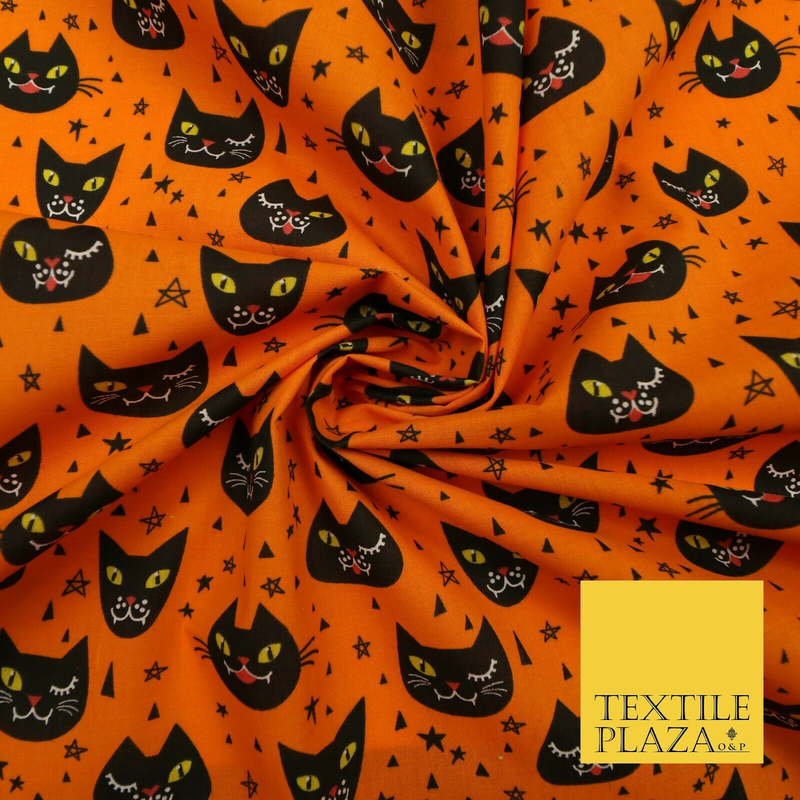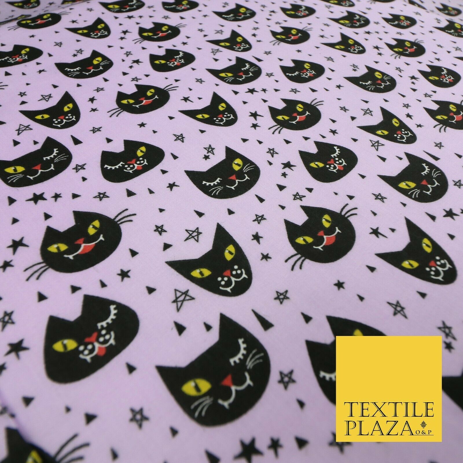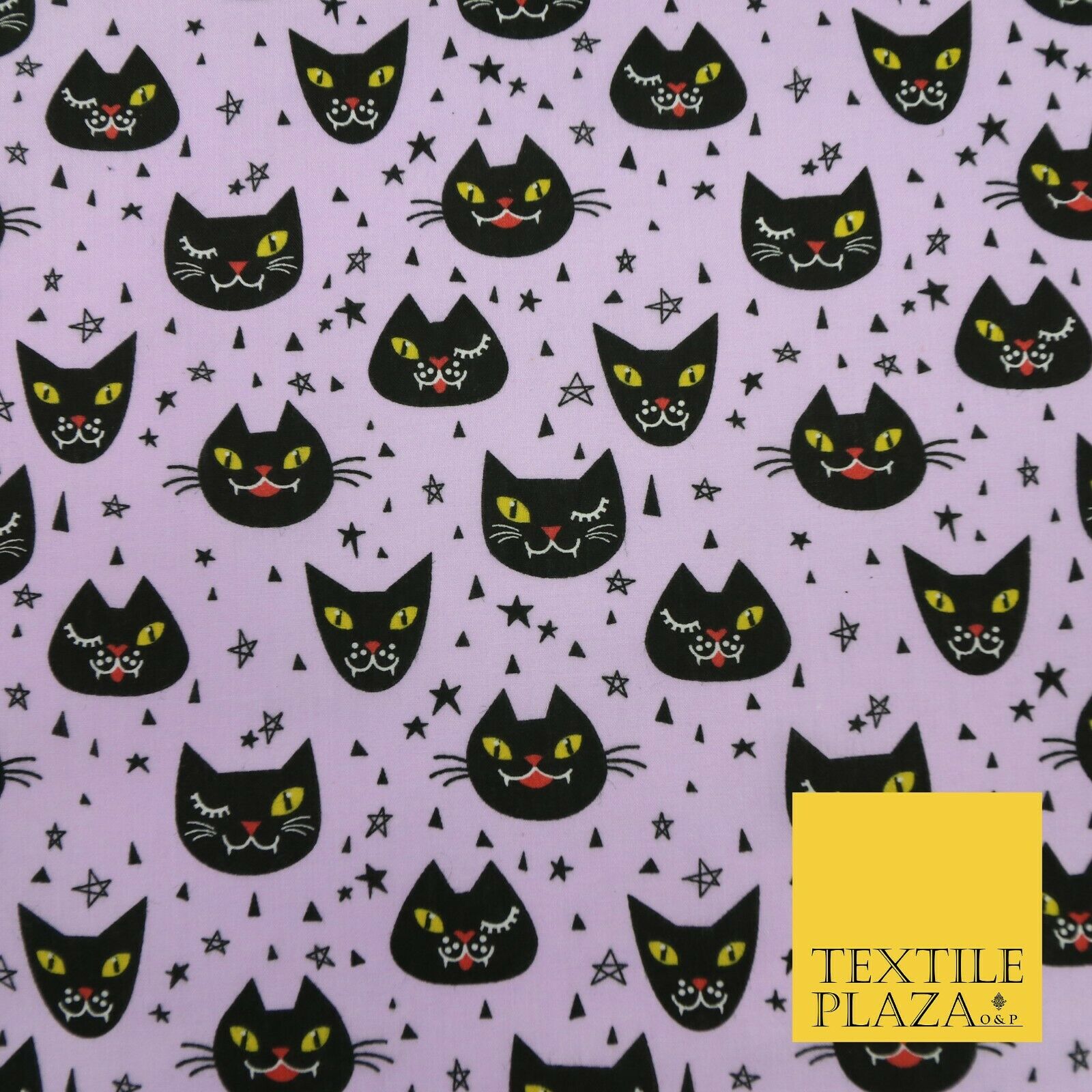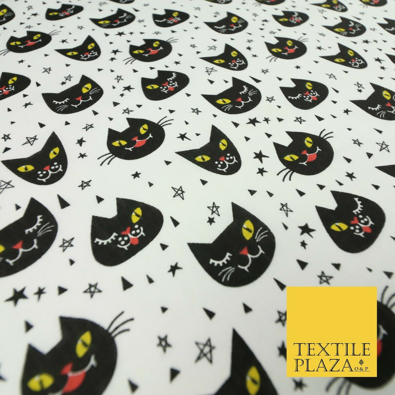 Cheeky Spooky Cats Stars HALLOWEEN Printed Polycotton Fabric 45" Wide