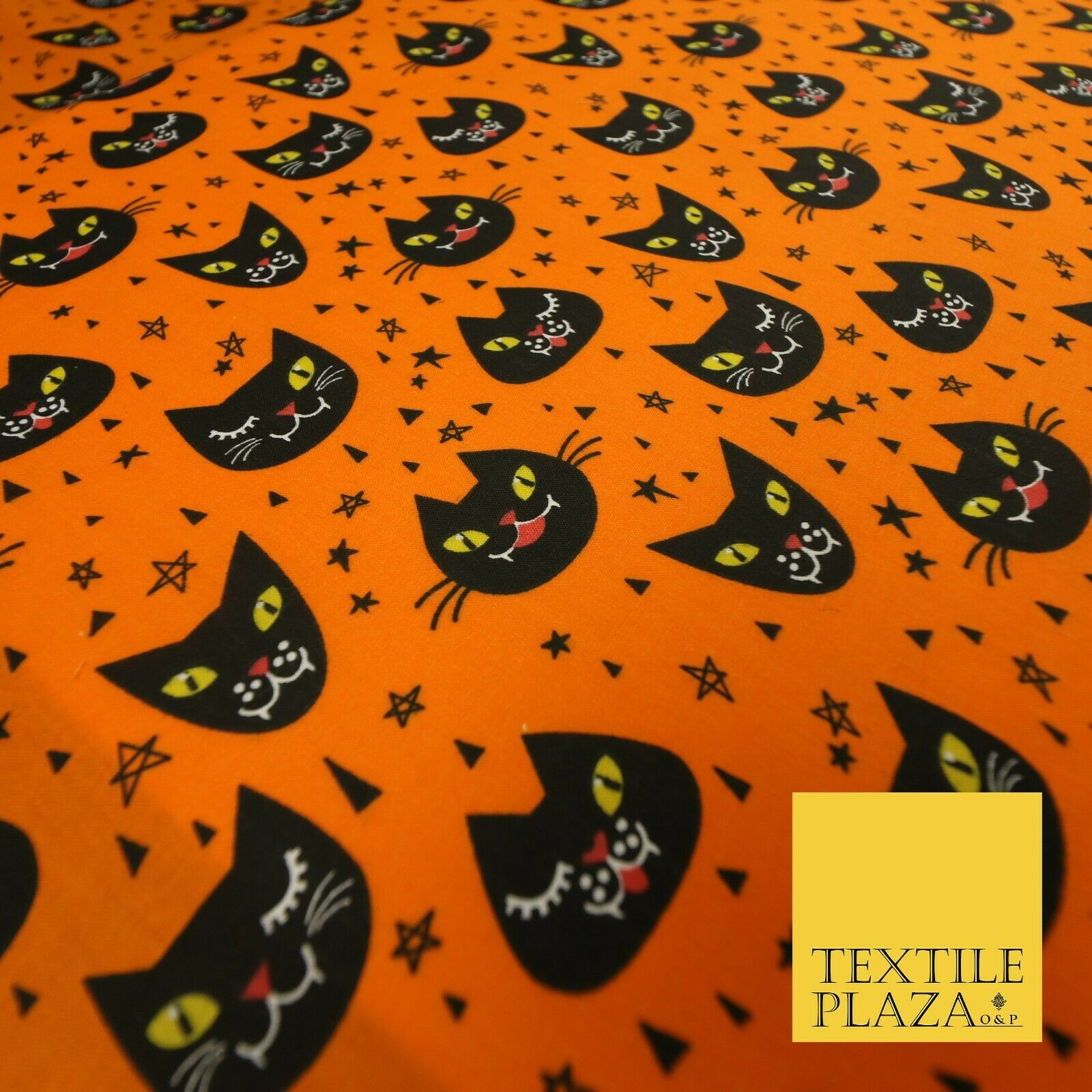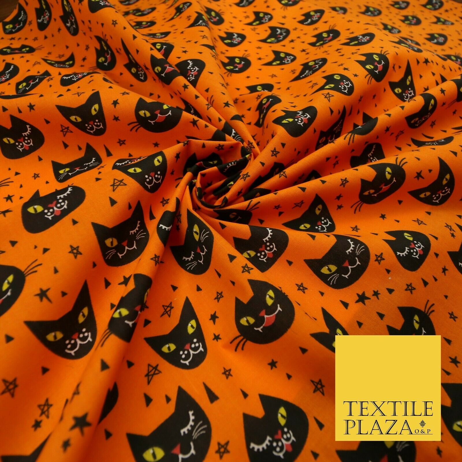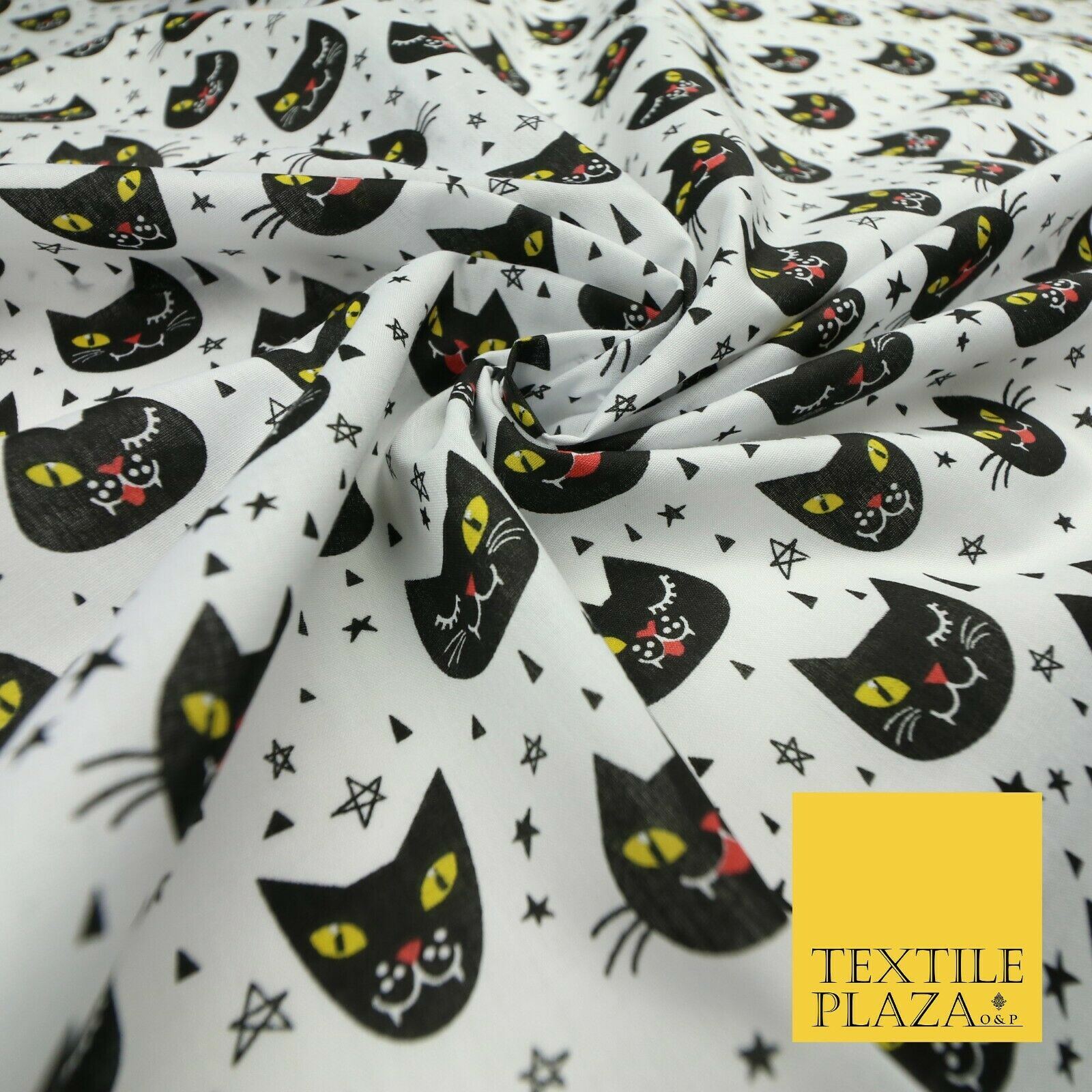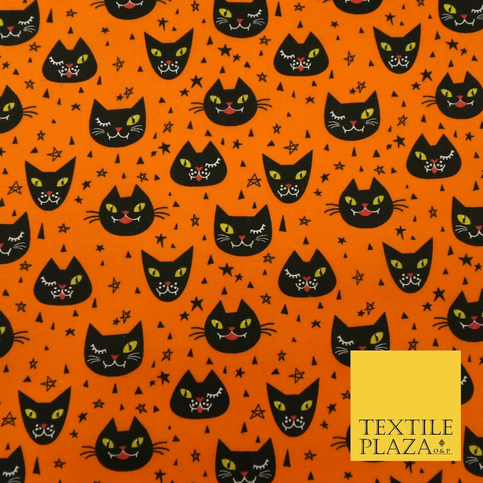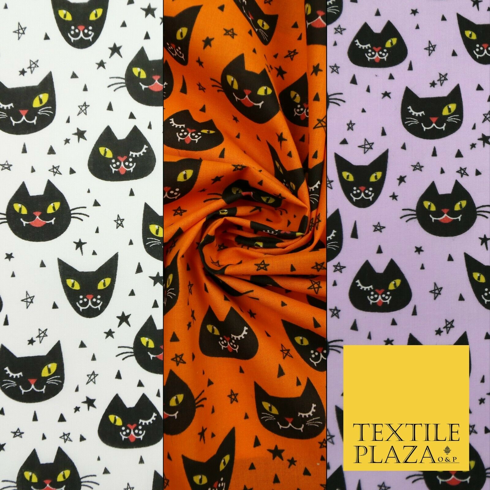 Cheeky Spooky Cats Stars HALLOWEEN Printed Polycotton Fabric 45" Wide
