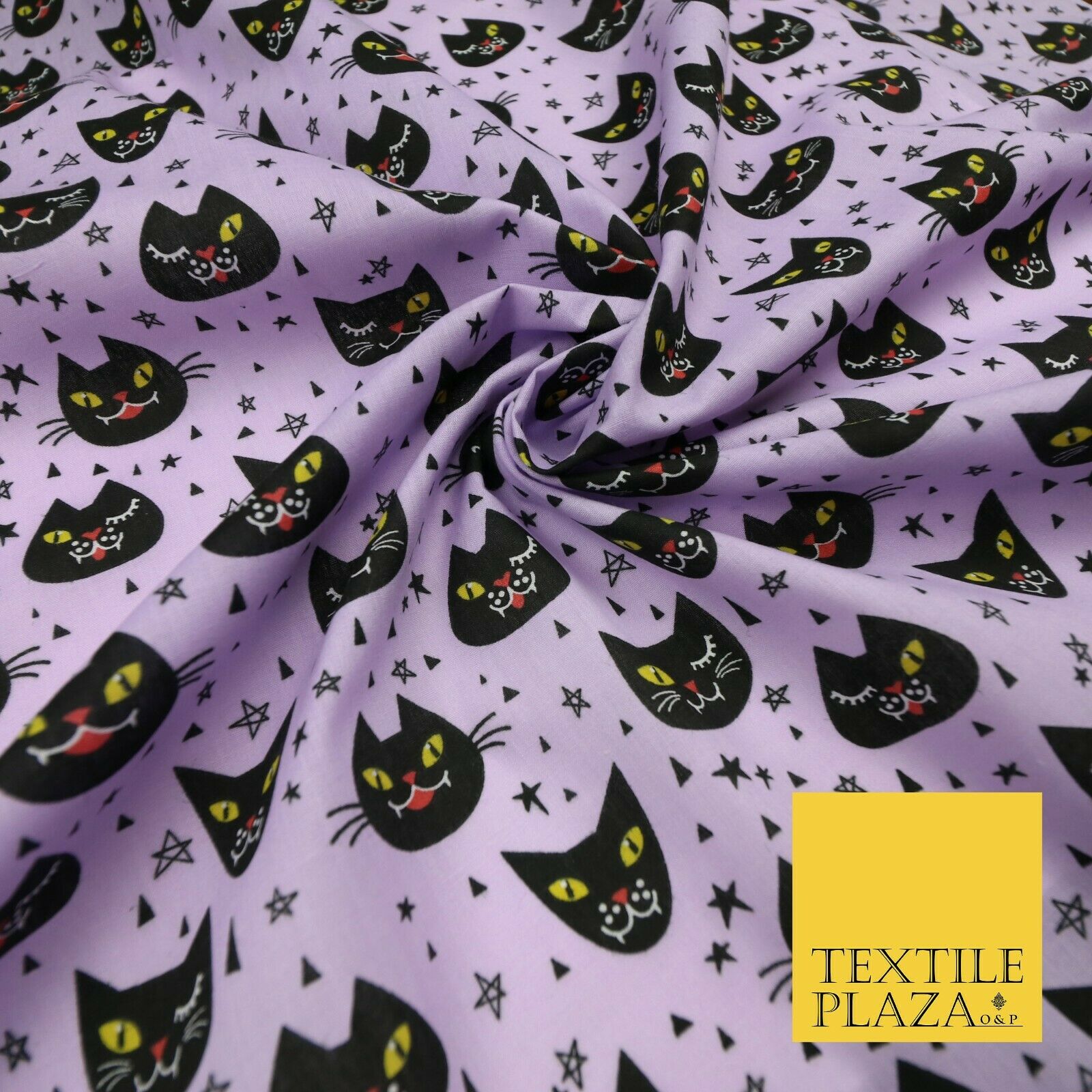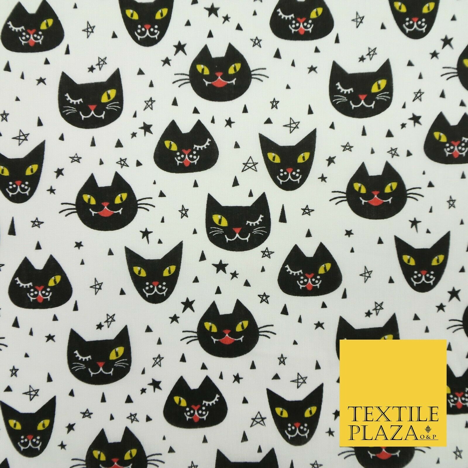 Cheeky Spooky Cats Stars HALLOWEEN Printed Polycotton Fabric 45" Wide