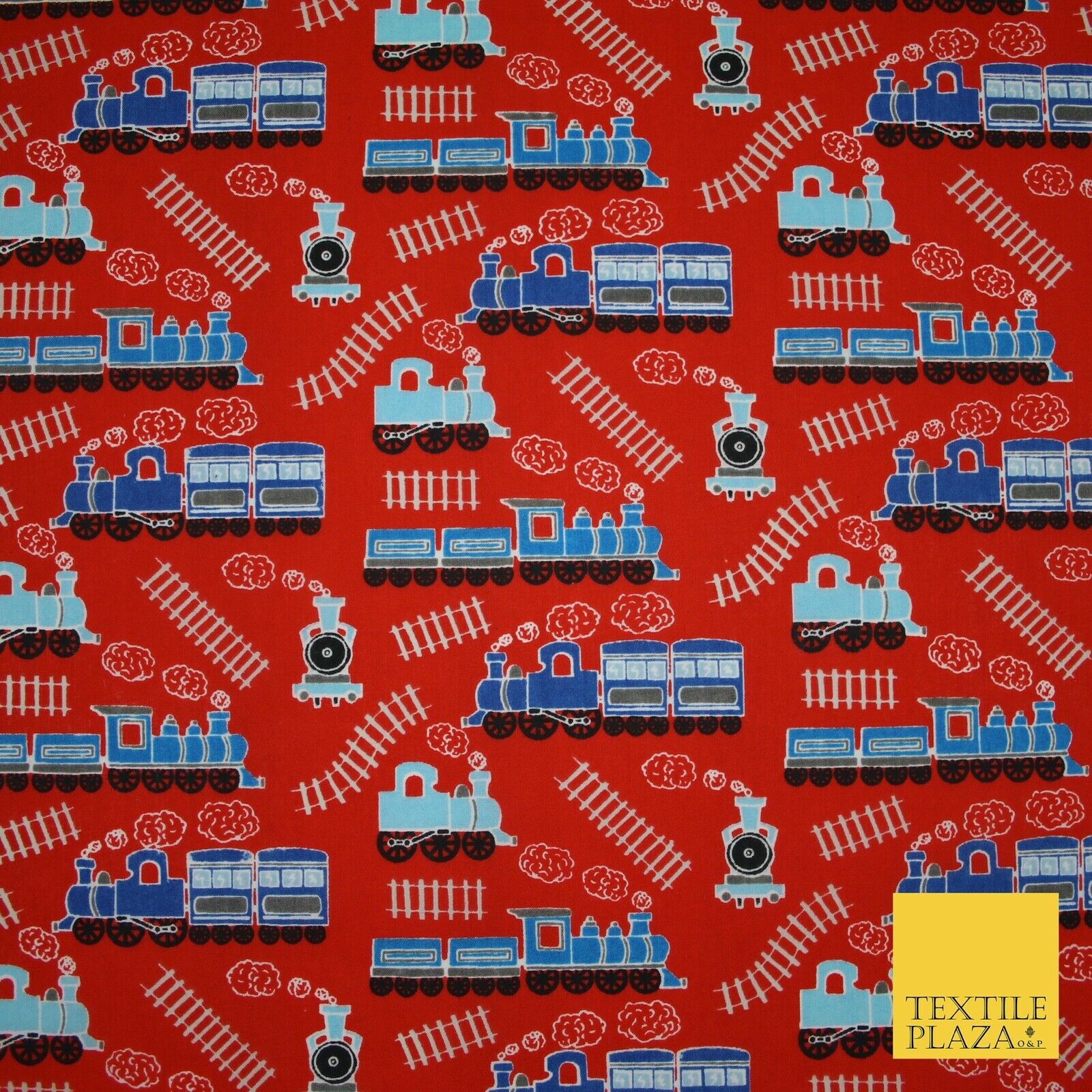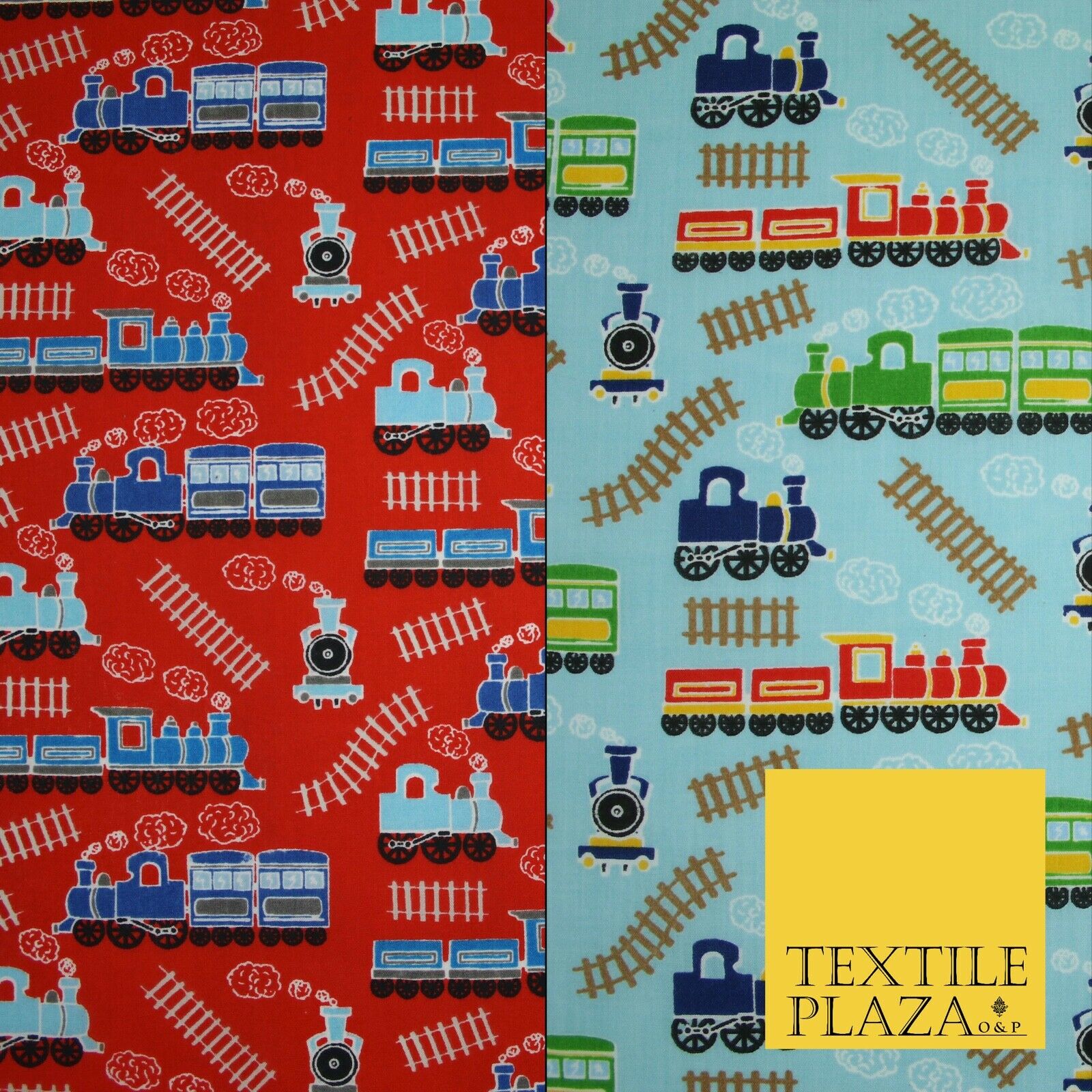 Choo Choo Steam Train Railway Printed Poly Cotton Fabric Polycotton Kid Mask 45"