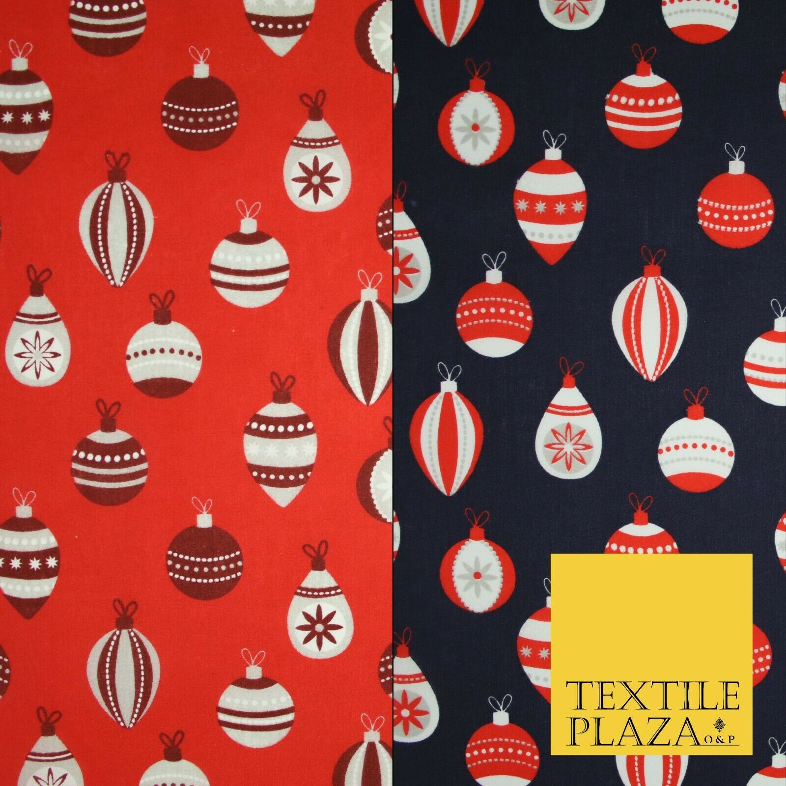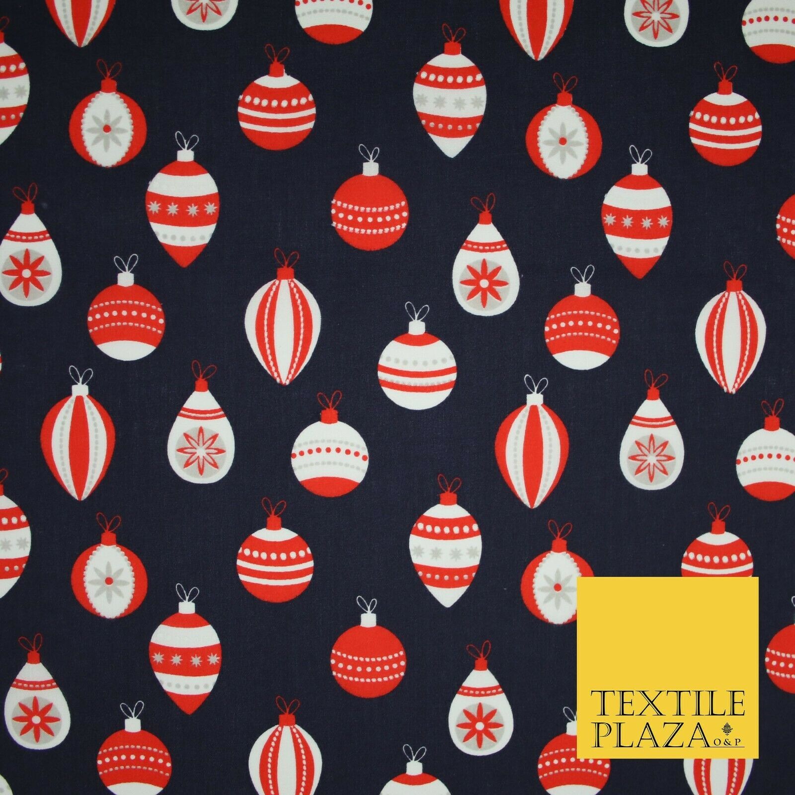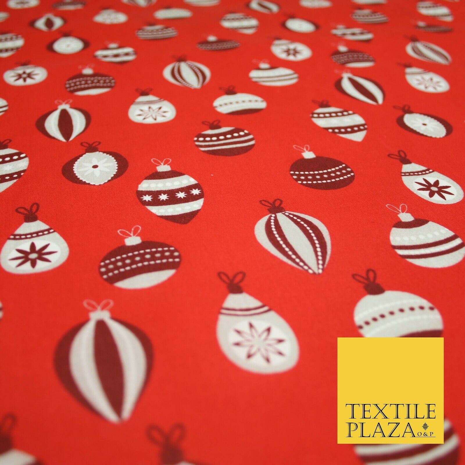 Christmas Baubles Festive Xmas Printed Poly Cotton Fabric Polycotton Craft 45"