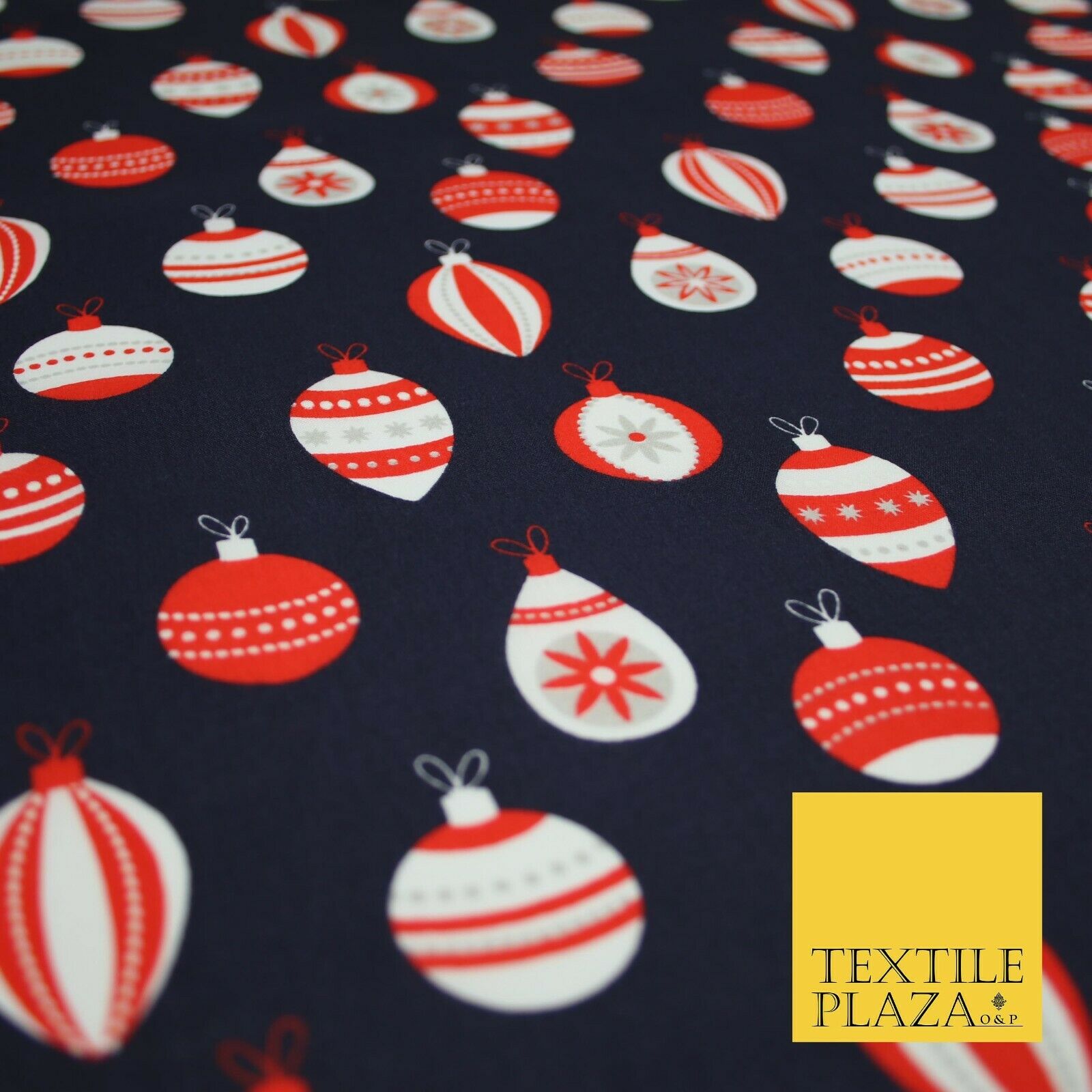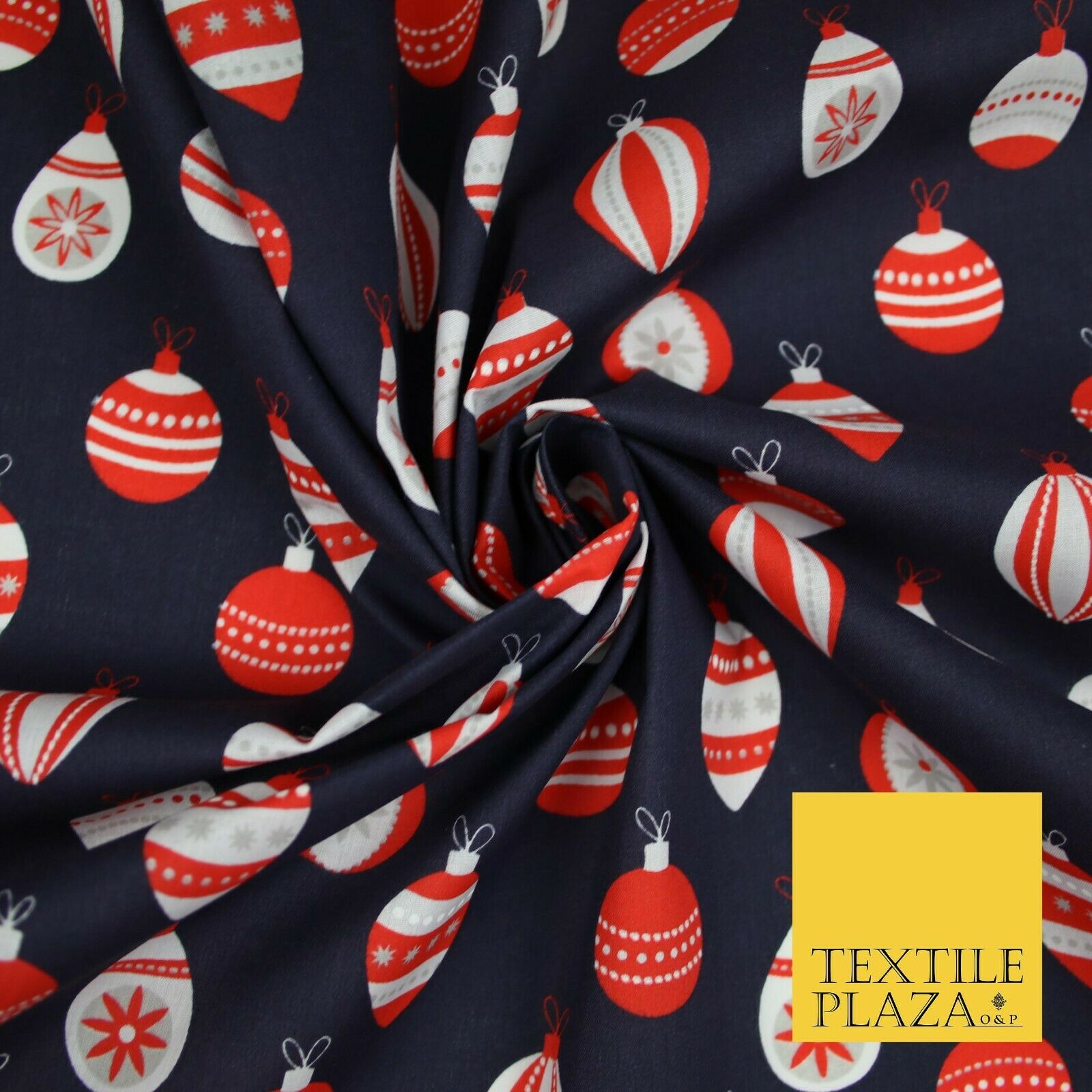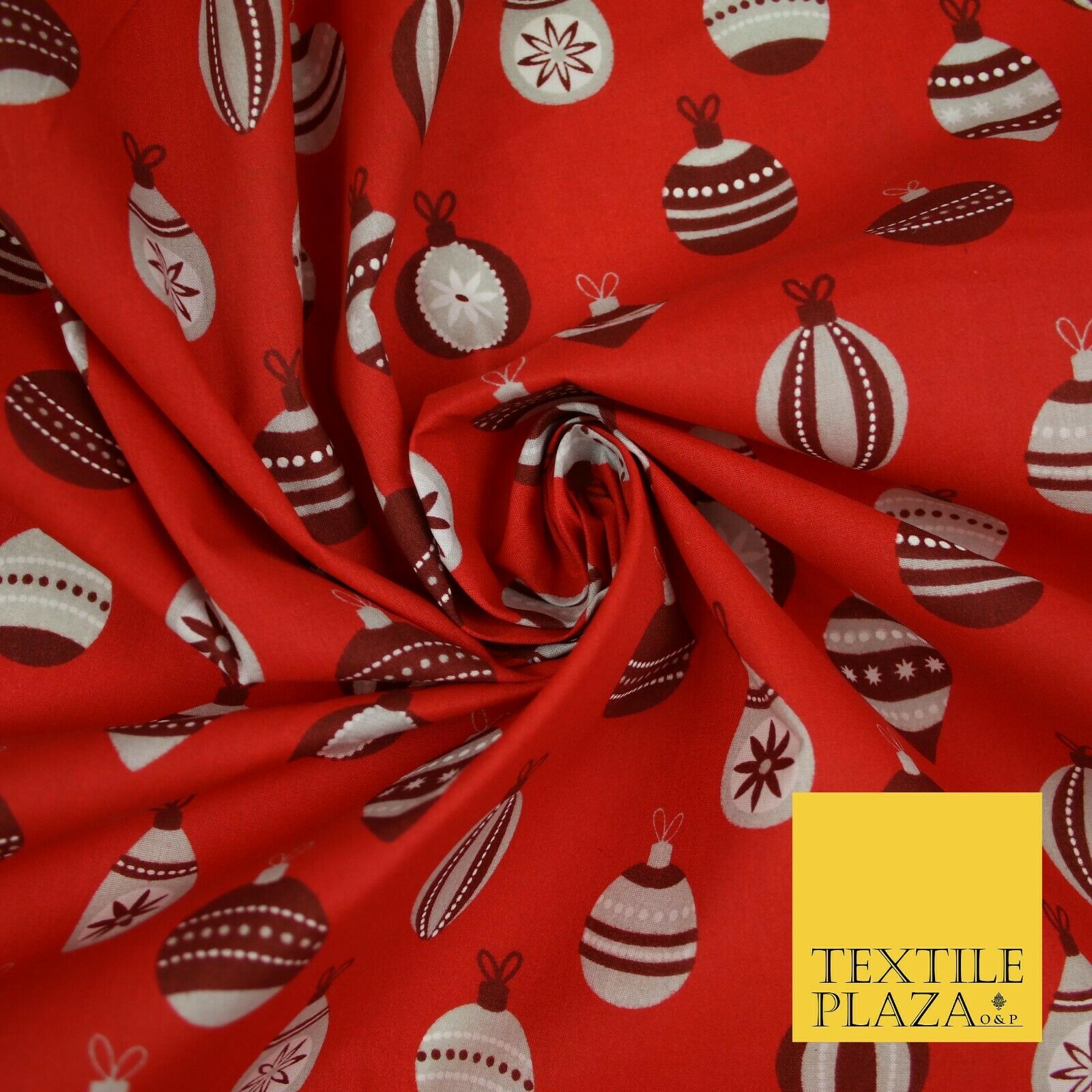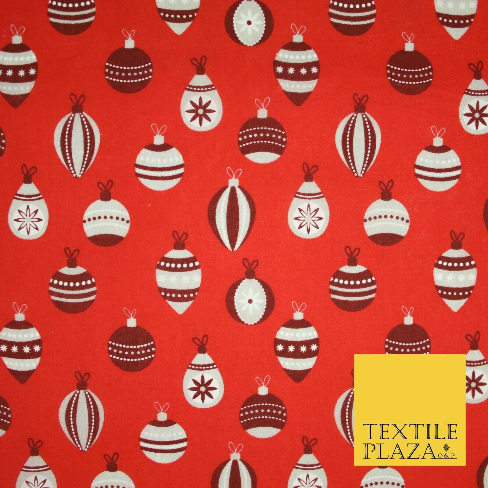Christmas Baubles Festive Xmas Printed Poly Cotton Fabric Polycotton Craft 45"