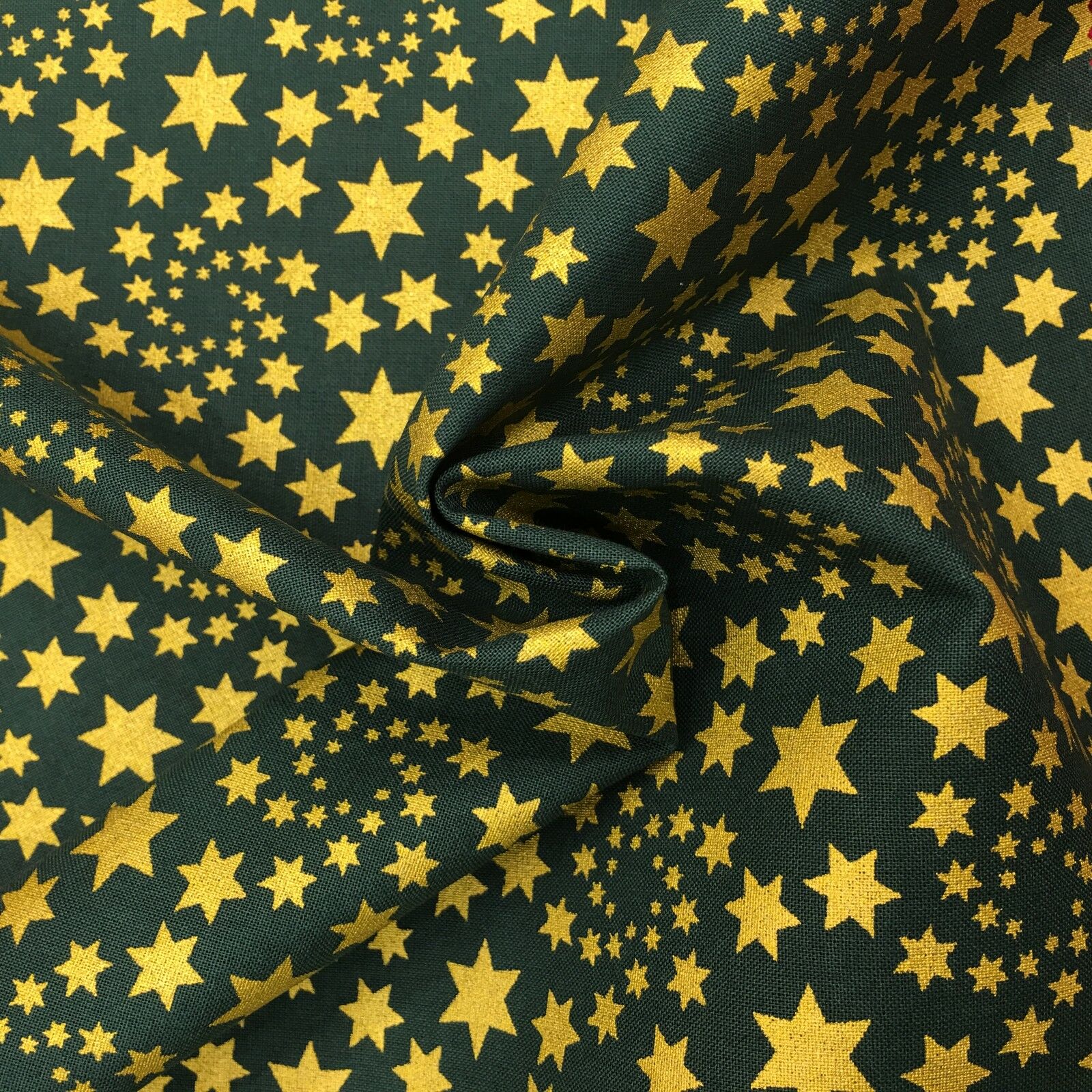 Christmas Gold Stars Fabric 100% Cotton - Festive Print GREEN RF30