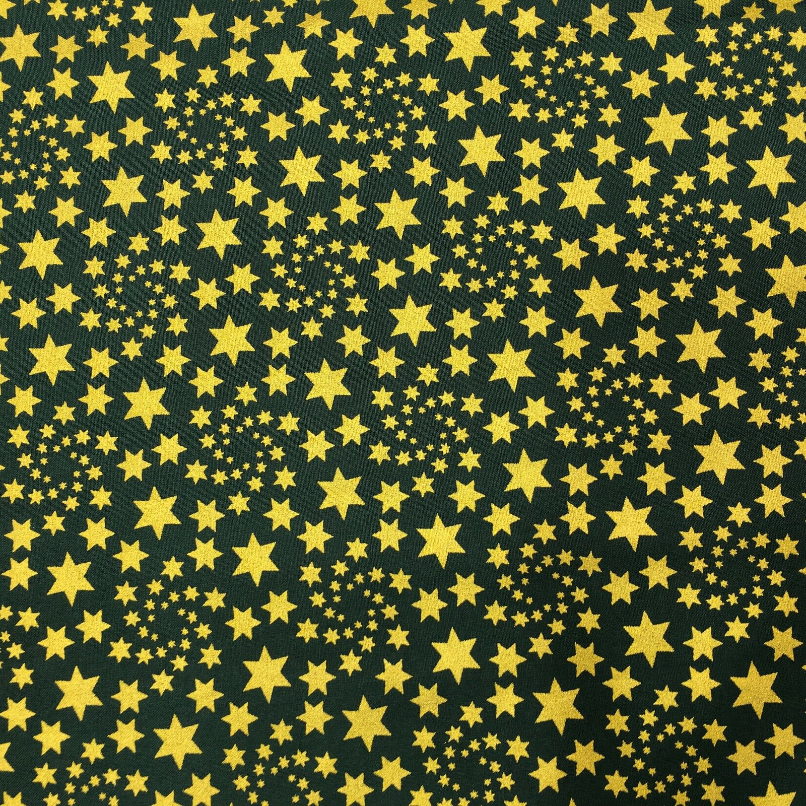 Wonderful Gold Christmas Stars Print on Green Fabric