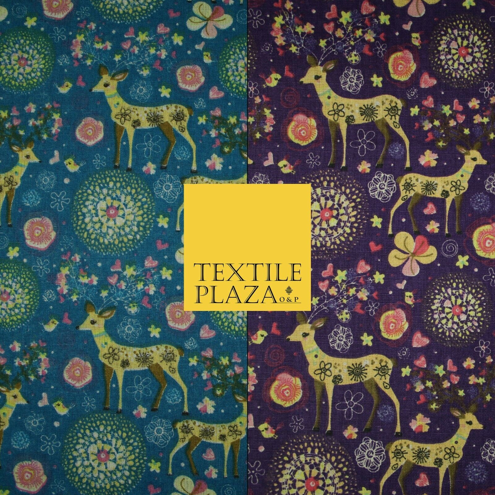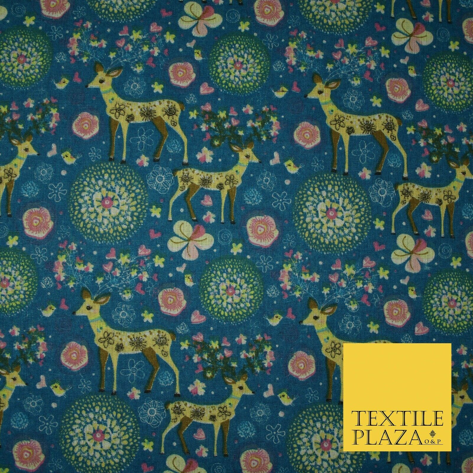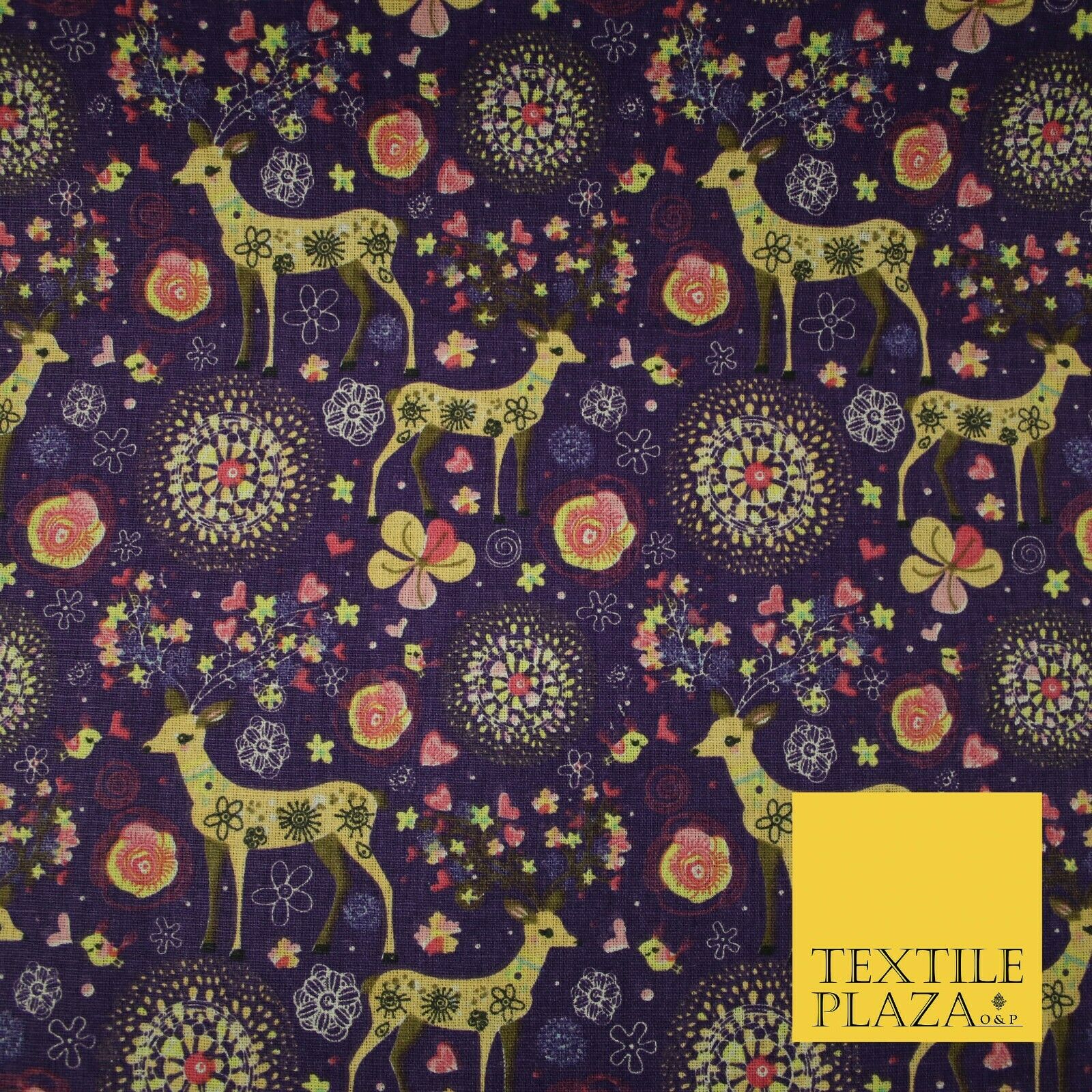 Christmas Ornate Reindeer Floral Flower Printed 100% Cotton Canvas Fabric 60"